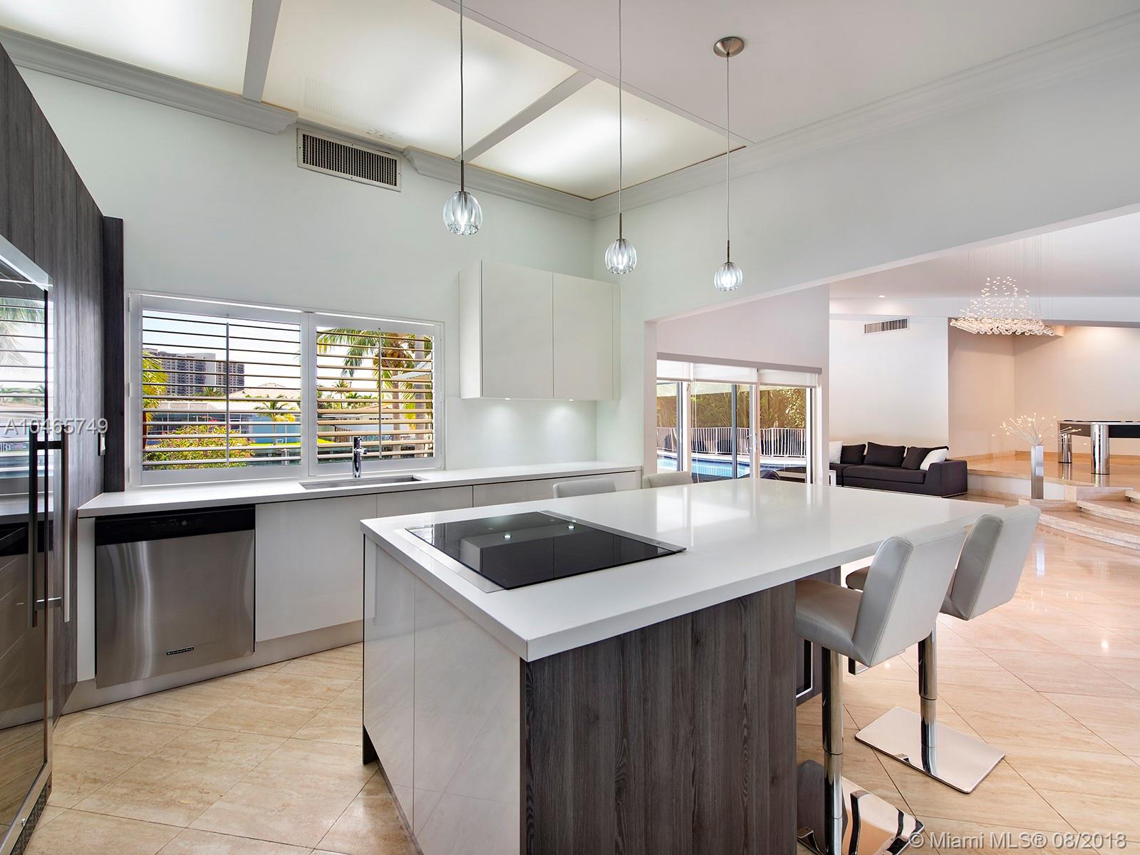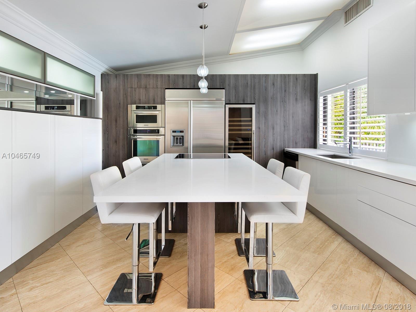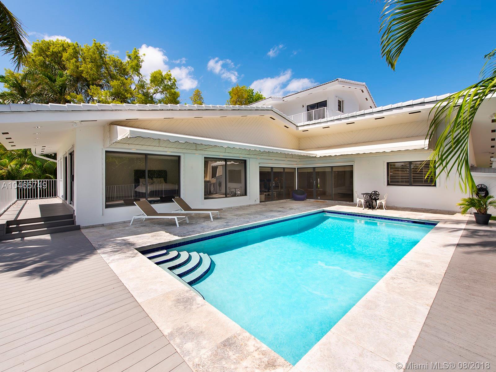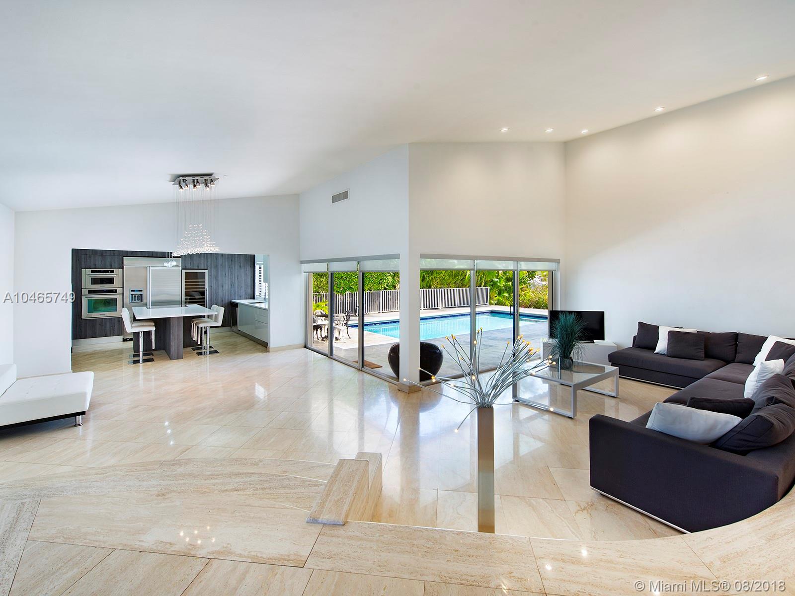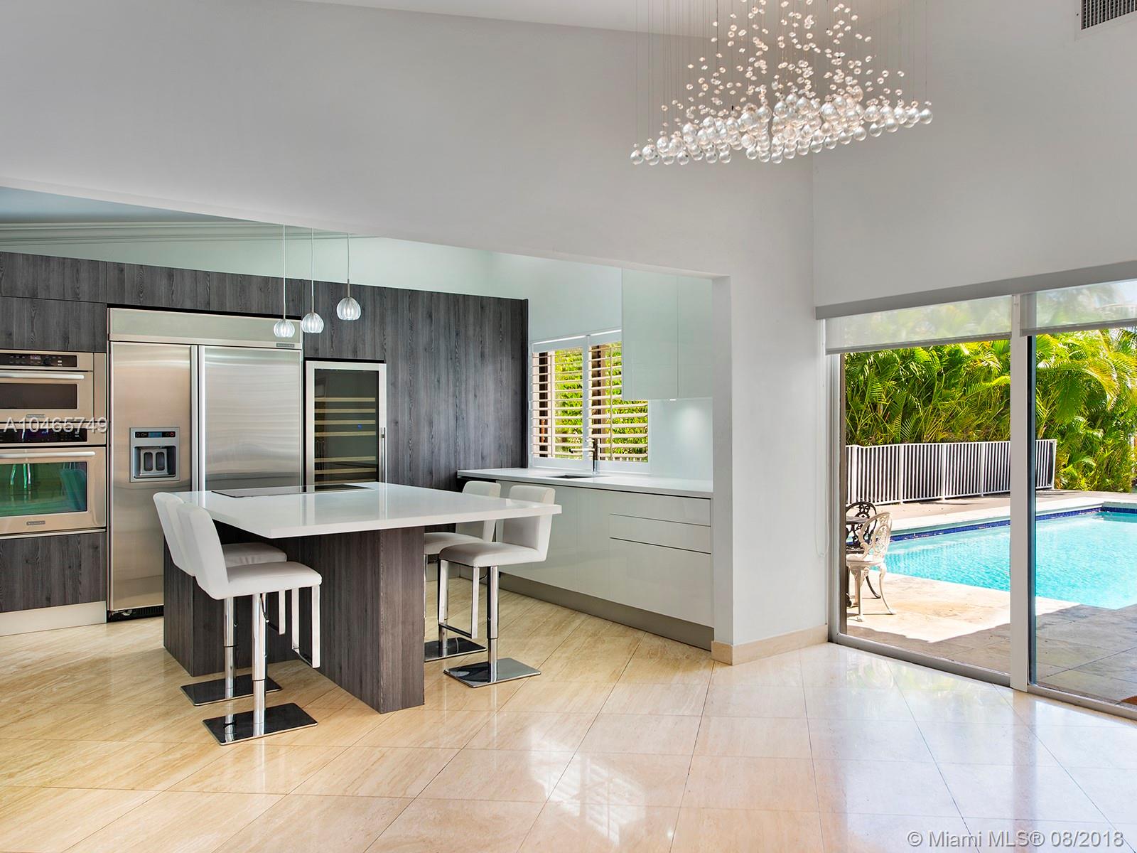 This is an amazingly stylish home with loads of space and privacy for everyone. Formal entry with dramatic staircase & expansive view of pool & waterway. Oversized gourmet kitchen with center counter & access to the outdoors. Family room, large office space, pantry, laundry and huge master suite are all on the 1st floor. Beautiful pool, deck & dock, just minutes to Biscayne Bay. Sans Souci is a gated community, accessible to all that makes Miami exciting.