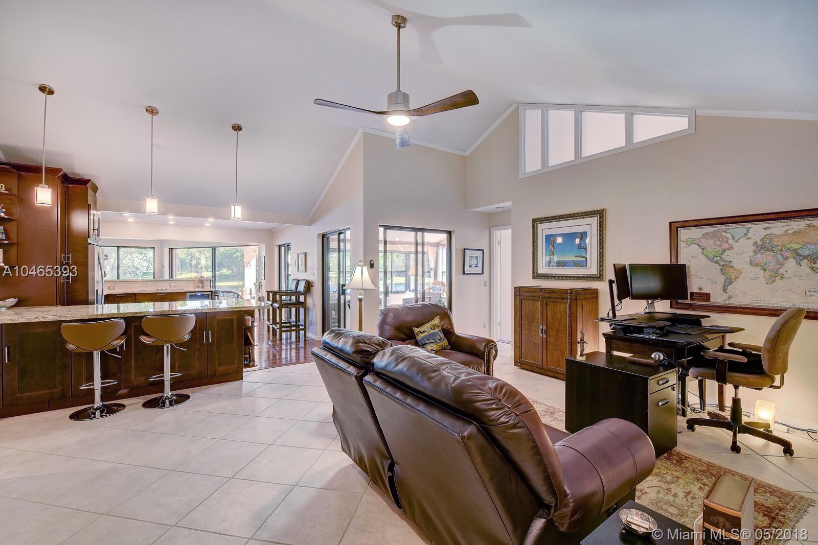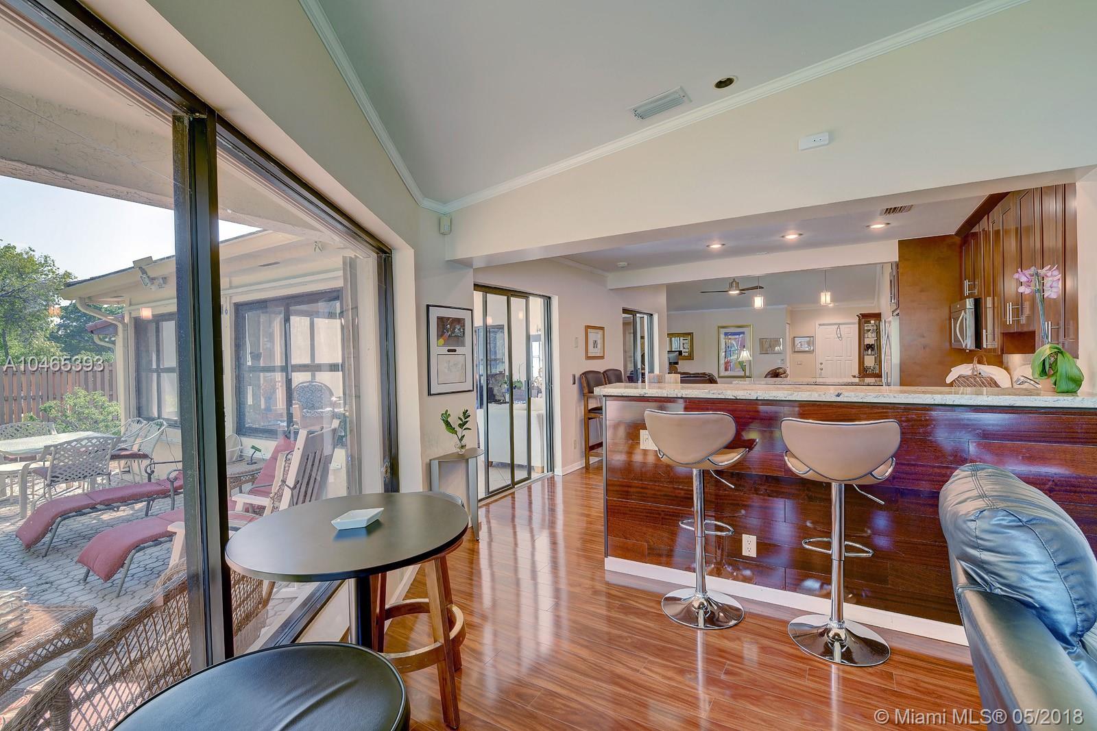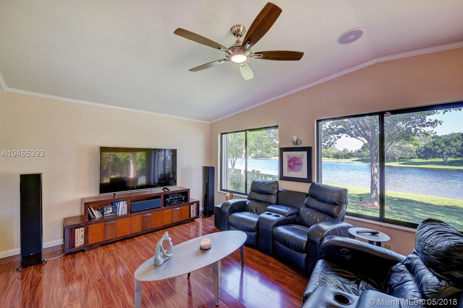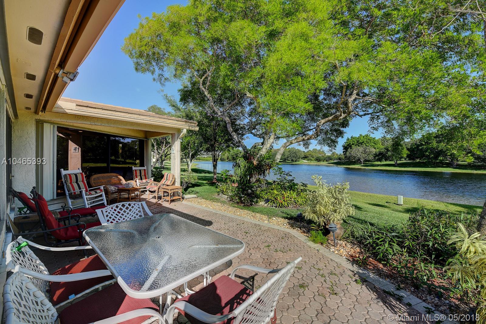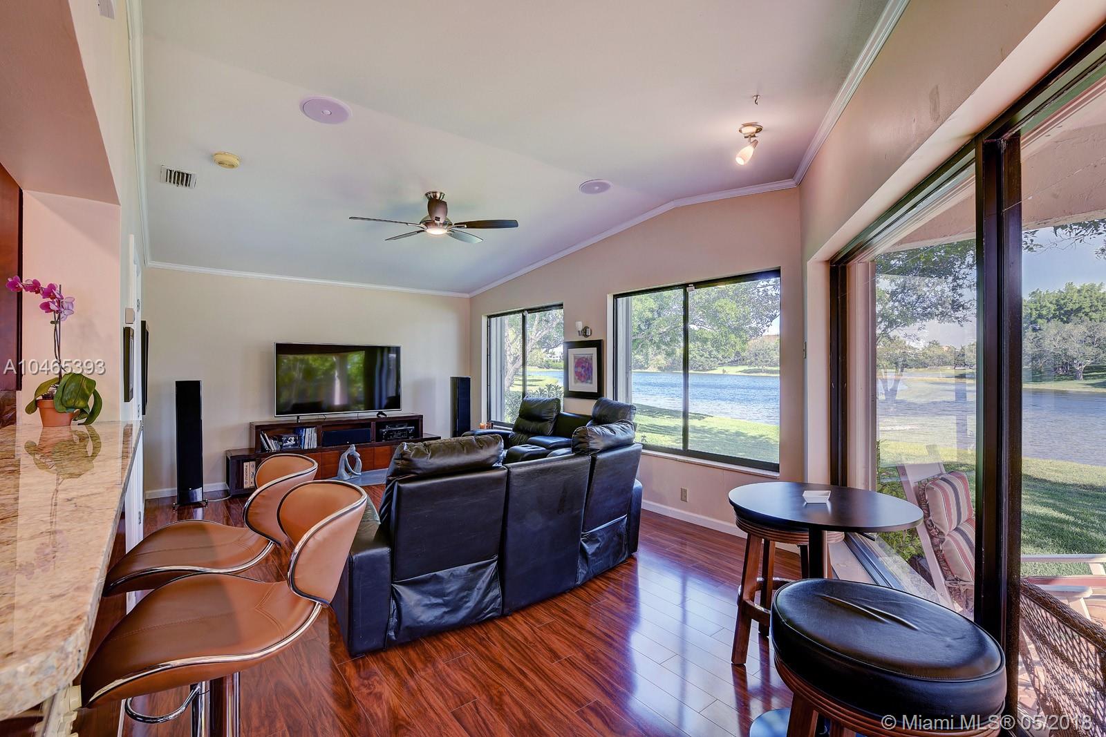 Million Dollar View...Here it is! Surround yourself with over 120 feet of waterfront panoramic lake views! Customized, fully updated floorplan has an abundance of living area. Relax in your contemporary Kitchen with 48" wood cabinets, granite, stainless appliances, wine fridge, and extra pantry storage with over-sized island for the largest buffets or elegant dining. New wood flooring extends into the family room with built-in speakers and expansive wall of windows to take in the views. Interior patio with AC, extends your living space to enjoy the lake's serenity or entertain a crowd. Master bedroom suite and Second bedroom both have updated contemporary baths. Large patios front and back, perfect for relaxing or entertaining. New AC & Security system. HOA includes lawn and tree trimming.