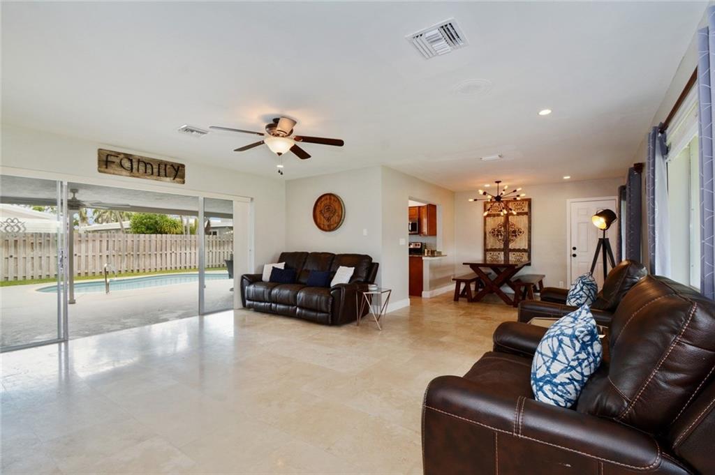Wonderful three bed, two full bath pool home located in lovely Imperial Point. This property features a split bedroom configuration, travertine floors, upgraded spacious kitchen with solid wood cabinetry, stainless steel appliances, granite counters. Separate office area off kitchen. Large covered patio opens to beautiful pool making entertaining a breeze. Remodeled master bedroom En-suite bath. Garage, a/c 2016 and hot water heater 2015. Just minutes to the beach, Intracoastal, shopping and dining.