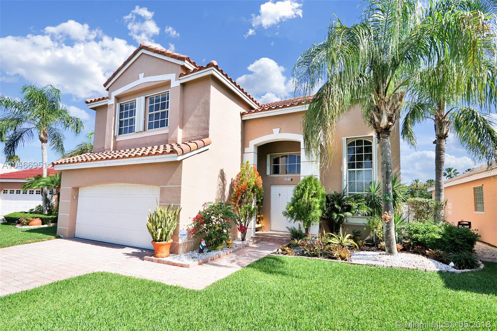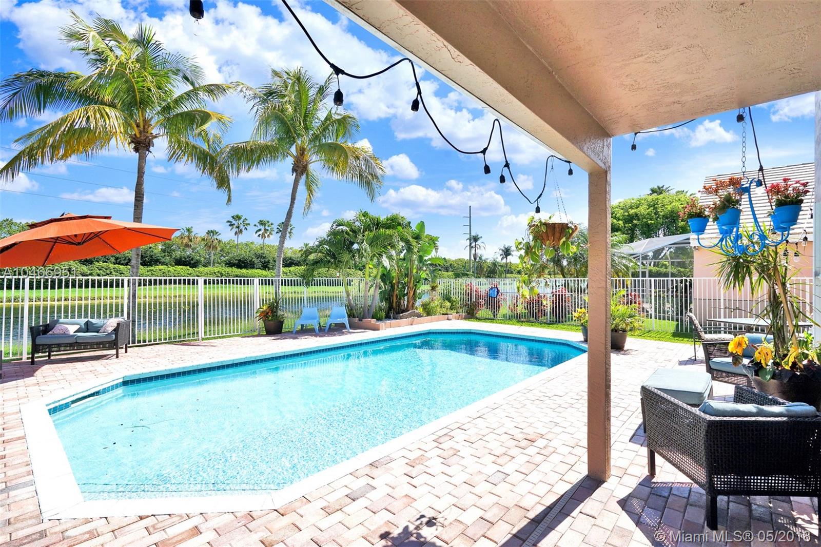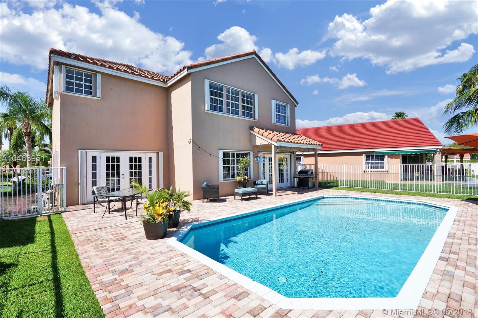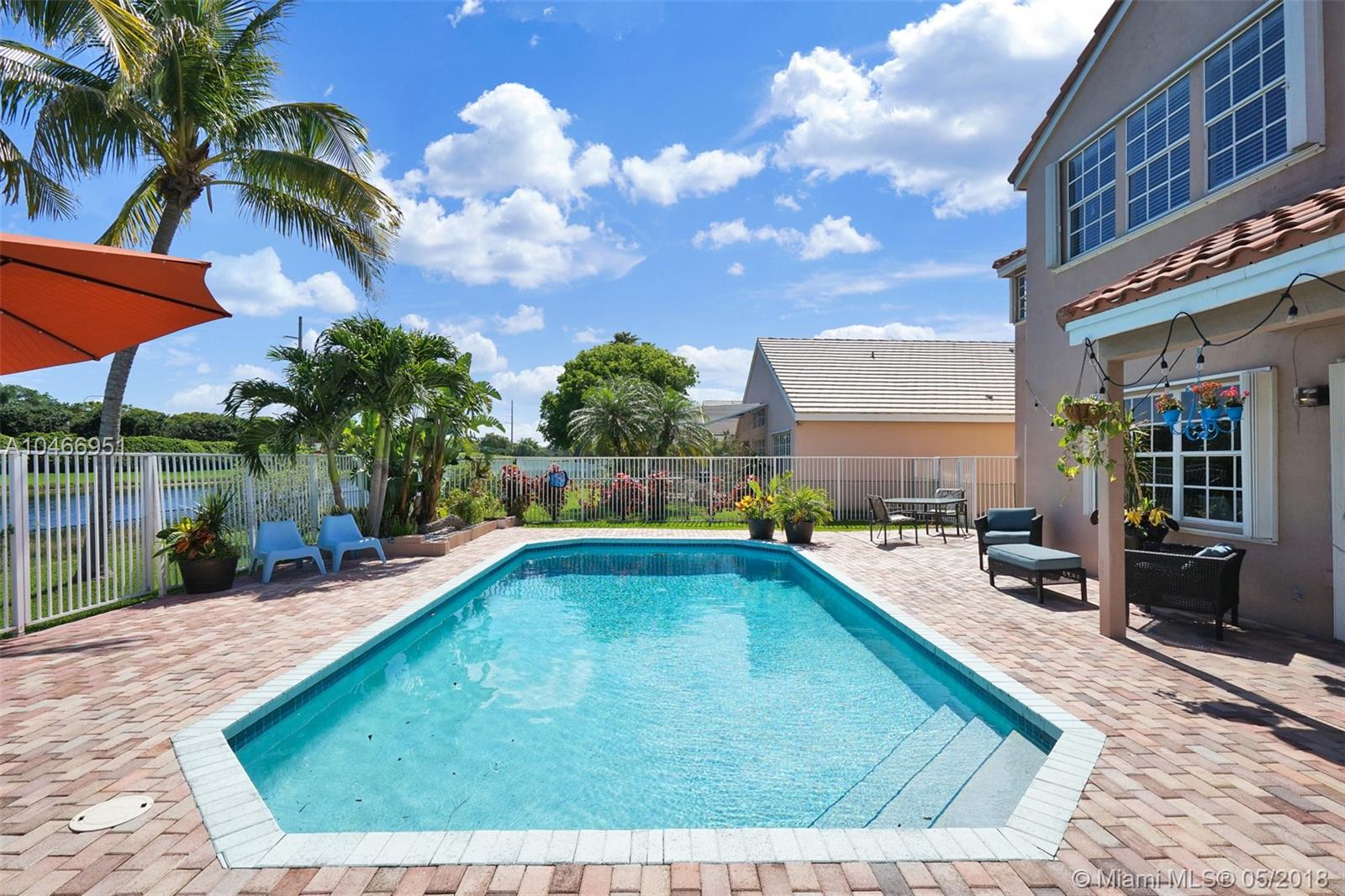 Beautiful Weston, waterfront, pool home on an over sized cul-de-sac lot in Bermuda Springs. Expanded Glenwood 4 model with an extra 4 feet in the kitchen, family, and master bedroom & spare bedroom, and an extra 2 feet in the living room and dining room. Roof replaced after Hurricane Wilma, French doors in dining room and family room. 3 years ago sellers installed 2 1/2' square porcelain tiles throughout 1st floor, installed marble on the staircase, remodeled the downstairs half-bath, replaced all stainless steel appliances, replaced all lights with LED lighting, and replaced popcorn ceilings with knockdown. French doors in dining room and family room. A/C less than 1 year old! Laminate flooring on 2nd floor. Accordion shutters throughout.
