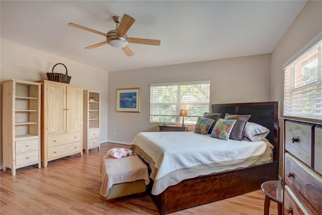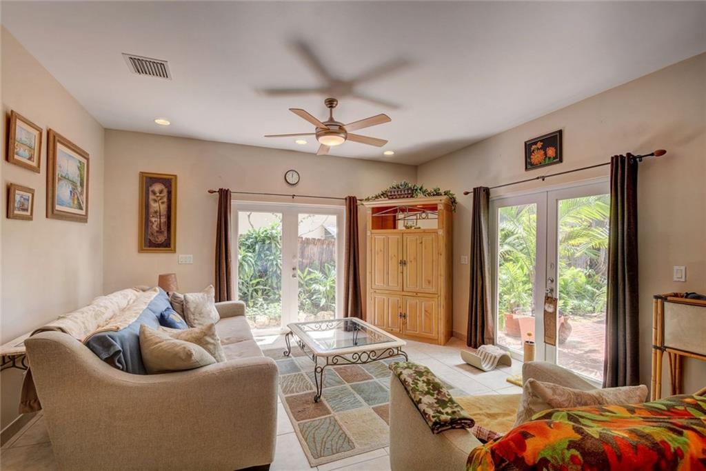 Must SEE!UNIQUE Beautiful home & income property,located close to schools, shopping,beach,airport & highways. This huge property has a 1/1.5 guest house,with a separate meter,entrance,parking,laundry room.Can be converted back to a 2 bedroom.The main house was built in 2004, it is a 4/3,4th room used as an office,private road entrance to a 2 car garage,lots of storage,private courtyard or room for a pool. Every room is full of natural light with views of the lush gardens,both houses have impact windows.