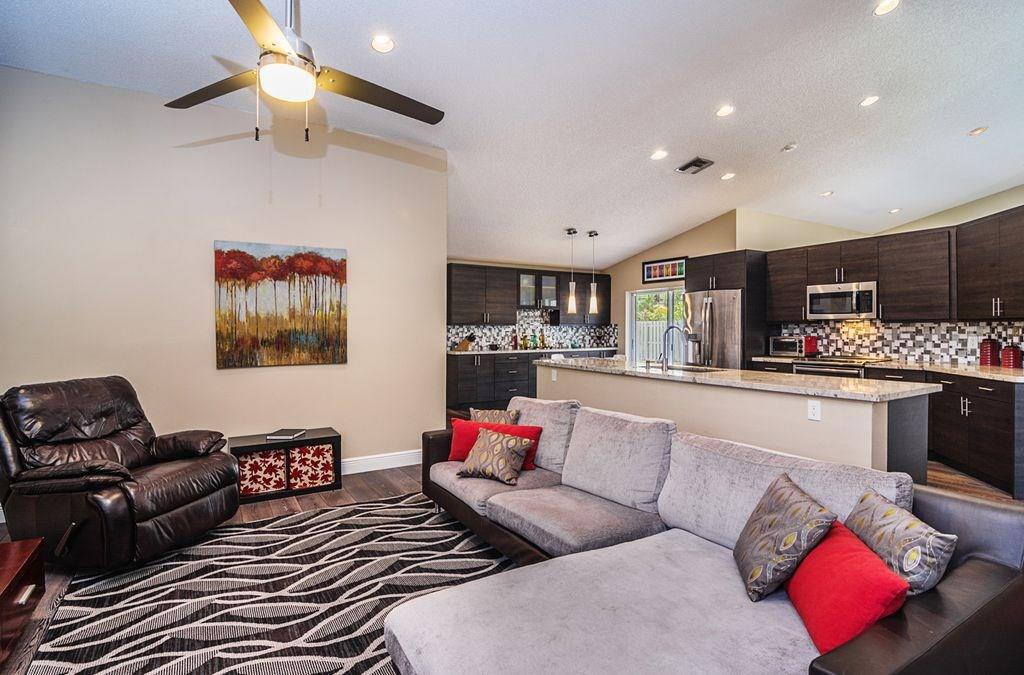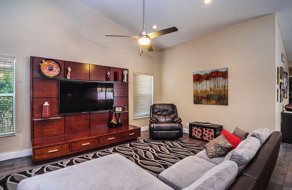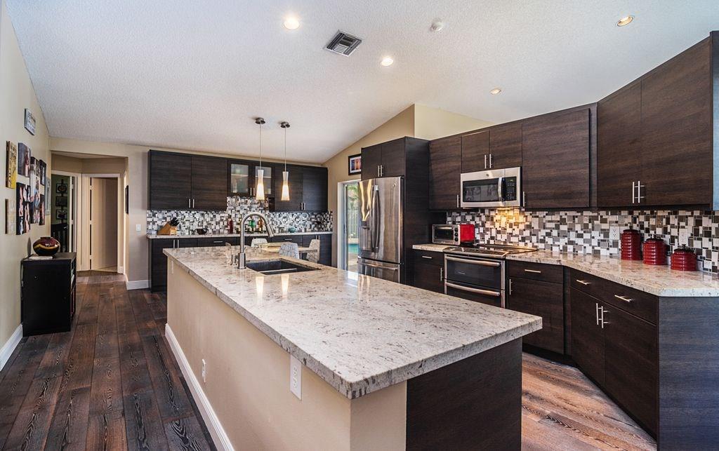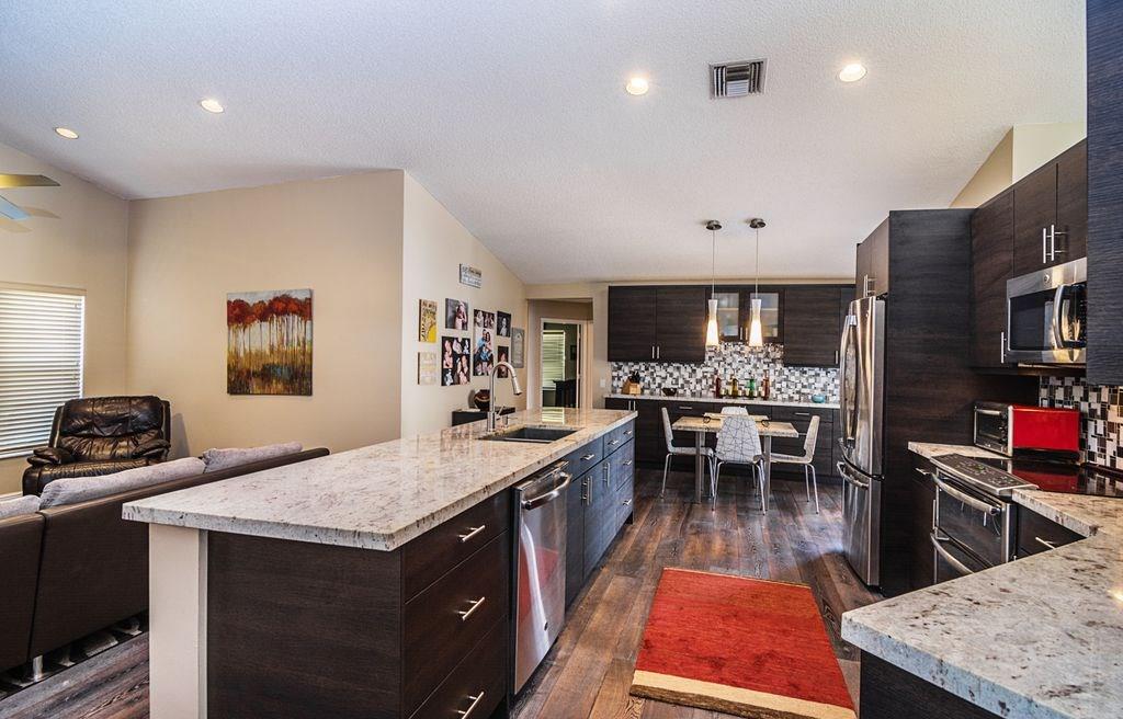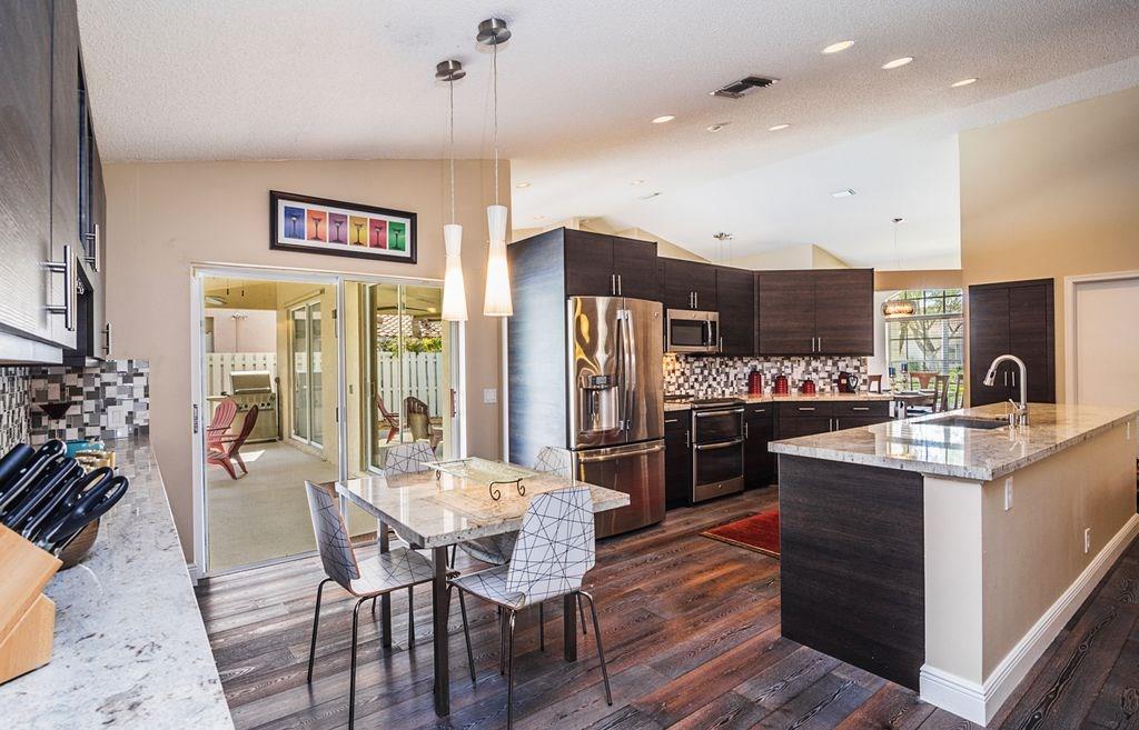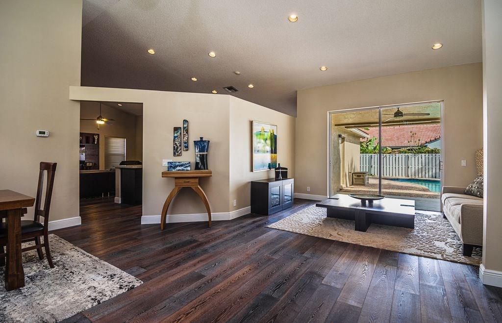 Stunning 1-Story,4 bed/2.5 bath home finely finished w/exceptional attention to detail at each & every turn! Spacious living room featuring vaulted ceilings and an amazing pool view. Renovated kitchen w/upgraded GE stainless steel appliances,granite counter tops and eat in kitchen! Engineered Hardwood throughout with high quality carpet in the bedrooms. Expansive outdoor pavered covered patio, large pool and lushly landscaped yard that is fully fenced! Low HOA, A+ Schools makes this a MUST SEE!