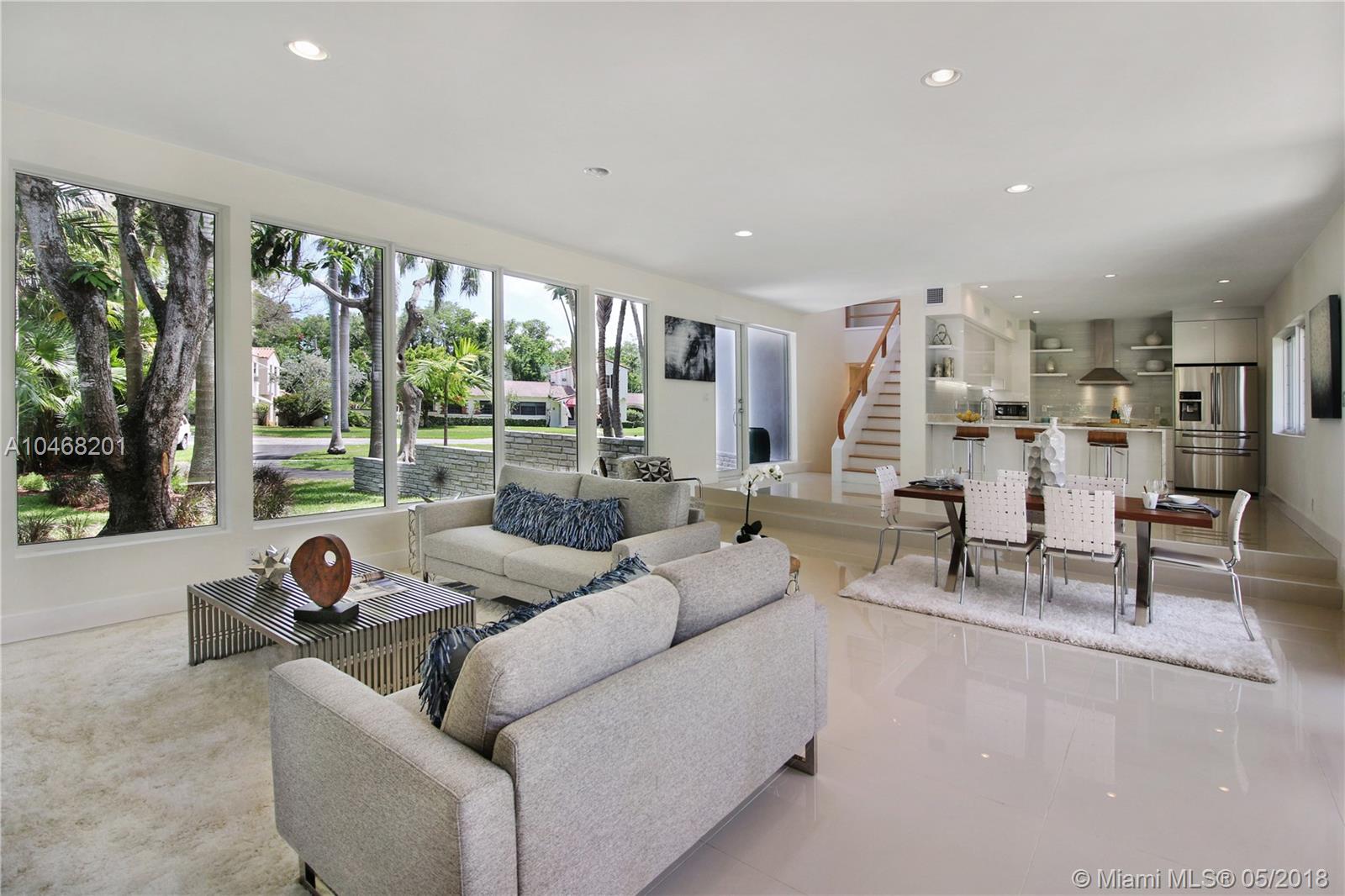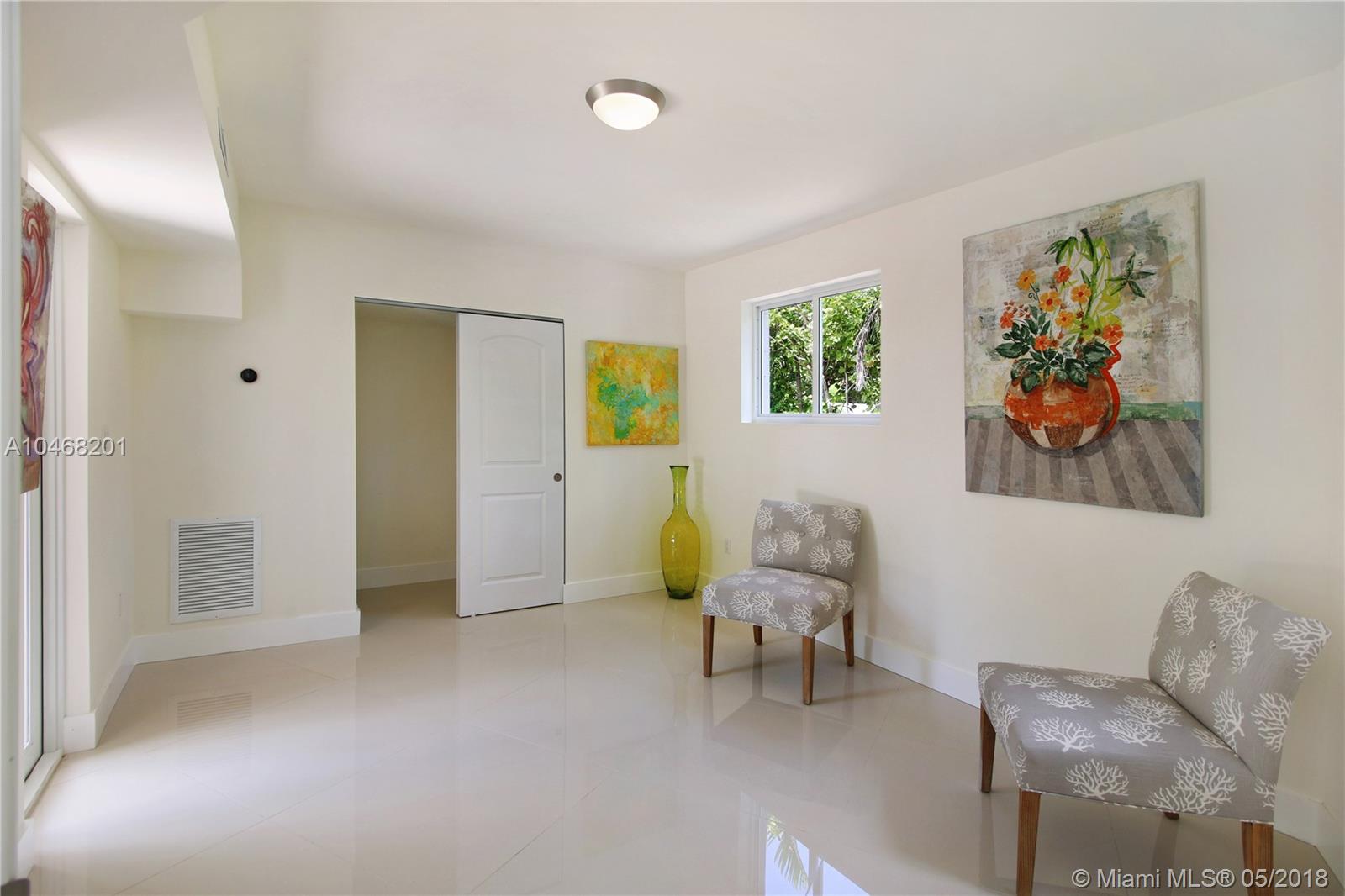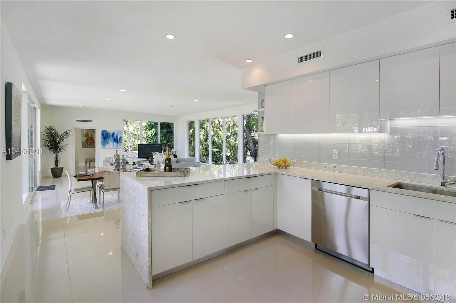 FABULOUS 100% remodeled 3/2 home on one the most desired streets of MIAMI SHORES. 2 Blocks from large bay this property is on an X FLOOD ZONE lot. All new roof, impact windows, electric and plumbing. White porcelain floors and an Italian contemporary design open kitchen with fine finishings and appliances. Wonderful original design oak banister and stairs up to the master, large walk-in closet and lovely bathroom. Oversized windows through out the home bring in sparkling sunlight with gorgeous green vistas. Over sized 1 car garage has plumbing for a full bathroom, new tankless water heater & 1 of 2 A/C units for the house. The yard has room for a pool.