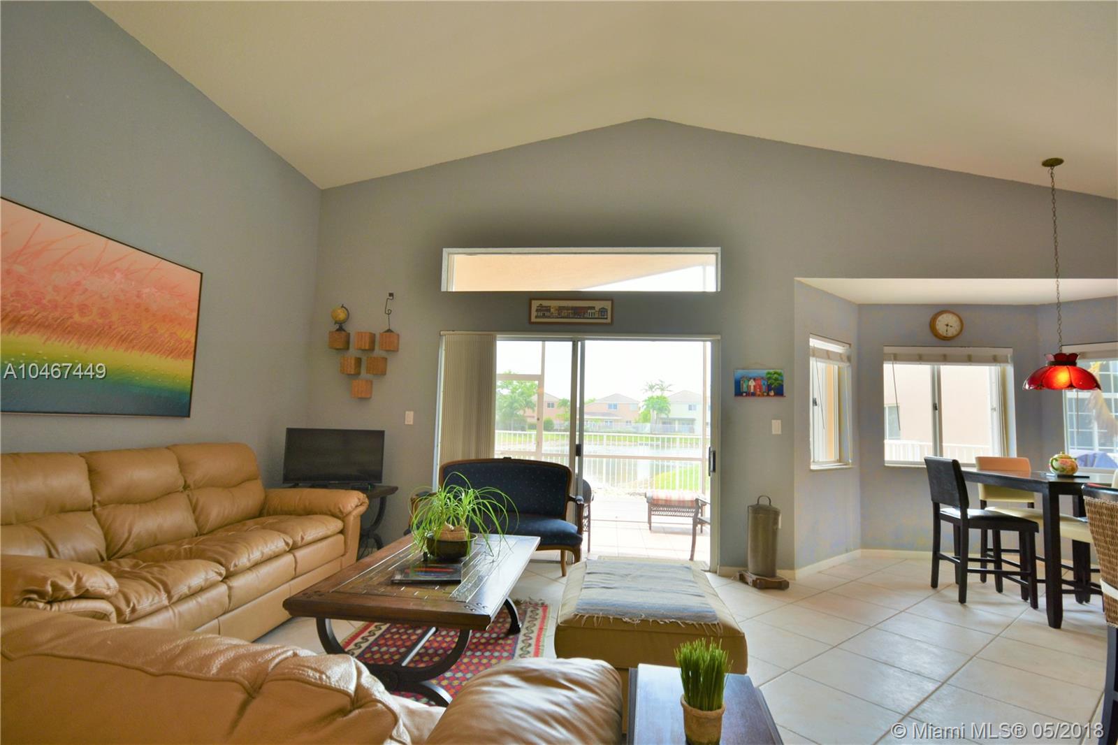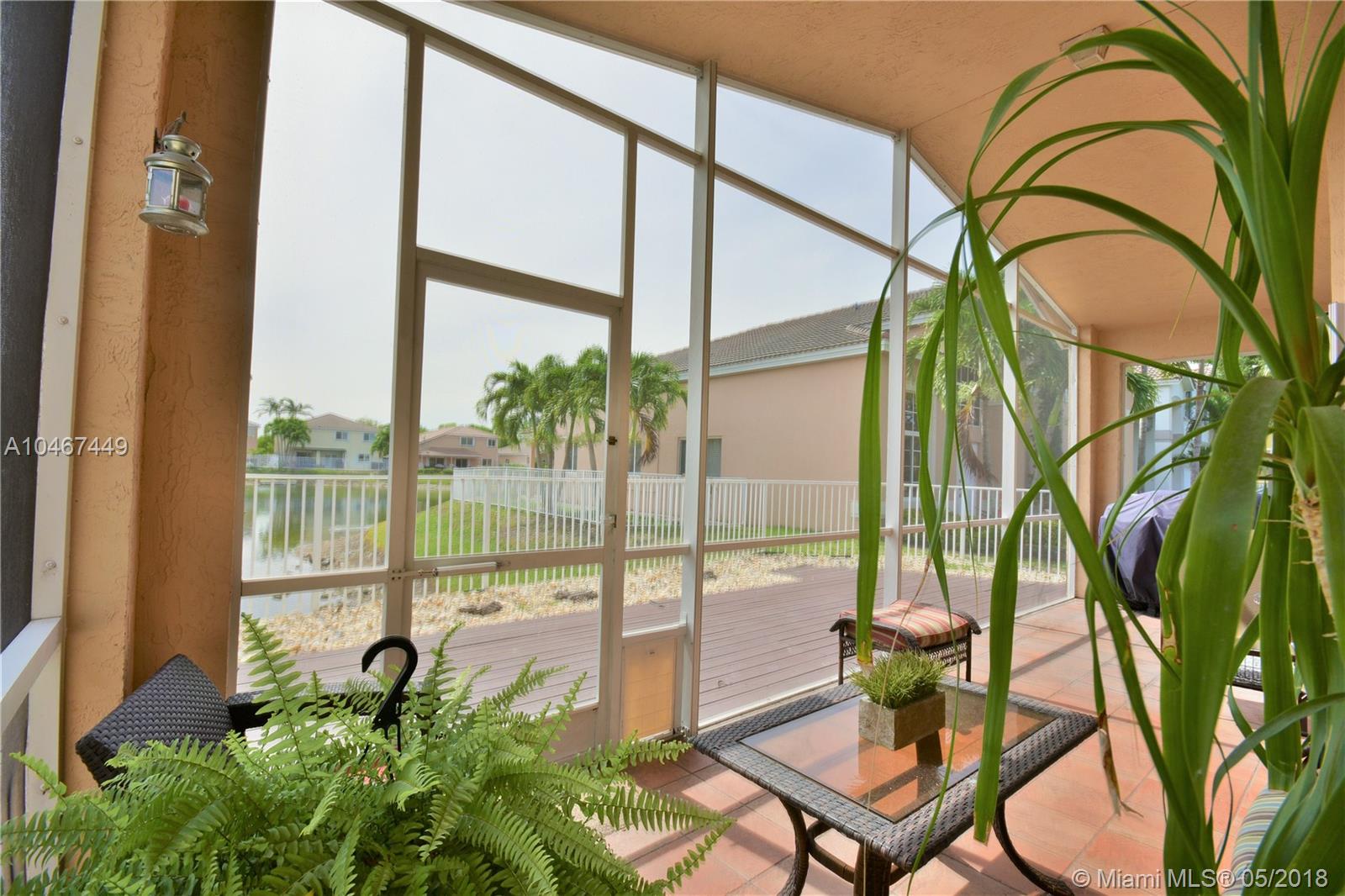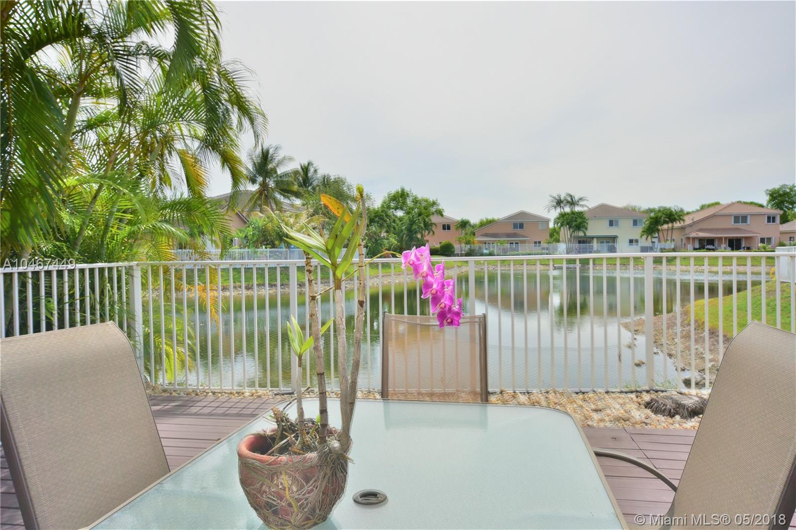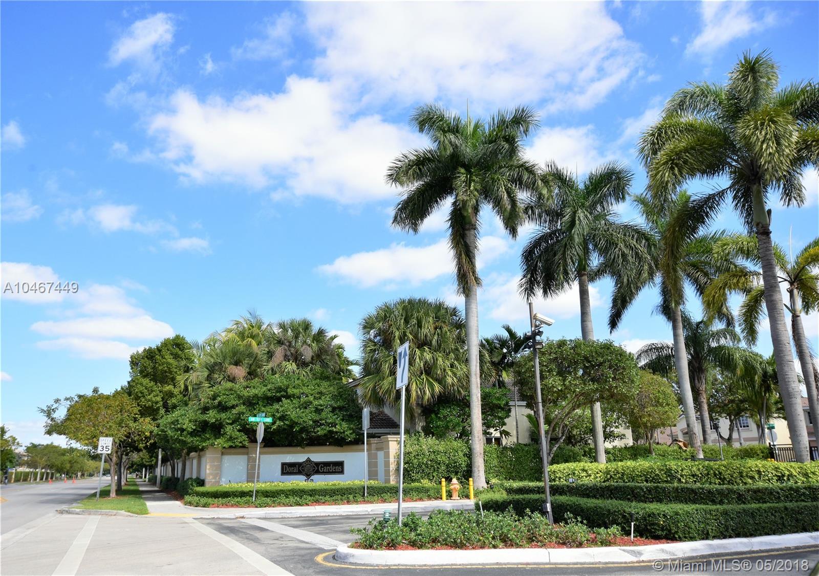 Beautiful and quiet 1 Story lake front residence in the Gated Community of Doral Gardens. This property features 4 Bedrooms & 2 Bathrooms, up dated Kitchen w/Granite counter tops & S/S appliances. Breakfast area. Tiles floor throughout common areas and Hardwood floor in bedrooms. Backyard with ample view of the lake. Screened porch with Wood deck. 2 car garage, home is located on a private Cul de Sac. Walking distance to A+ school. Very low maintenance, HOA includes basic cable and alarm system. Accordion shutters. A MUST SEE !!!!