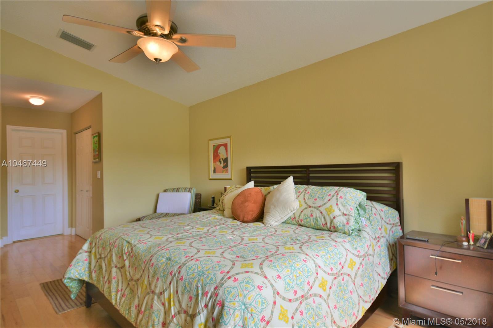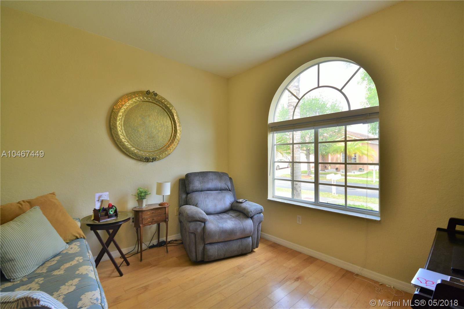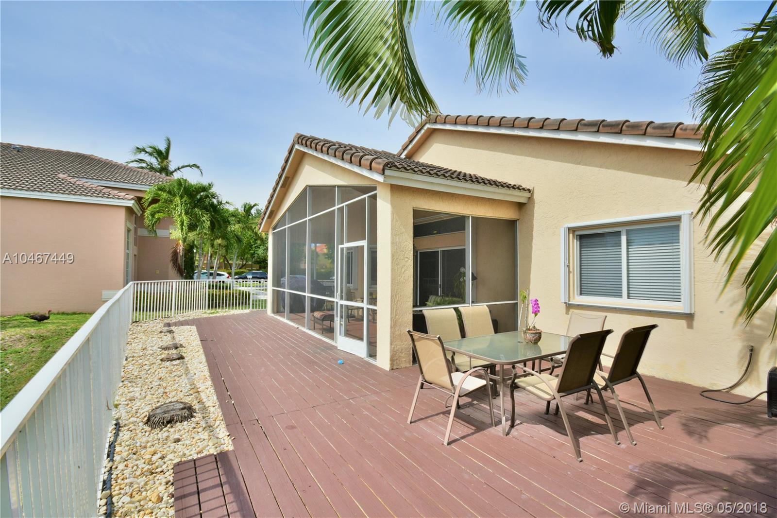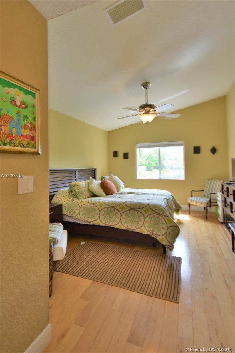 Beautiful and quiet 1 Story lake front residence in the Gated Community of Doral Gardens. This property features 4 Bedrooms & 2 Bathrooms, up dated Kitchen w/Granite counter tops & S/S appliances. Breakfast area. Tiles floor throughout common areas and Hardwood floor in bedrooms. Backyard with ample view of the lake. Screened porch with Wood deck. 2 car garage, home is located on a private Cul de Sac. Walking distance to A+ school. Very low maintenance, HOA includes basic cable and alarm system. Accordion shutters. A MUST SEE !!!!
