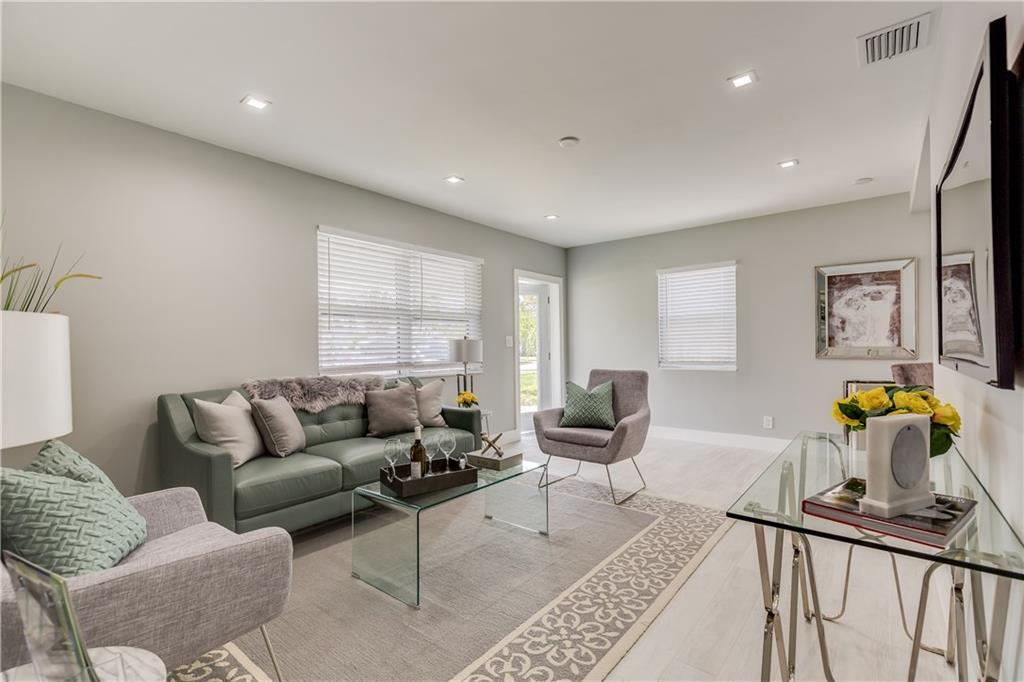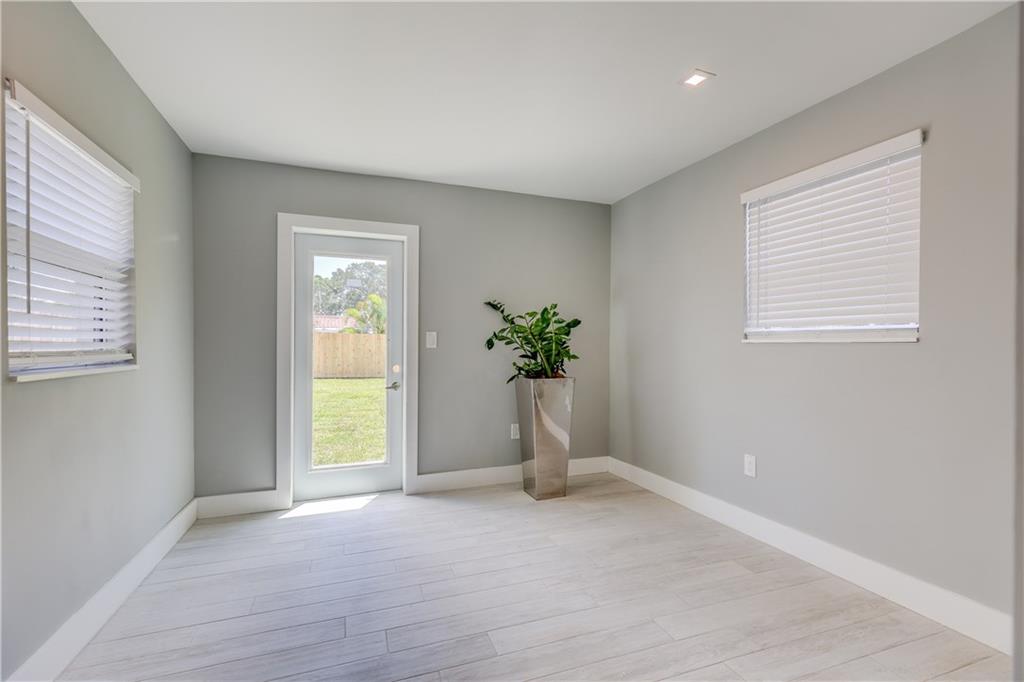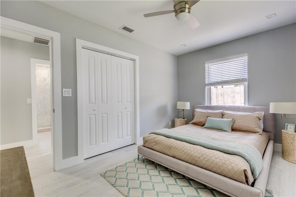 JUST REDUCED - Stunning Contemporary Completely Remodeled home. 3 bed 1 bath w/bonus room for a den/office. Features new Quartz Kitchen, Glass Tile & SS Appliances, Bathroom Carrera Marble w/ overhead Rain Head Shower. Beautiful Porcelain tiles. Custom Closets & Ceiling fans all bedrooms. Large private fenced back yard for entertaining - new landscaping and sod. Well Sprinkler system. New roof, plumbing, electrical & Impact windows/doors Located a mile from beach/Dtown.