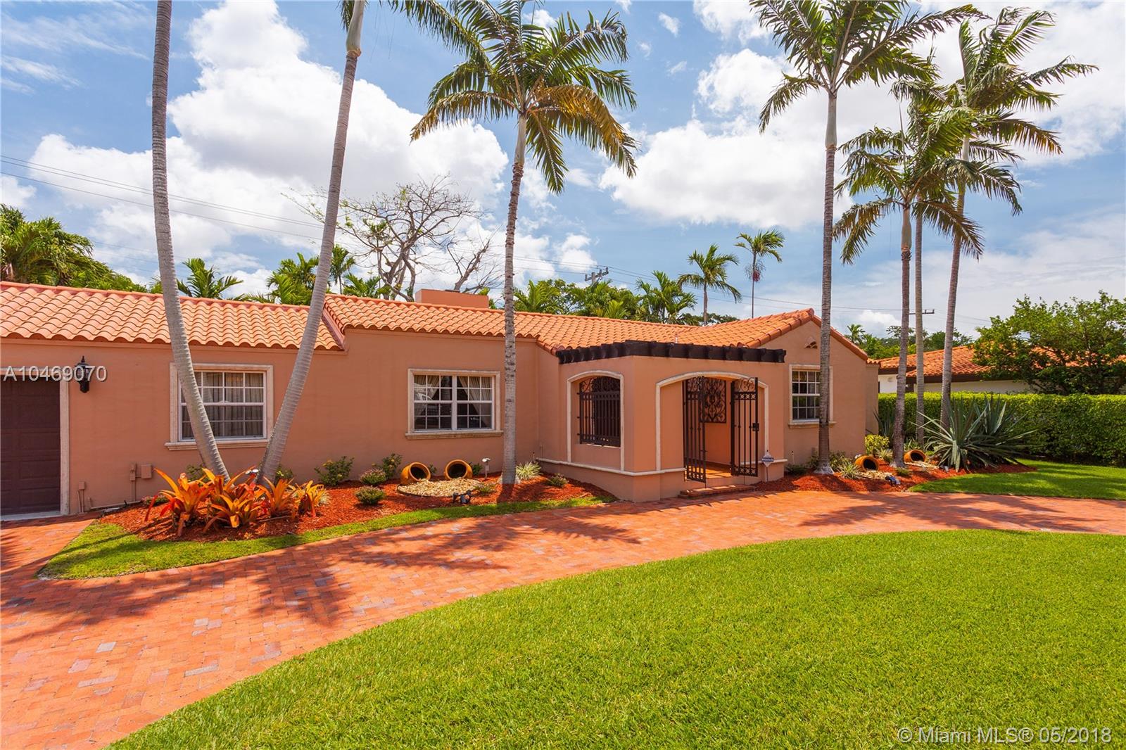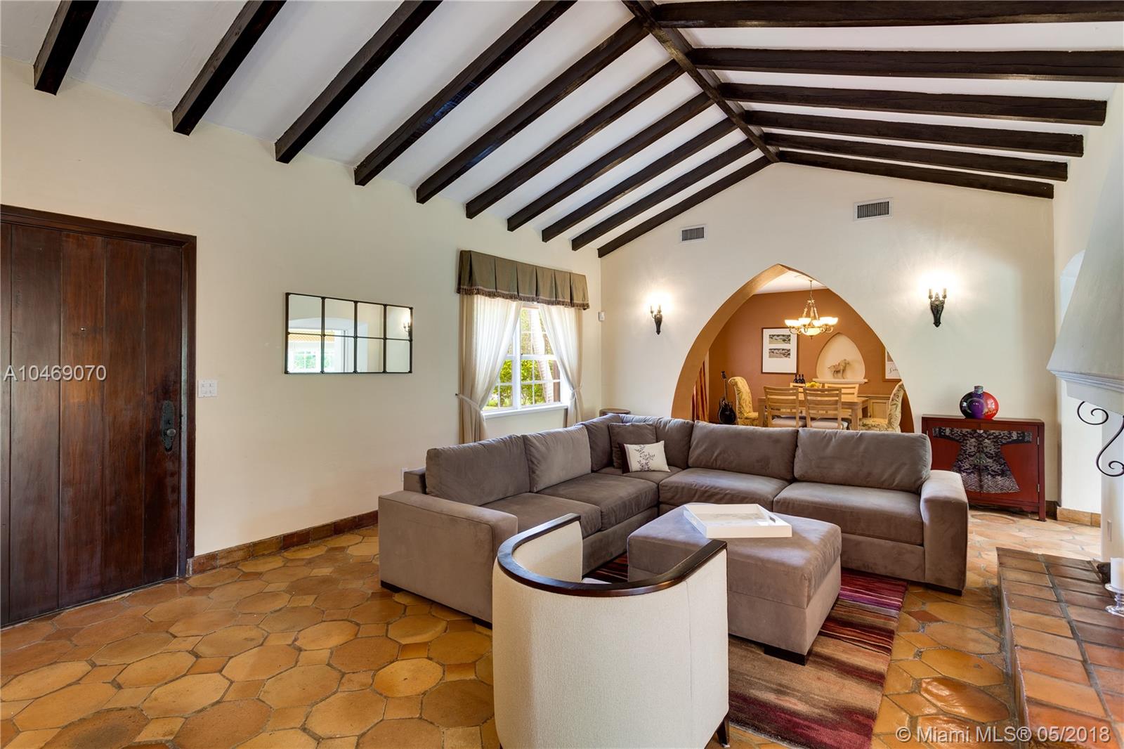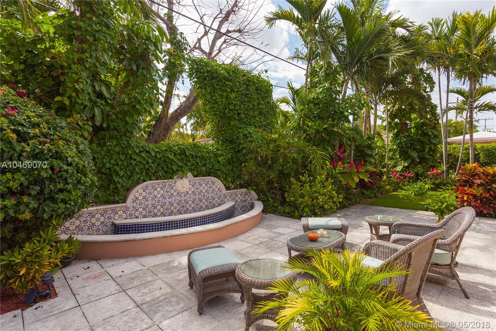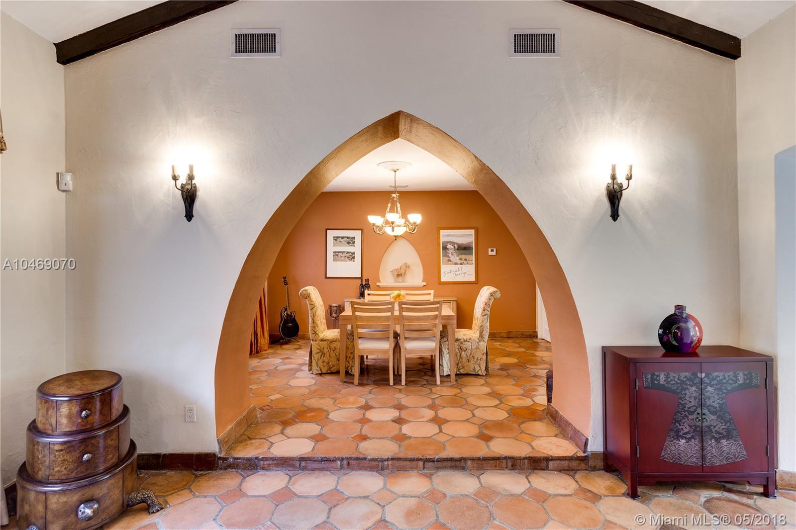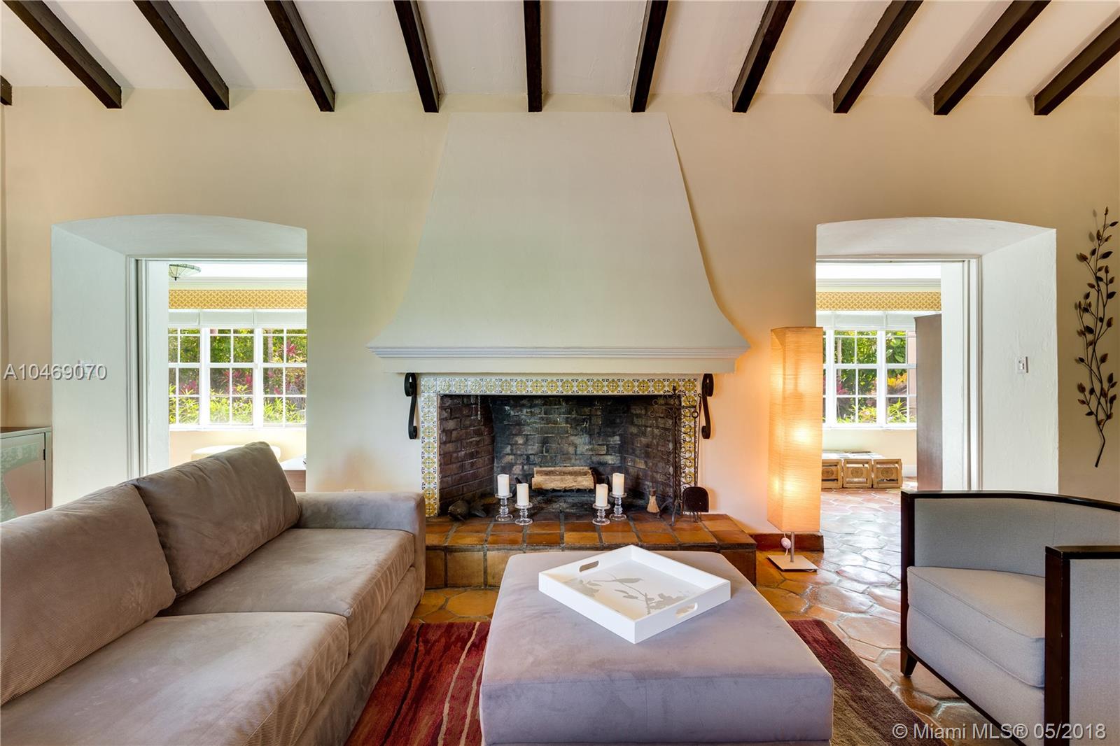 Commanding architectural features are evident in this stylish 1938 Art Deco Mediterranean home. Upon entry, a bold fireplace commands attention as do the beamed ceiling and the whimsical archways. Spacious bedrooms, updated kitchen and bathrooms, and plentiful storage abound. Walled and gated, the home has a new roof and has been freshly painted which all add up to turn-key living. The alluring garden, part of the 10,000-foot lot proudly displays a large fountain that graces the charming patio. Designed by renowned architects, Kiehnel & Elliott, (the Architects for El Jardin in Coconut Grove and Coral Gables Congregational Church), for lovers of historical architecture, this home will not disappoint. A Very Special Home.