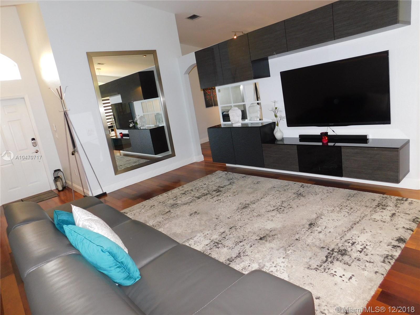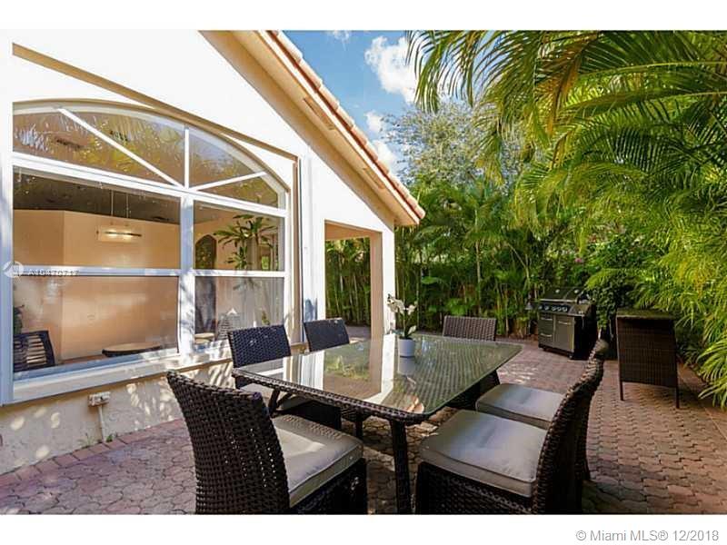 Charming and fully upgraded 3 bedroom 2 bath, 1 story home in prestigious Doral Isles a gated community. High ceilings, solid wood Brazilian floors, gourmet kitchen with Cuisinart and Subzero appliances, granite counter tops, and wine storage fridge. Custom made closets, fully renovated baths with glass doors, porcelain floors and speakers. One car garage. This property sits on a corner lot w/ canopy and a great patio with BBQ area. Comcast cable ready! GE Washer and Dryer, lights with dimmer switch, accordion shutters, black out curtains, furniture is negotiable.