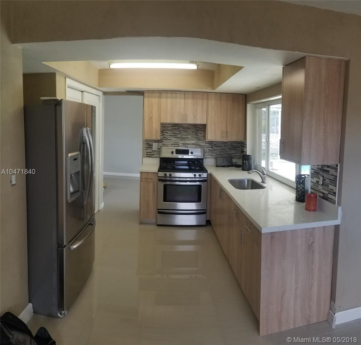 Gorgeous home ready for the perfect family. Your home features beautiful ceramic tile all through out the living room, kitchen, and dining room, blended with a nice touch of wooded flooring in all three bedrooms and both bathrooms renovated to beautiful look. Master bedroom includes walk in closet. additional upgrades include a brand-new Kitchen with wood cabinets and counter top. new stainless steal appliances. new A/C, new electric panels and a great view to the pool and water view.