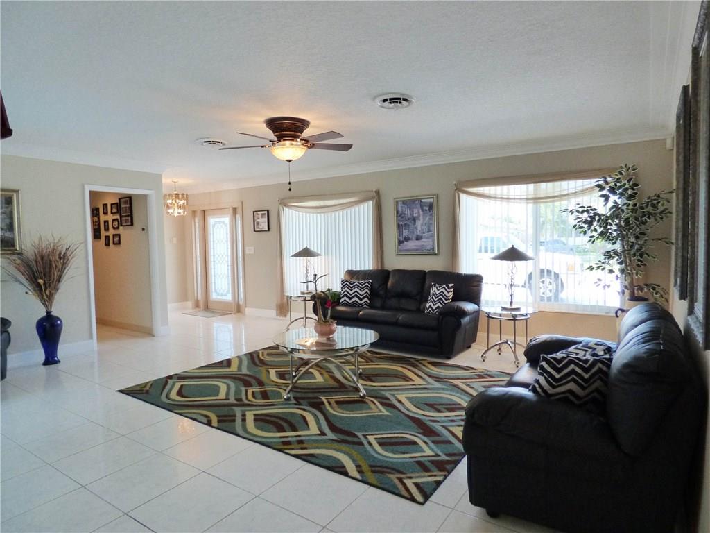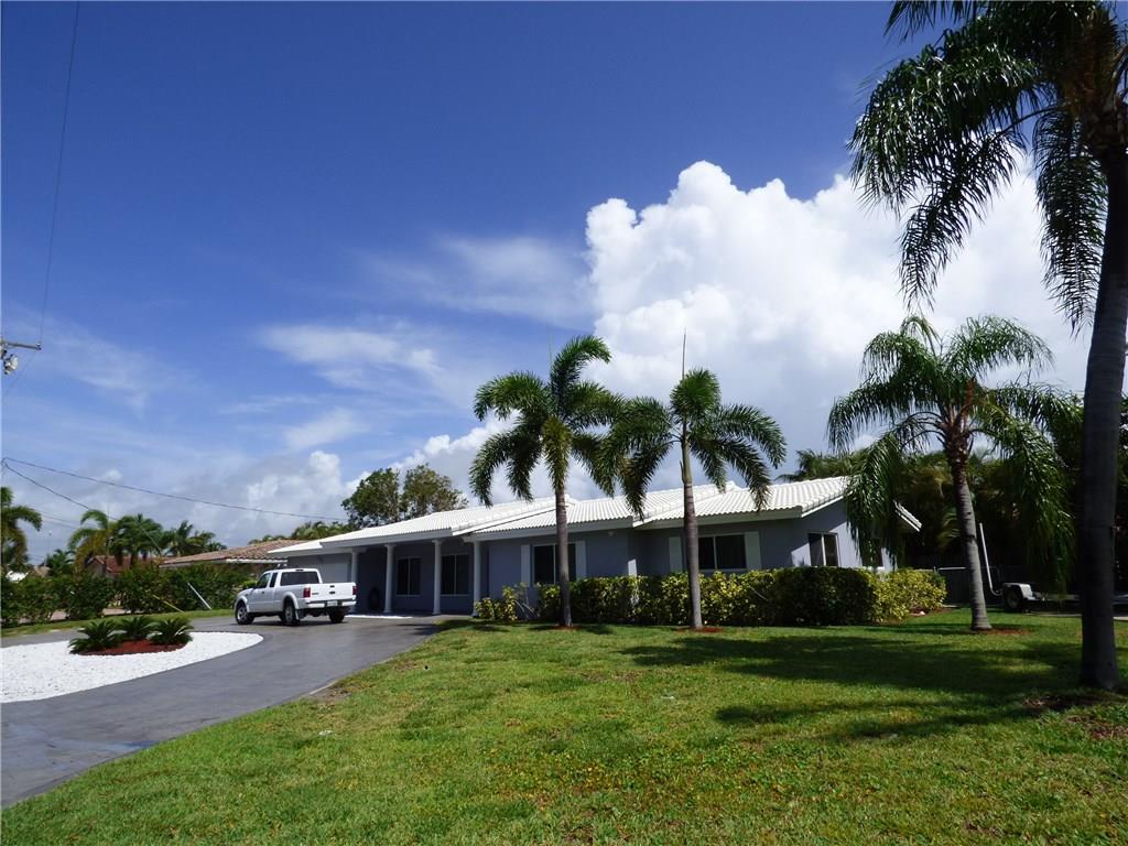 This sprawling corner home is located in a wonderful neighborhood just west of US 1 in SE Pompano Beach. Situated on an enormous 1/4 acre+ waterfront lot (1 FB, 40' on H2o), the possibilities are endless. This home offers a sought after split bedroom plan, & extremely spacious common living areas including a media room by 2 of the bedrooms, a spacious living room with a beautiful view of the pool, & a wonderfully updated open kitchen and dining area also overlooking the pool. Newer roof & mostly impact.