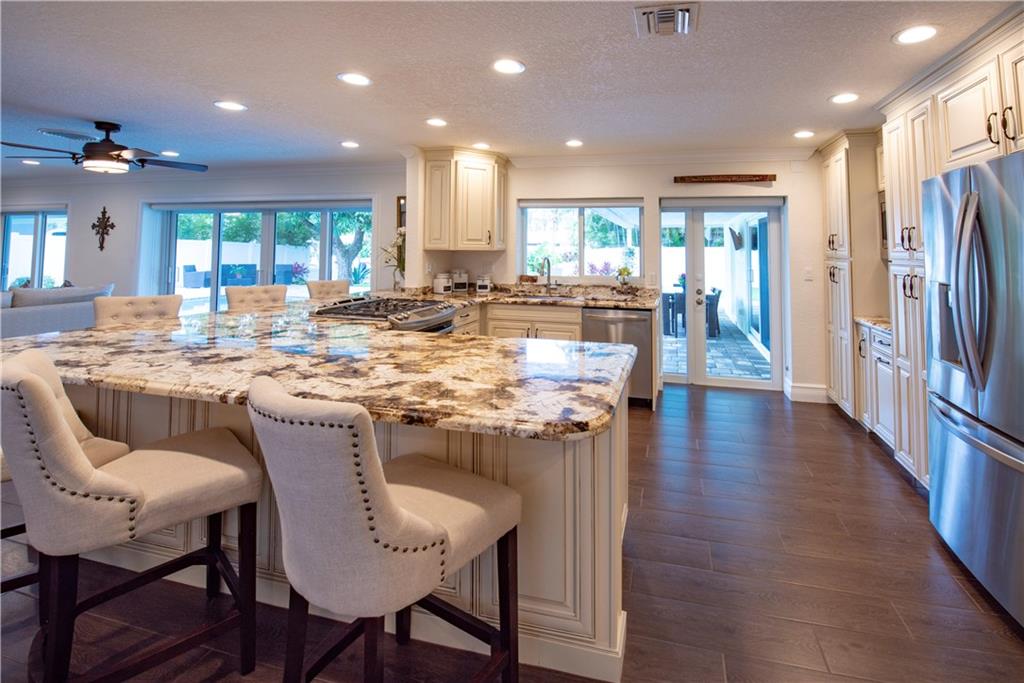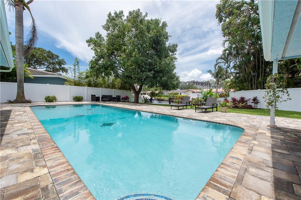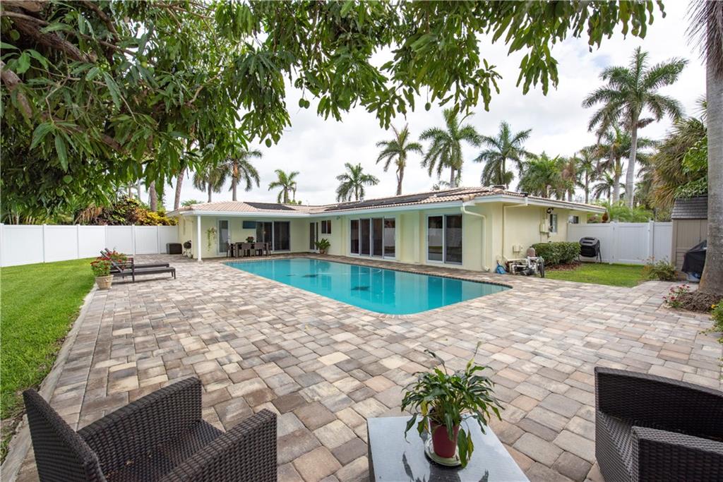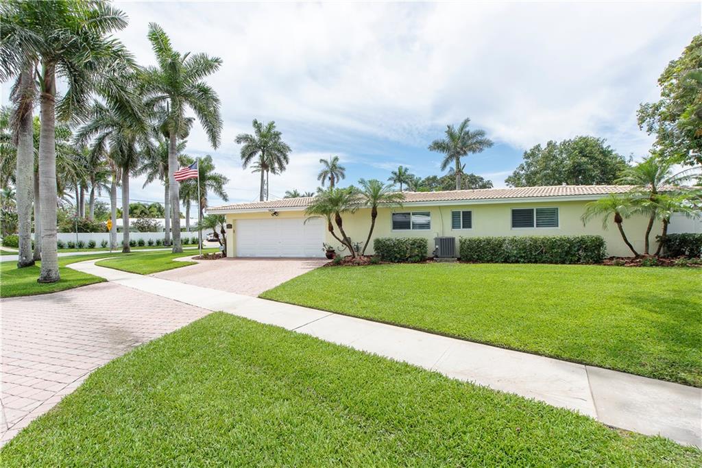Stunning, completely updated in sought after Coral Ridge Isles! New open concept chef's kitchen w/gas range cooking island, top stainless appliances & breakfast bar for 8. New porcelain plank floors continuous throughout. Sliders & French doors seamlessly blend interior w/outdoor living. New triple pane impact doors & windows. New plantation shutters, custom shades, crown moulding, & recessed lights. New pool, pavers & PVC fenced yard. New A/C. 2 car garage & indoor laundry. You won't find a better home!