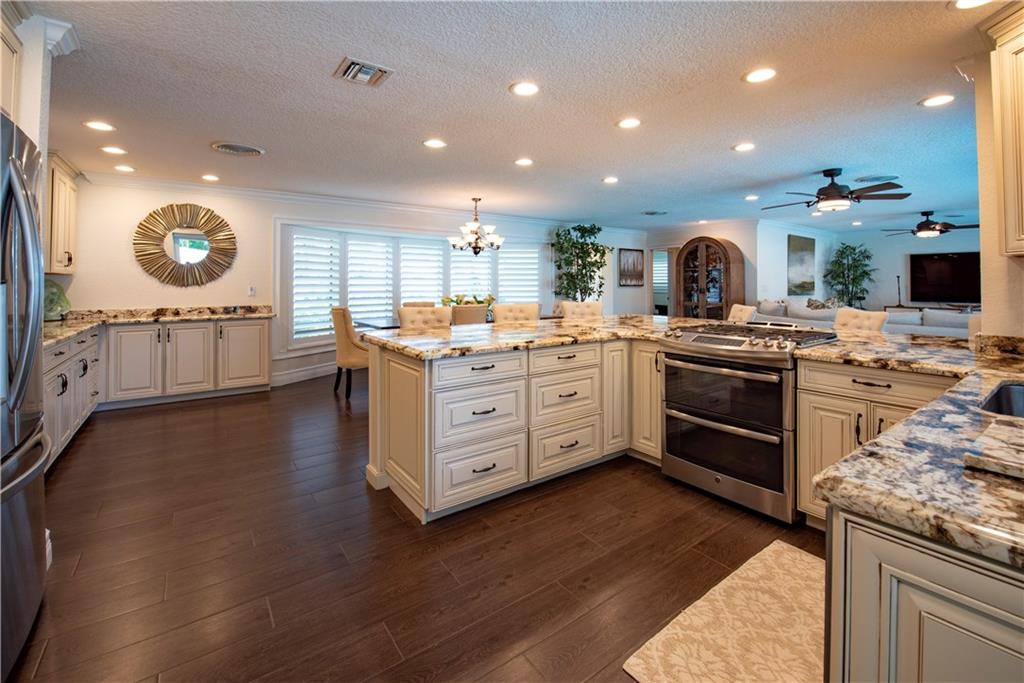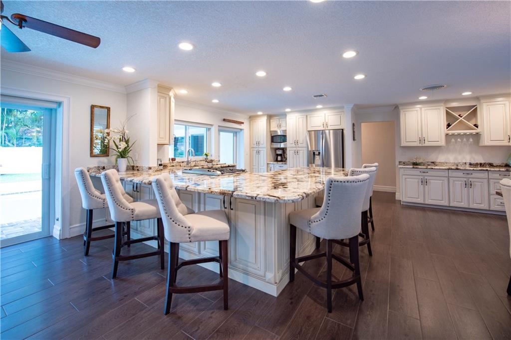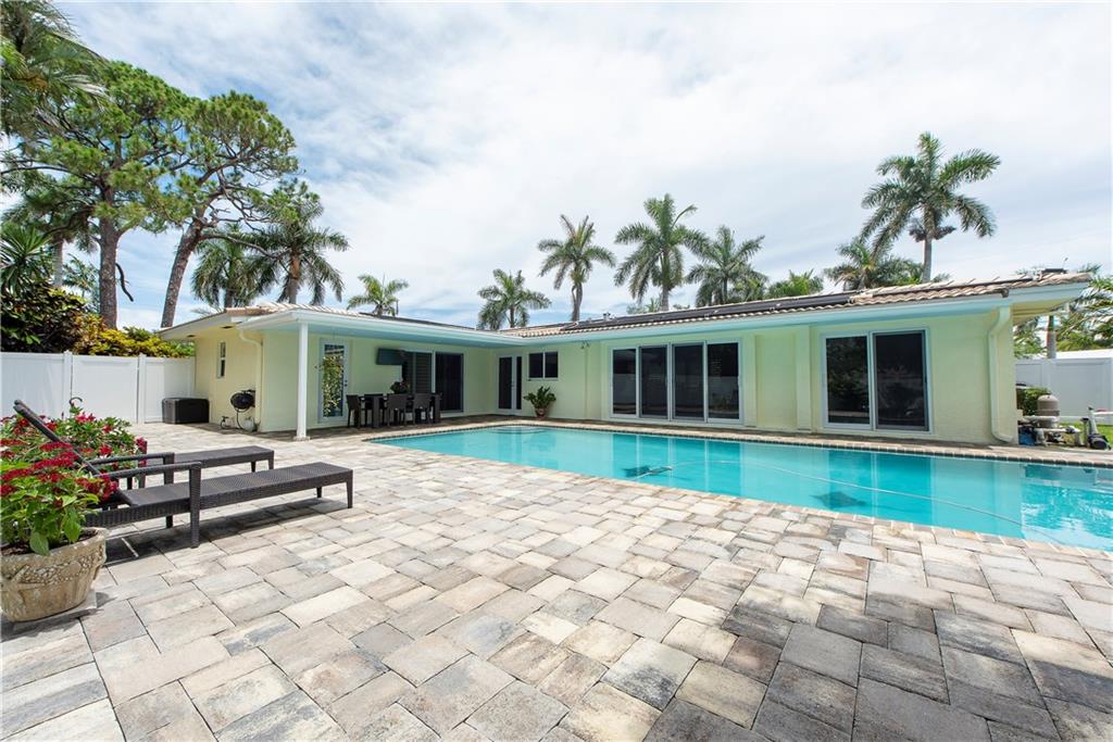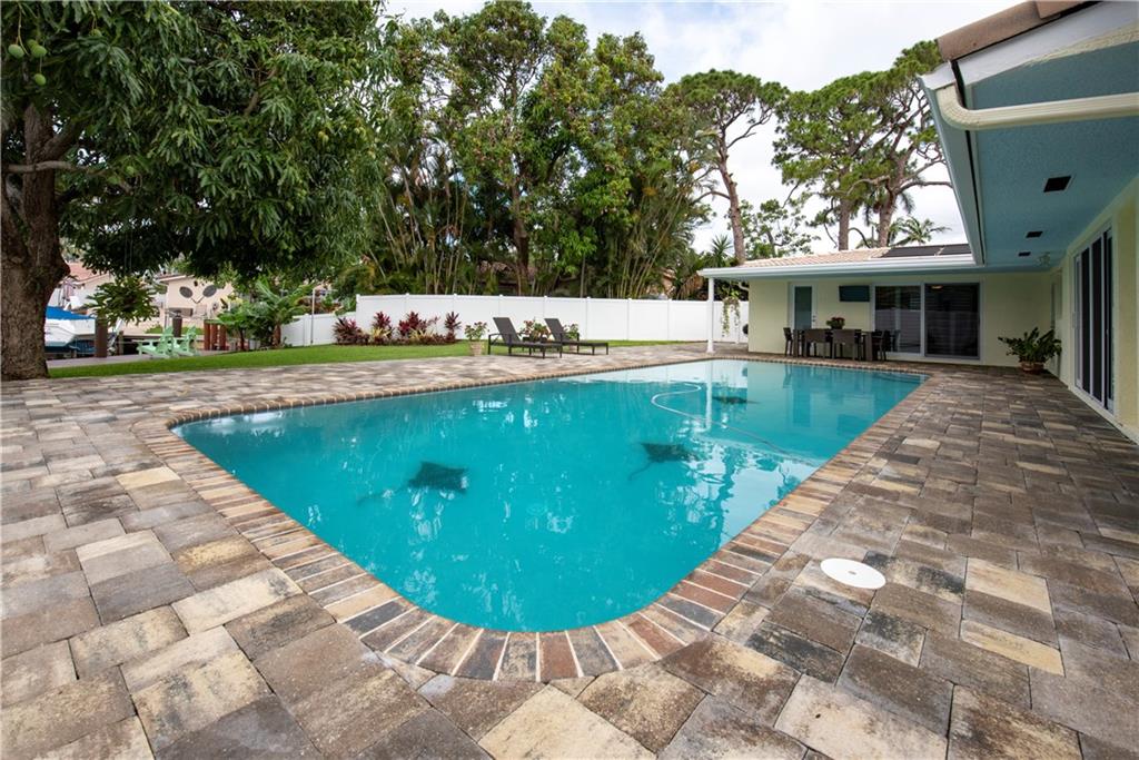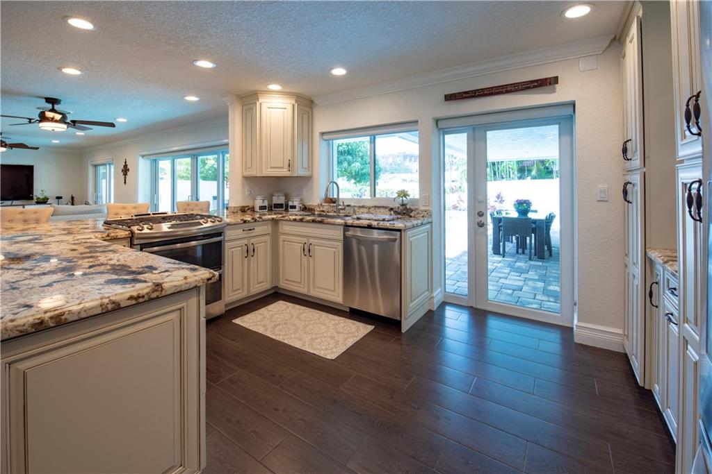 Stunning, completely updated in sought after Coral Ridge Isles! New open concept chef's kitchen w/gas range cooking island, top stainless appliances & breakfast bar for 8. New porcelain plank floors continuous throughout. Sliders & French doors seamlessly blend interior w/outdoor living. New triple pane impact doors & windows. New plantation shutters, custom shades, crown moulding, & recessed lights. New pool, pavers & PVC fenced yard. New A/C. 2 car garage & indoor laundry. You won't find a better home!