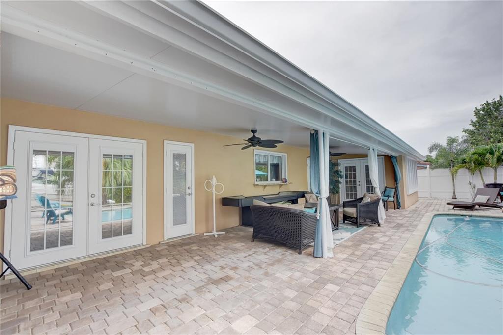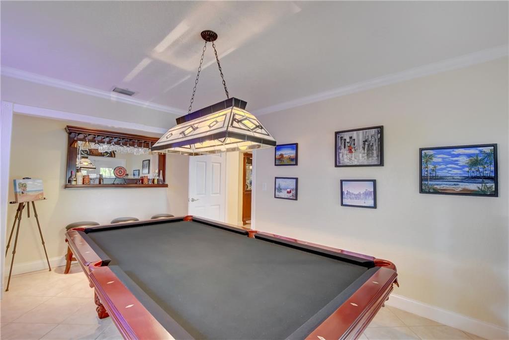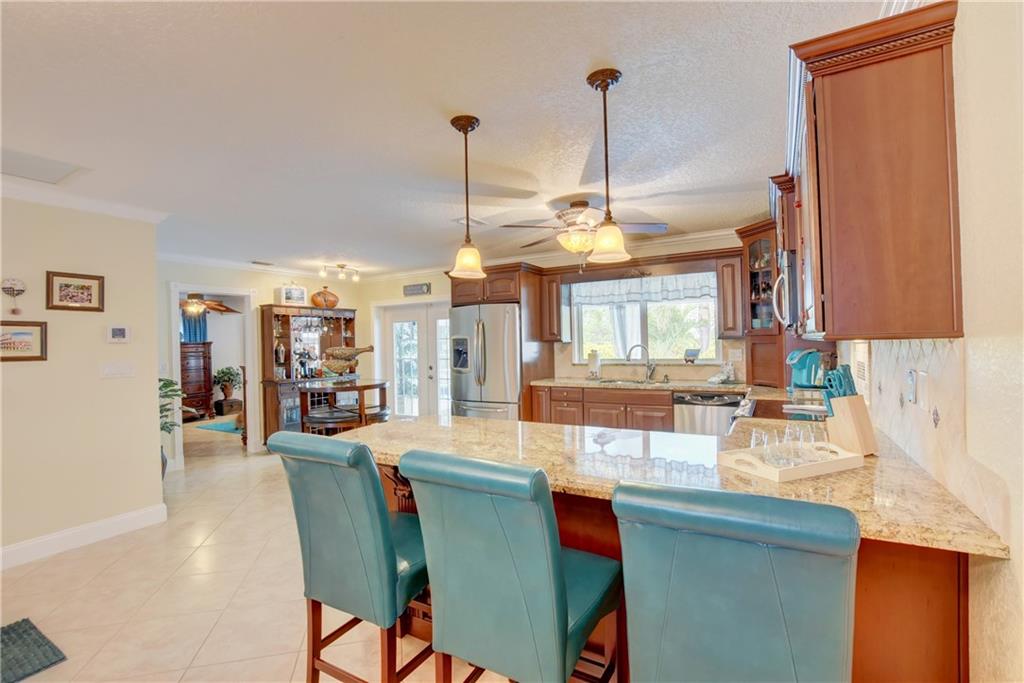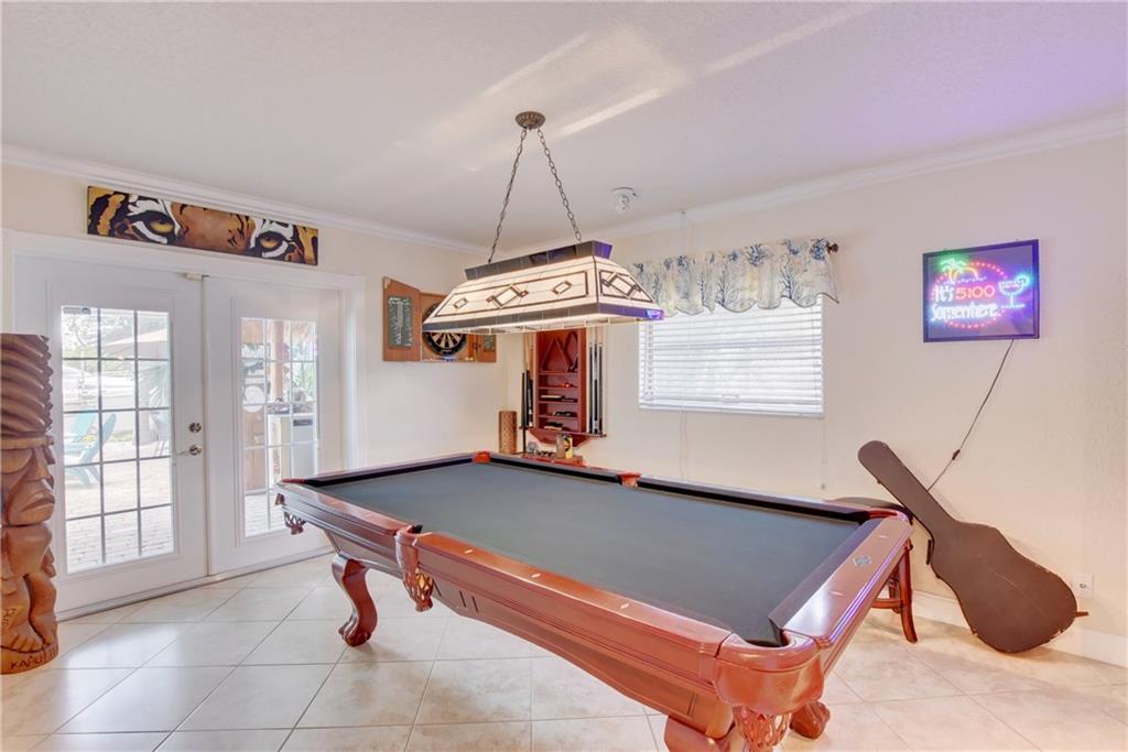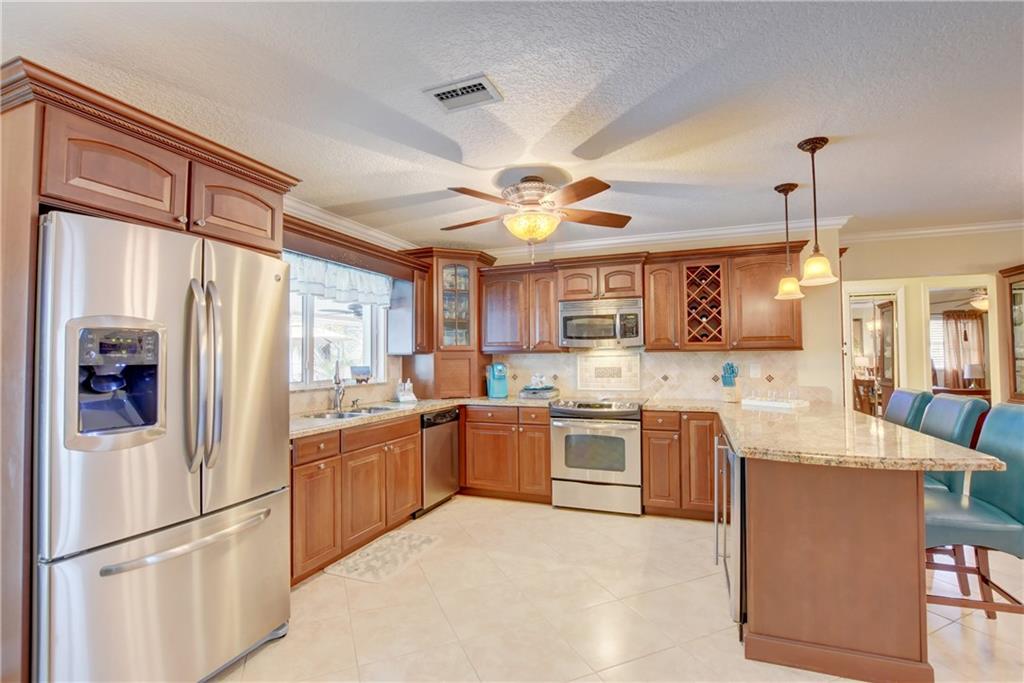 Top rated schools!! Recessed lighting the knockdown texture walls & ceiling to the crown molding & the updated fans/lights. The kitchens/baths have been completely remodeled w/granite in the kitchen & marble counters/showers in the baths. The tray ceiling in the bathroom adds even further elegance! Head out back through the dustless blind french doors & sit at your tiki bar with kitchen while friends enjoy your saltwater & heated pool w/fountain! Later, use your 15k lb boat lift & head into the ocean!