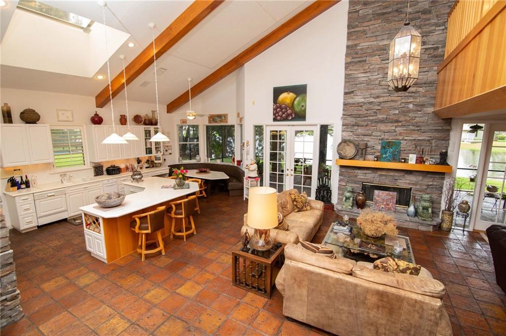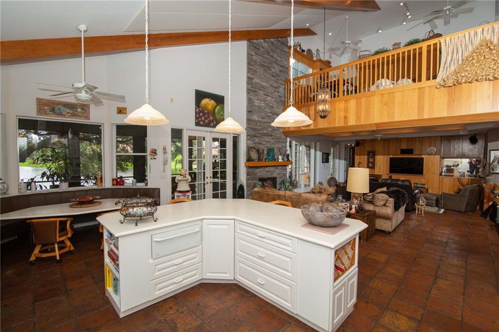 CUSTOM LAKEFRONT HOME ON BUILDERS ACRE! ENTER DOUBLE DOORS TO AN AMAZING LIVING AREA! HUGE STONE FIREPLACE & BEAMED VAULTED CLGS. CUSTOM KITCHEN W/ BUILT-IN BRKFST NOOK, GAS COOKTOP, DOUBLE OVENS, HUGE ISLAND, ELEVATOR TO LOFT AREA & FABULOUS MASTER STE & BATH W/SHOWER & JACUZZI TUB, SITTING ROOM & MORNING BREAKFAST BAR, BALCONY OVERLOOKS LAKE, HUGE OFFICE W/WET BAR OR 3RD BEDROOM, OUTDOOR SCREENED PATIO W/A BUILT-IN BBQ SUMMER KITCHEN, ROLL DOWN SHUTTERS, AUTO ON GENERATOR & NEW ROOF. A MUST SEE!!