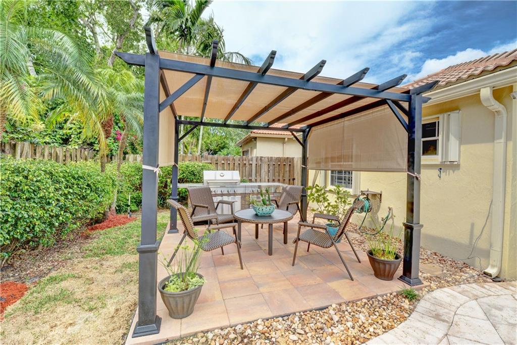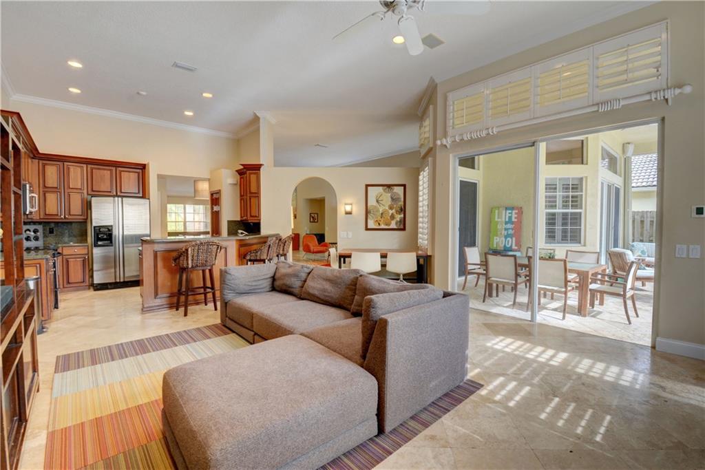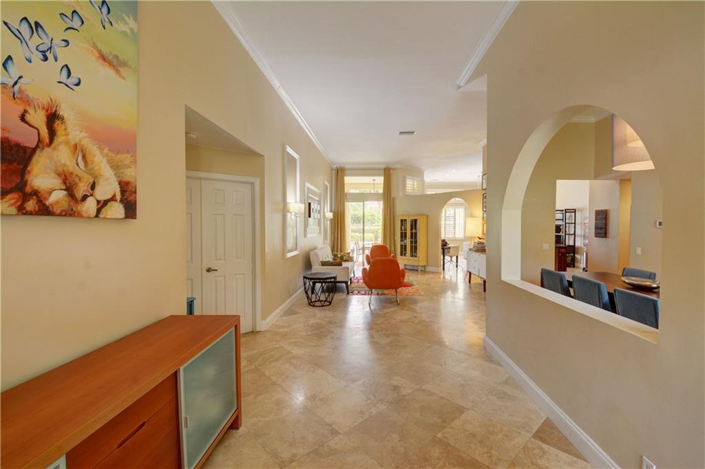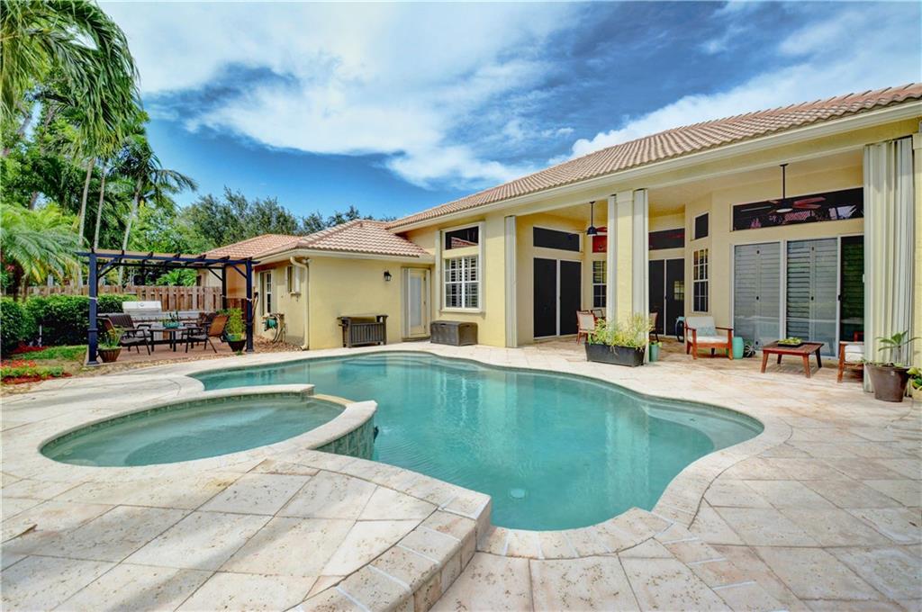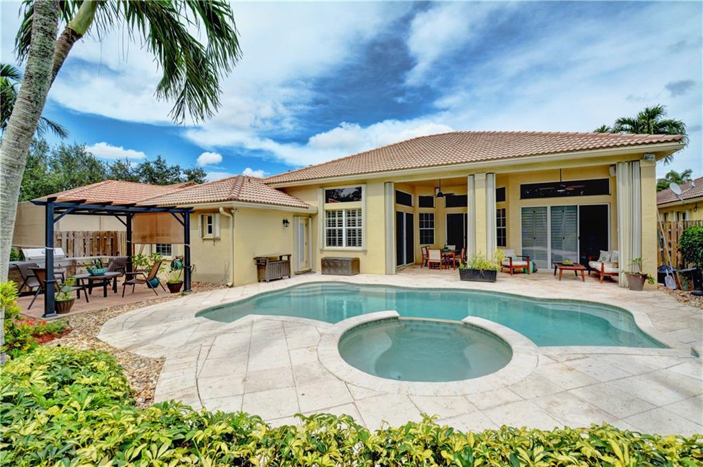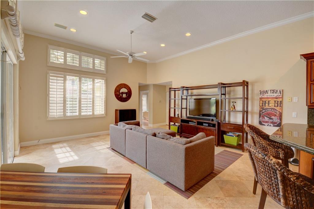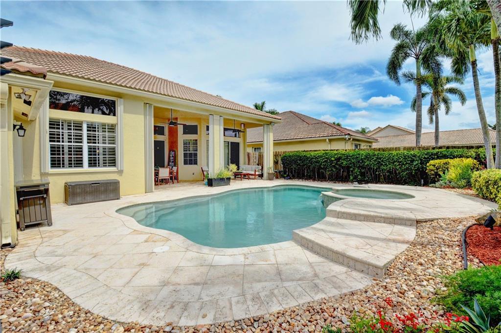 Welcome Home! Totally updated with marble floors, wood like tile floors in bedrooms, Kitchen/bathrooms completely updated & upgraded.Kitchen offering newer appliances 42" cabinets and pull outs. Bathrooms with Toto toilets, new piping. Crown moldings, Plantation shutters, California closet built-ins, Roof replaced in 2006, fully wired for surround sound, 2-year new insulated hurricane code garage door, and accordion shutters. Very open and bright floor plan.