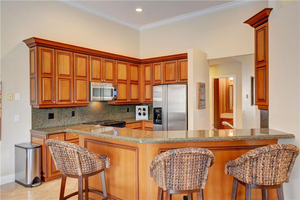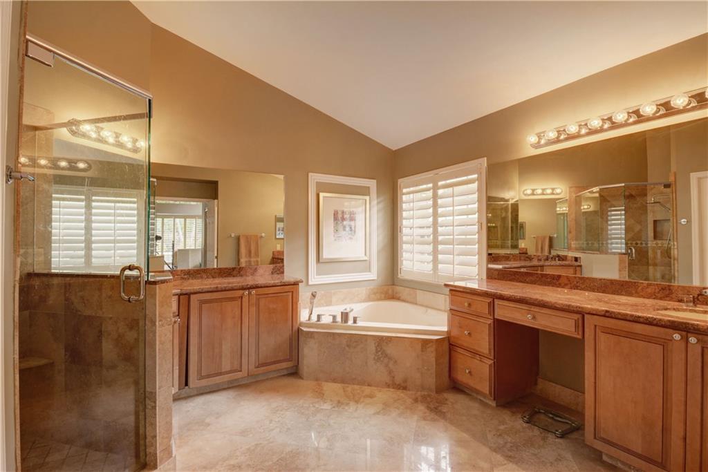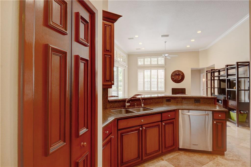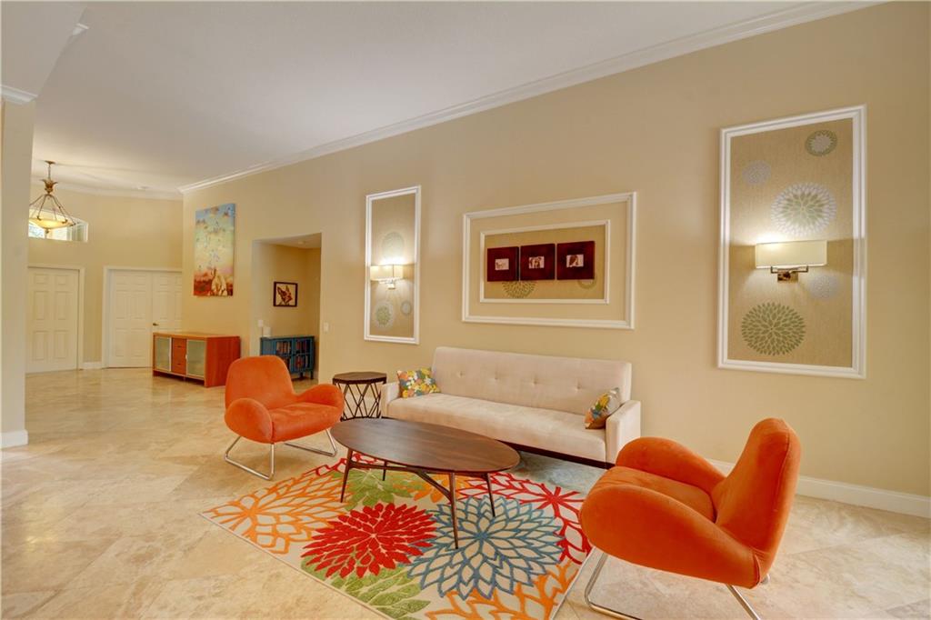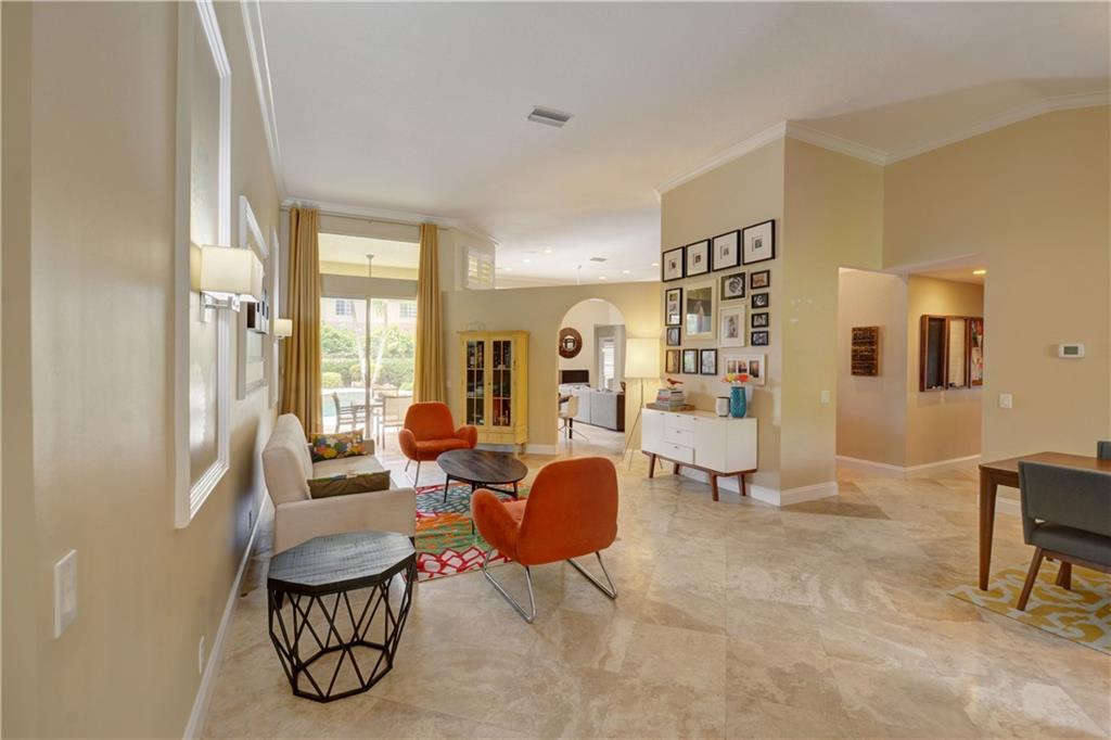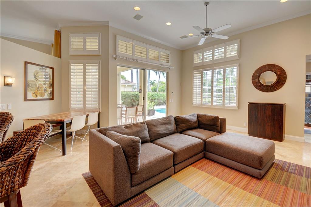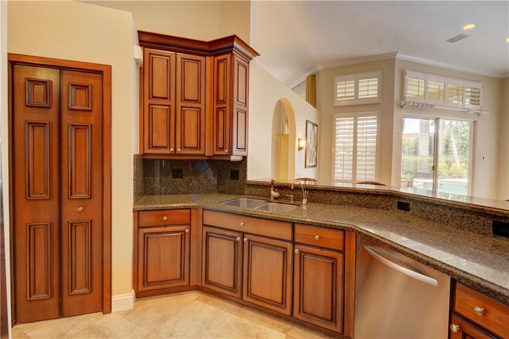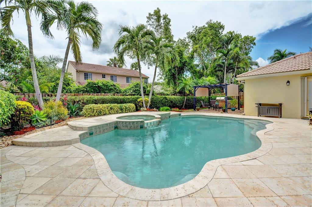 Welcome Home! Totally updated with marble floors, wood like tile floors in bedrooms, Kitchen/bathrooms completely updated & upgraded.Kitchen offering newer appliances 42" cabinets and pull outs. Bathrooms with Toto toilets, new piping. Crown moldings, Plantation shutters, California closet built-ins, Roof replaced in 2006, fully wired for surround sound, 2-year new insulated hurricane code garage door, and accordion shutters. Very open and bright floor plan.