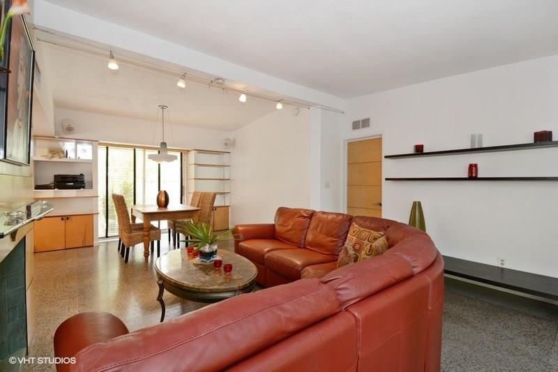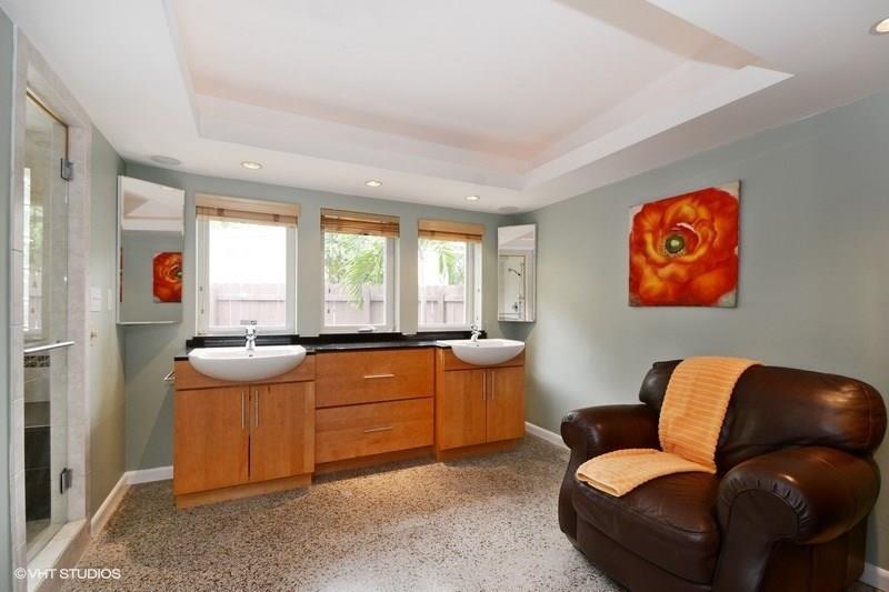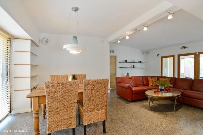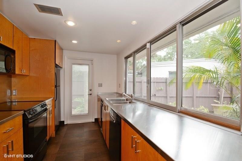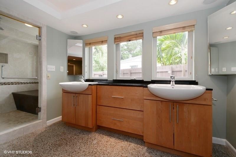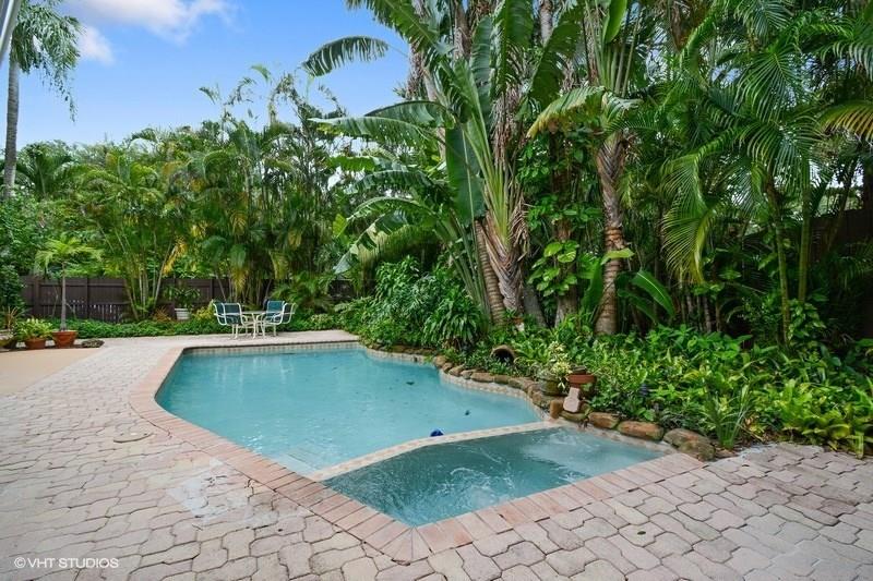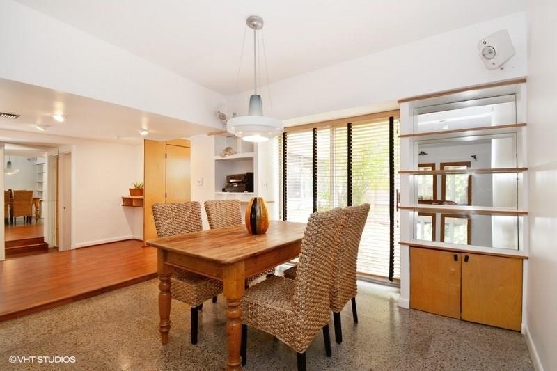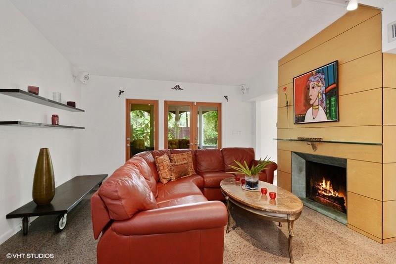 Located on a quiet residential street in heart of sought-after Shady Banks, this ultra-cool pool home shows great with many tasteful updates. Spacious master suite with walk-in steam shower, double vanities and separate water closet with bidet. Restored and pristine terrazzo flooring, romantic wood burning fireplace, nicely updated kitchen with stainless counters. Completely fenced and totally private tropical pool area and gardens. 3rd bedroom is currently being used as a den/media room.