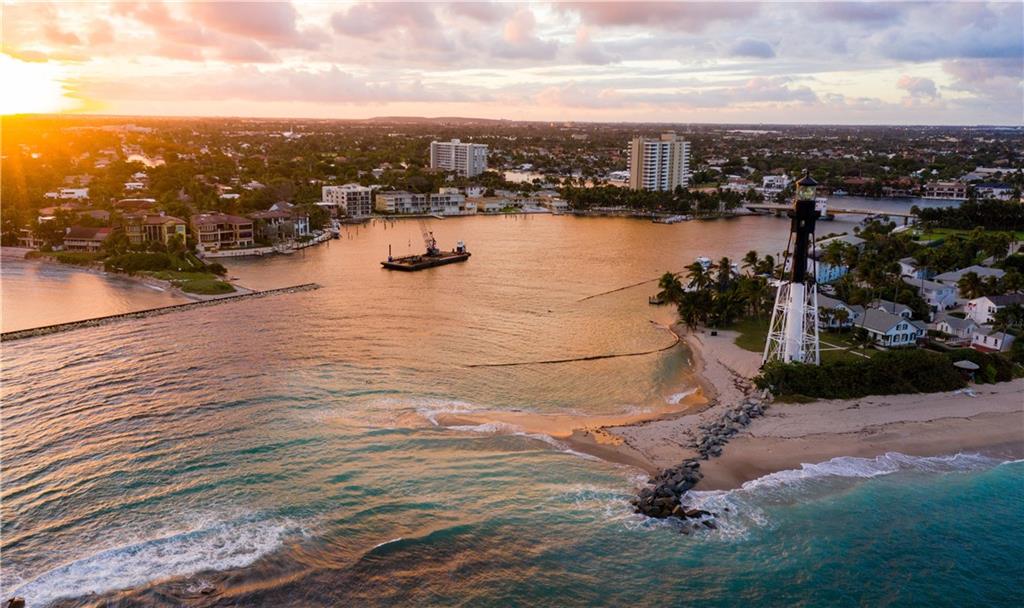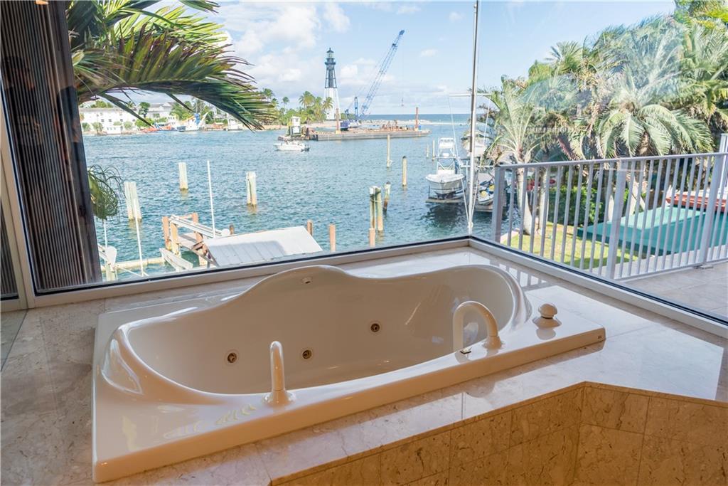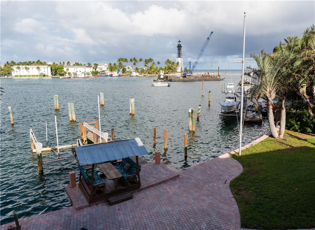 The Haven on Hillsboro Inlet. 95' of DOCKAGE w/ DIRECT OCEAN ACCESS. NO BRIDGES. Space for 80 ft yacht & a separate boat lift. Private Beach Access steps from your front door. Two-story estate located on oversized lot, surrounded by Banyan trees, lush landscaping that overlooks historic Hillsboro Lighthouse. Open floor plan with formal dining area, sunken living room, fireplace & gourmet kitchen with granite countertops. Bonus Bedroom downstairs! Upstairs master suite includes luxurious master bath with his and her walk-in closets, sitting area, personal gym and private balcony. Large outdoor area with resort style heated pool, tin-roof Tiki Bar & hot tub. 1 of 6 homes on the inlet and only one with northeastern views. Less than quarter mile from the exclusive Hillsboro Mile.