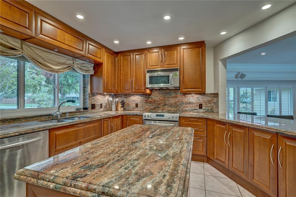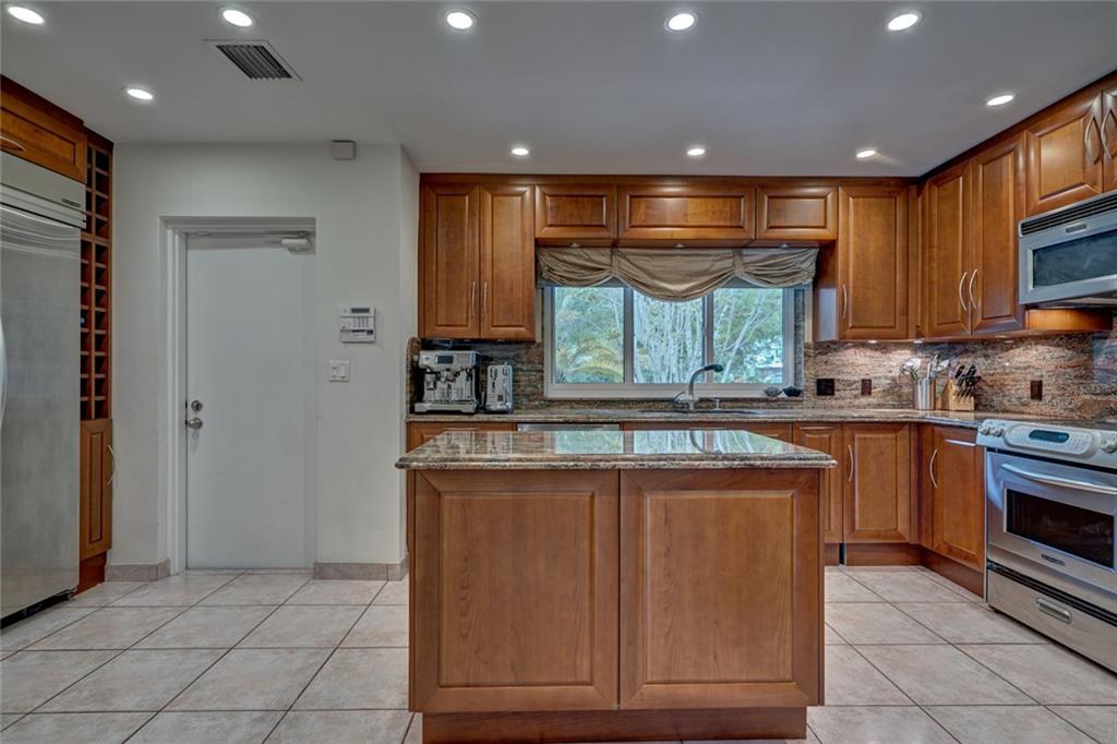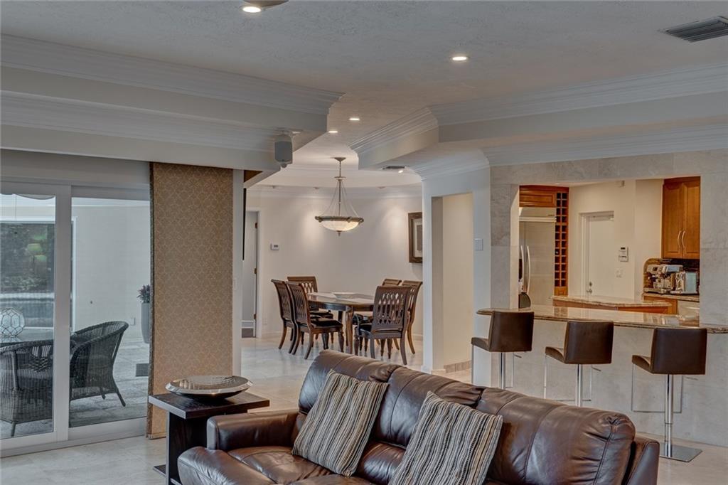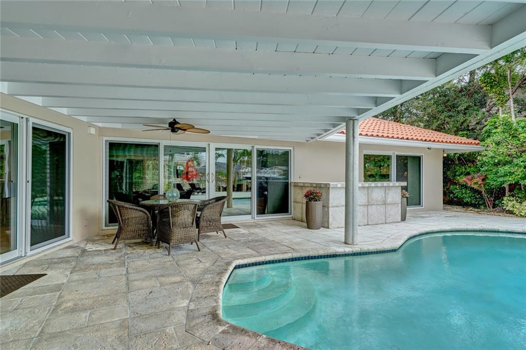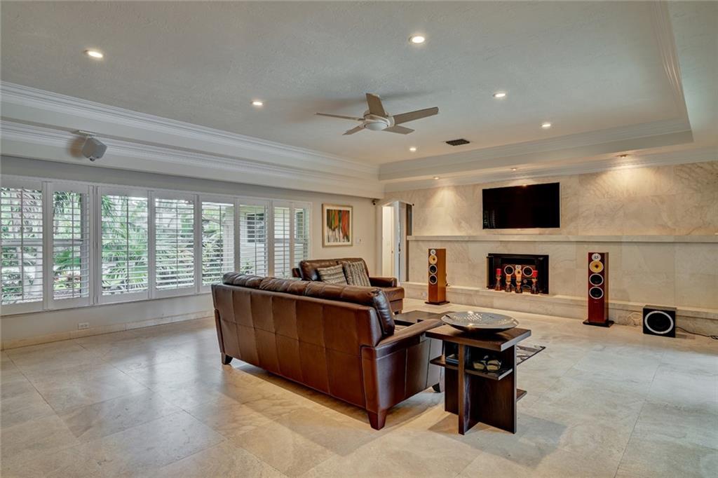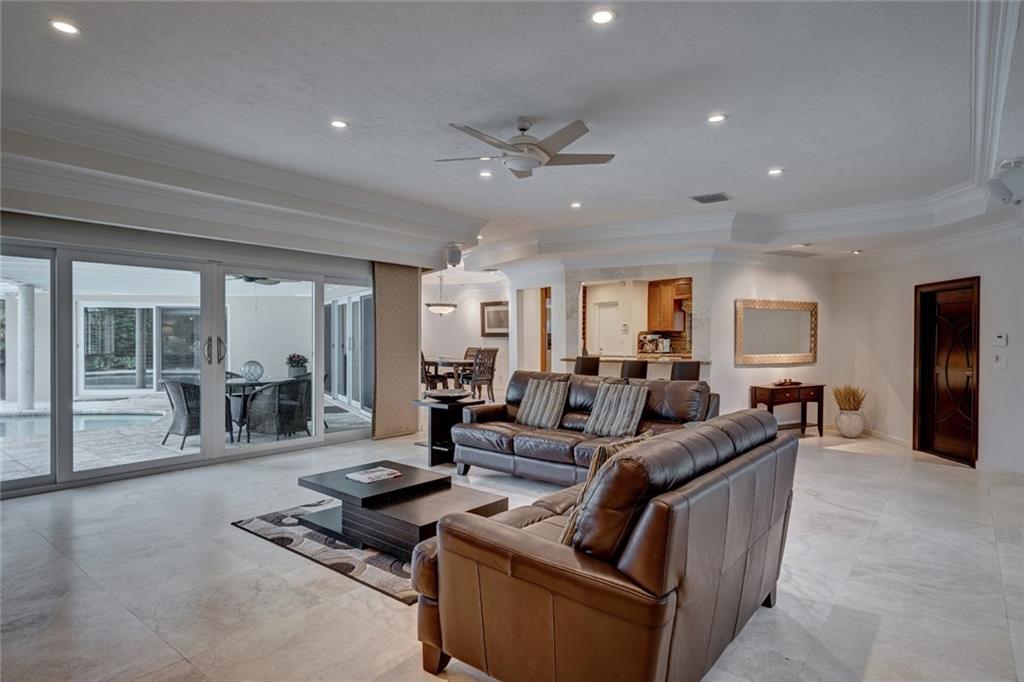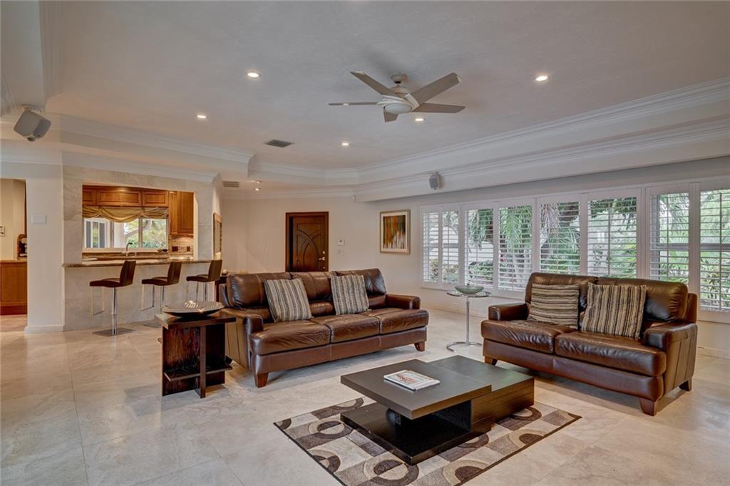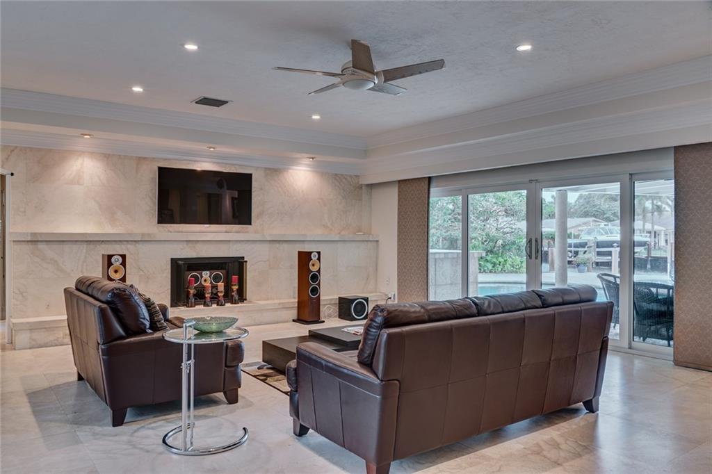 Lush Landscaping Frames this Coral Ridge Beauty, w/Grand Circular Driveway & Great Curb Appeal. Upon Entering you'll be Delighted at the Immediate Open Living Space/ Neutral Marble flrs thru-out. Large Mstr/Bdrm. Sculpted Ceiling-Double Crown Molding. Gorgeous Remodeled Bathrooms, Open Kitchen w/ Island & Tons of Space. A Very Sleek Home w/Wood Fireplace, Impact Windows & Doors, Walk-in Closets, 40' dock w/50 amp Power at Dock Mast/Electric & Water. Heated Salt Water Pool! Rafter Roof Ceiling (Not Truss).