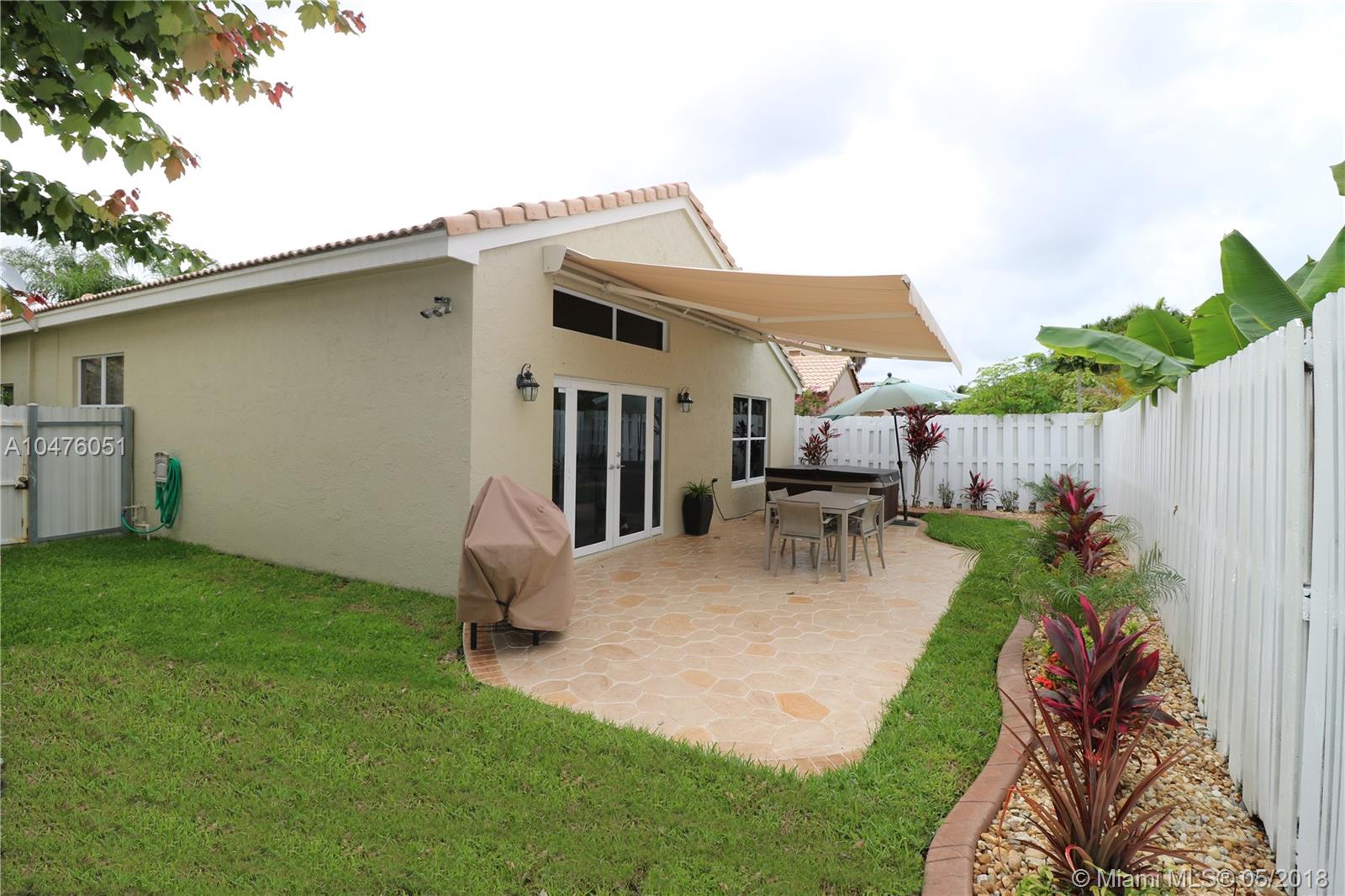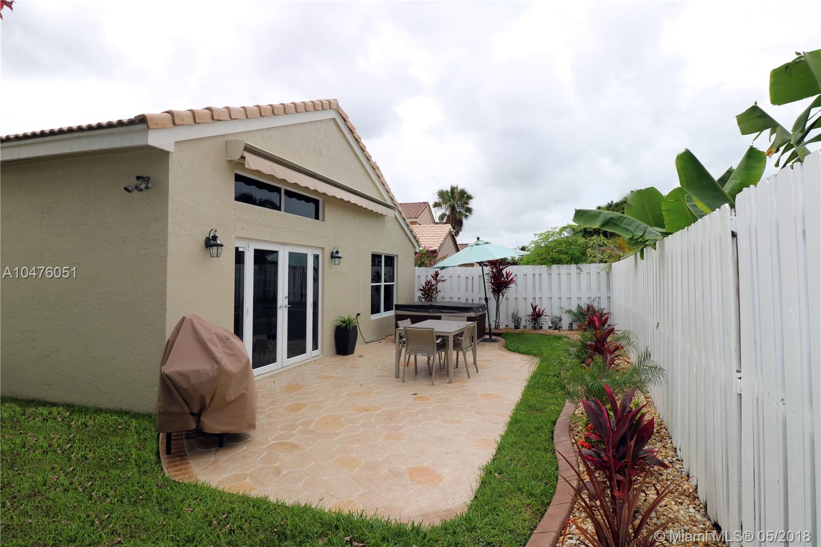 Impeccable and beautifully updated single family house in western Miramar. Neutral colors, Updated kitchen with natural stone counter tops white cabinetry stainless steel appliances and french door. Four bedrooms and split floor plan, Updated bathrooms, Extended fenced patio with electric awning and hot tub. Two car garage. Community pool and playground. Close to shopping areas, hospital, schools, parks and more.
