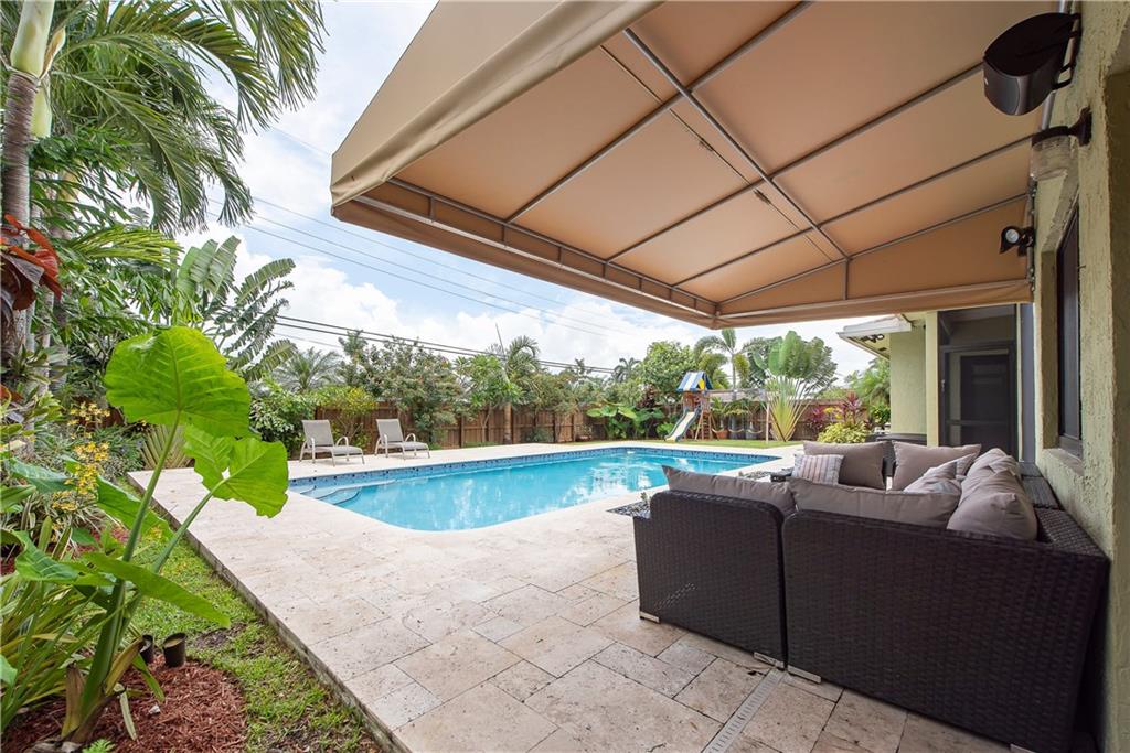 A perfect split bedroom floor plan with the kitchen in the center facing the pool and oversized fenced yard. Newer hurricane impact windows and doors, a breezy screened room, family room, master bedroom sitting room and lots of closets. Easy parking in the wavered circular drive and double garage. Also stainless appliances, granite countertops, formal living and dining rooms all on one of the prettiest streets in Imperial Points. A beautifully landscaped yard surrounds the family sized pool.