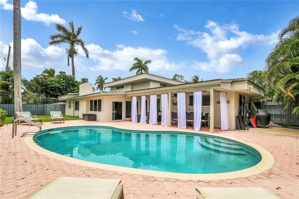 Spacious Coral Ridge 5BR/3BA (3480 sq ft) located in Bayview School district. Breezy covered patio, fenced yard, pool/pavers+child fence are perfect for year-round FL entertaining. Upstairs master bedroom features two walk-in closets, large master bath with dual sinks, adjacent to office/nursery. Sun-filled family room with fireplace. Impact windows throughout. Open concept dining/living with ground level, triple split bedrooms. One mile from Ft Lauderdale Beach, minutes from downtown Fort Lauderdale.