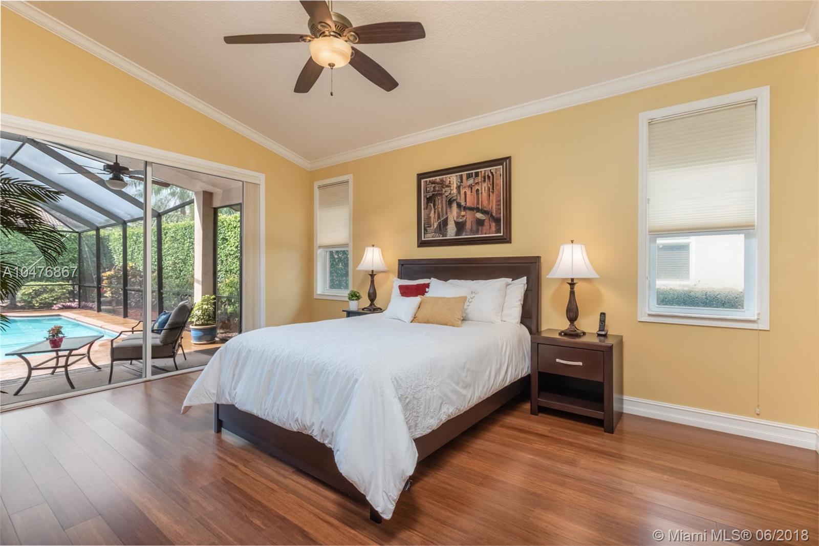 Tucked in the boutique community of Oakbrook at Weston Hills Country. Enjoy your Brand New roof, 2017. Oversized screened pool with cool deck and newer diamond bright. Freshly painted interior in todays colors. Renovated kitchen with upgraded appliances and granite countertops. Three renovated baths. 24x24 tile in living areas. Hardwood floors in master bedroom with volume ceilings. Full accordions, ficus hedged for ensured privacy. 5 spacious bedrooms with 3 full bath including cabana. Great curb appeal.