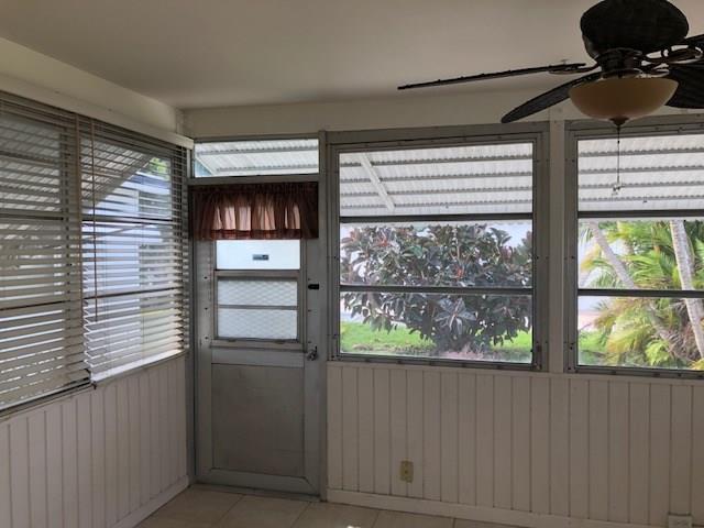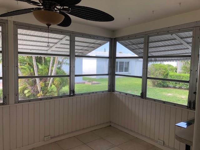 Updated Home w/ all tile floors & freshly painted. Enclosed Florida room cable ready which gives add'l living space. Pocket door from FL Rm to kitchen great for privacy. Washer/Dryer. Private back yard paved great for BBQ's. Leisureville 55+ low maintenance $195/mo includes water,sewer,lawn & complimentary golf for owners. Shuttle bus, social activities,pool&more. No land lease. Pet friendly and OK to lease. Located close to beaches,Hospital,Shops & easy access from I-95. Plenty of social activities.