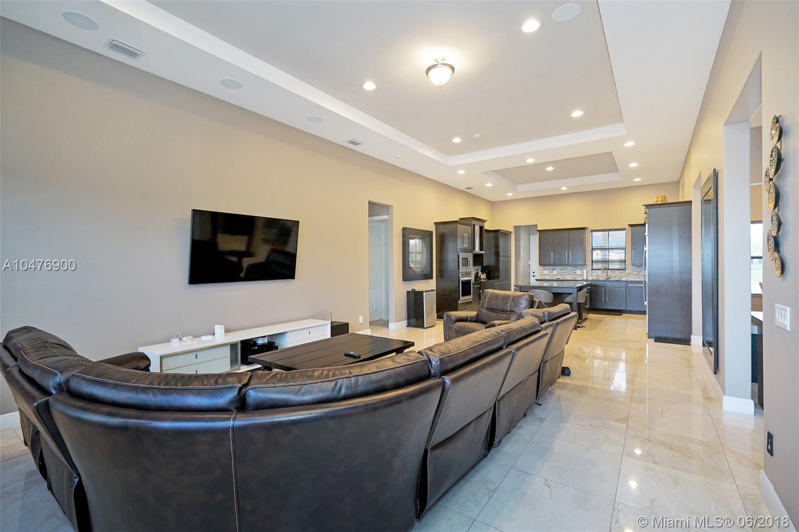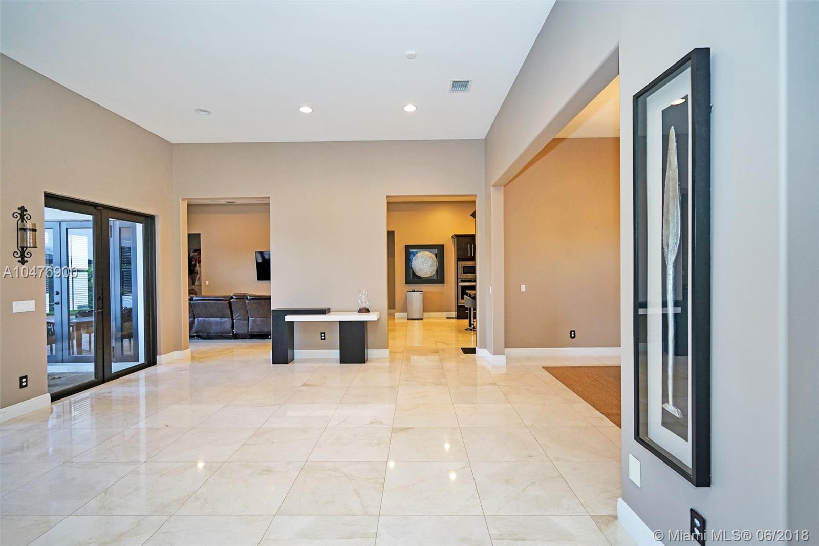 Magnificently Upgraded 1-Story home in recently built Parkside Estates. 5 Bedrooms & 4 Full Luxury Baths with glass tile, 24x24 Luxury Marble Flooring, Hi-Hat lighting everywhere, built-in Surround Speakers, Gourmet Kitchen with Granite Counters & High-end Stainless Appliances with Custom Italian Cabinetry, Deep freeze fridge, Large breakfast area, Surveillance system, Custom pool with salt water system and heater, Oversized 35,000 sq ft lot with high-end outdoor lighting decor. This outstanding estate is perfect for family and entertainment.