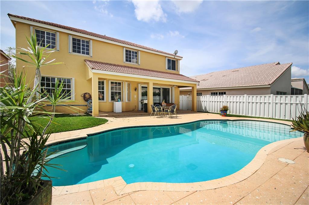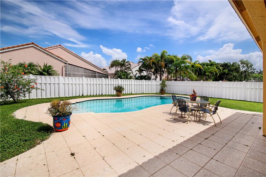 Largest and rarest Devonshire Fifty model with salt-water system pool. Freshly painted exterior. Over-sized master with sitting room/office. Kitchen and bathrooms recently renovated. Kitchen boasts granite counter tops and stainless steel appliances. All back doors have sliding plantation shutters. New AC installed last year. Washer/dryer are brand new. Enjoy living in this beautiful gated community with A+ rated schools, basketball courts, volleyball courts and playground. Close to YMCA mega-complex.