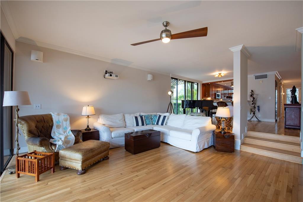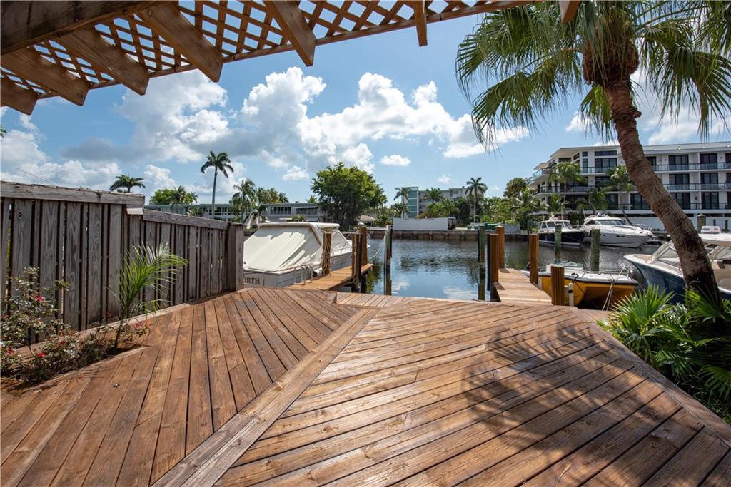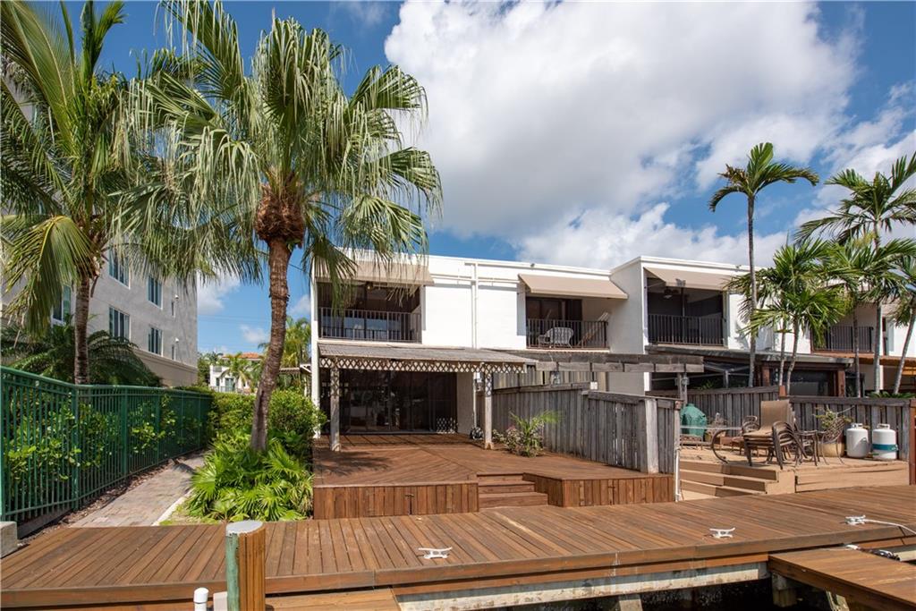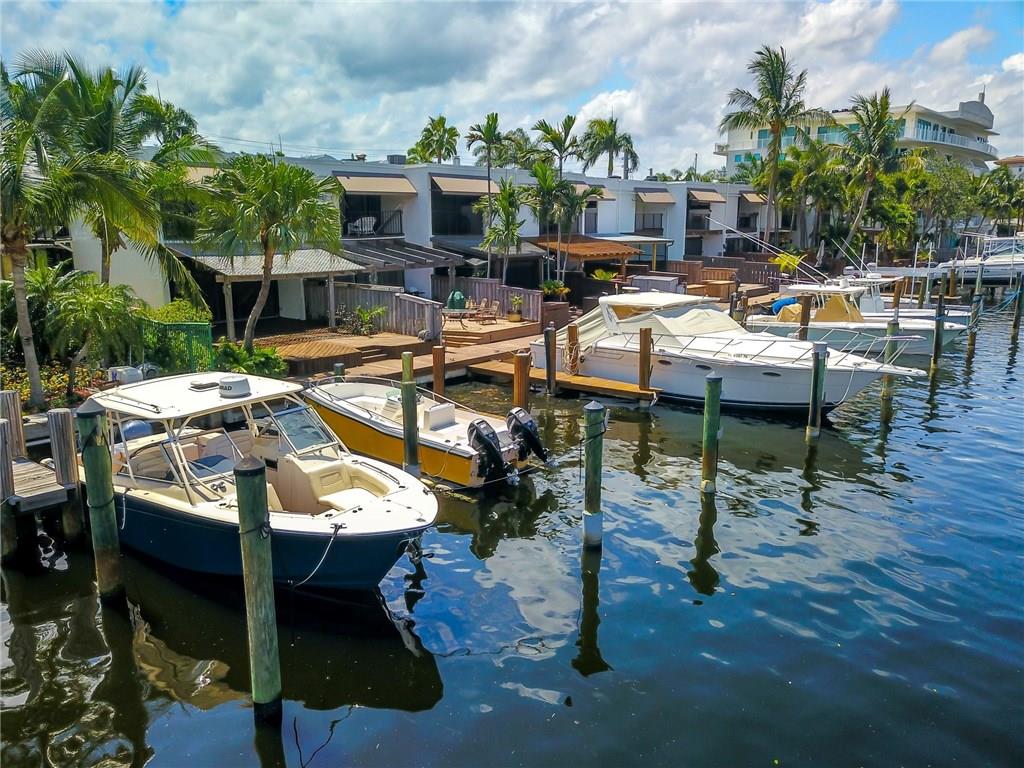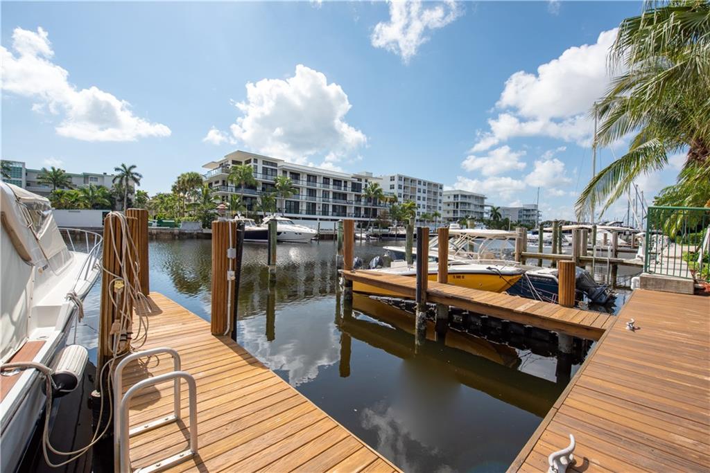 This charming end unit townhouse has an east facing wood deck for enjoying the morning sun. 2 deeded boat slips for up to 45' boat and no fixed bridges to the ocean! Eat in kitchen with stainless appliances opens to a private front patio. 2 built in beverage/wine coolers. Upstairs bedrooms feature en suite bathrooms and walk in closets. Second floor loft/den makes a great office, or additional room for guests. Laundry room has full size washer and dryer. Parking for 4 cars. Pets welcome!