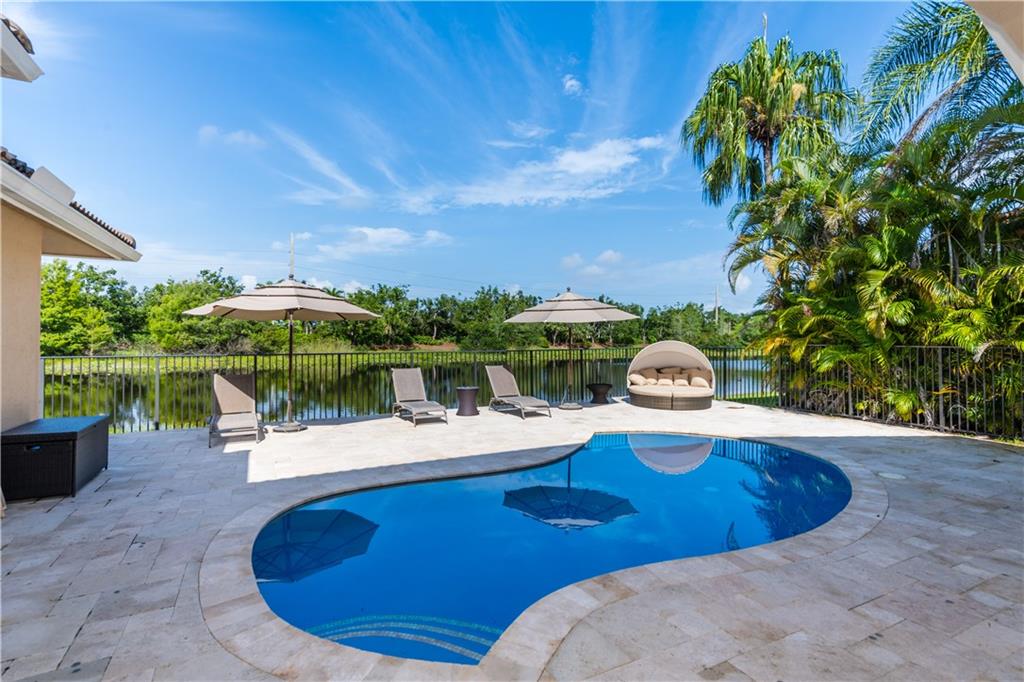 5/3 pool & lake home with 3 car garage in immaculate condition located in Weston Hills CC on quiet street. New Travertine Pool decking with water views & complete privacy. Pool resurfaced to ocean blue which is real beautiful. Kitchen is open and has granite counter tops and stainless steel appliances. High Ceilings. Light & Bright. Crown Molding. Built out closets. Plantation Shutters in Master Bedroom overlooking pool & Lake. Accordion Hurricane Shutters. A+schools. Guard Gated. Walk to park.