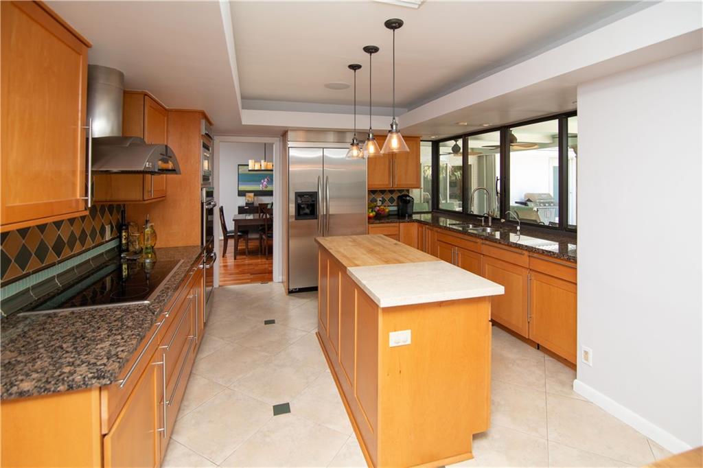 This exceptional pool home is located on a great street in Emerald Hills. It offers an over-sized 3 bed/ 2 bath, + bonus room. The updated interior includes a full master bedroom and zen bathroom renovation, with closet system, home office nook, impact windows, and pool view. A chef's eat-in kitchen with counter depth fridge, double ovens, butcher block and marble islands. It also comes with many available smart home features. Outside is a professionally landscaped yard, mature queen palms, and lanai