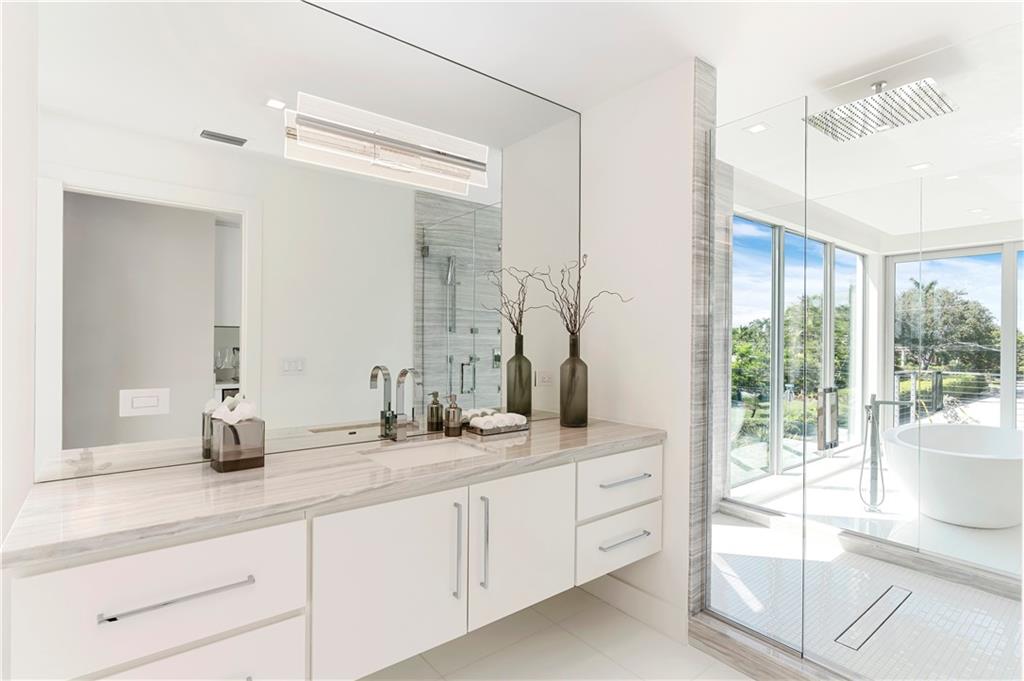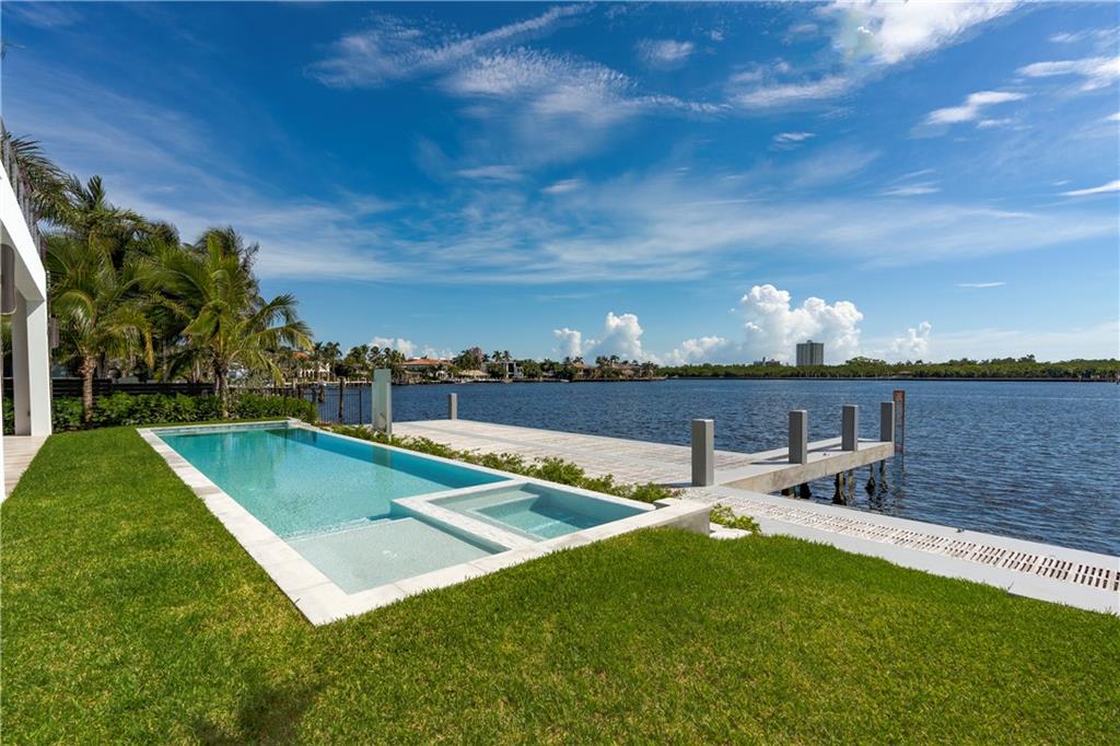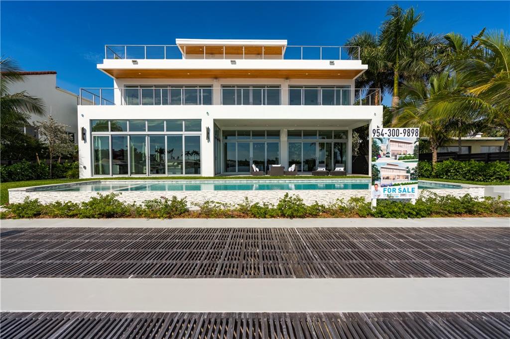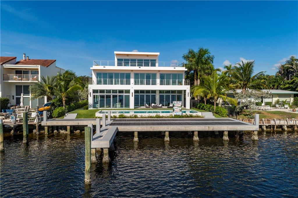 Brand New Modern Estate! Spectacular contemporary home w/+/- 82' of wide water frontage on the Sunrise Bay. Features include chef's kitchen, gas cooking,third level home theater, elevator and wine coolers. Master suite with dual bathrooms, a huge walk-in closet and fabulous views. Expansive balconies & heated pool. 3 bay garage with high ceilings can accommodate 6 cars. New 80' seawall & 1200 sq.ft. Ipe dock w/pilings. Finger dock w/ability to dock multiple boats stern-to. Breathtaking sunrise views over Birch State Park!