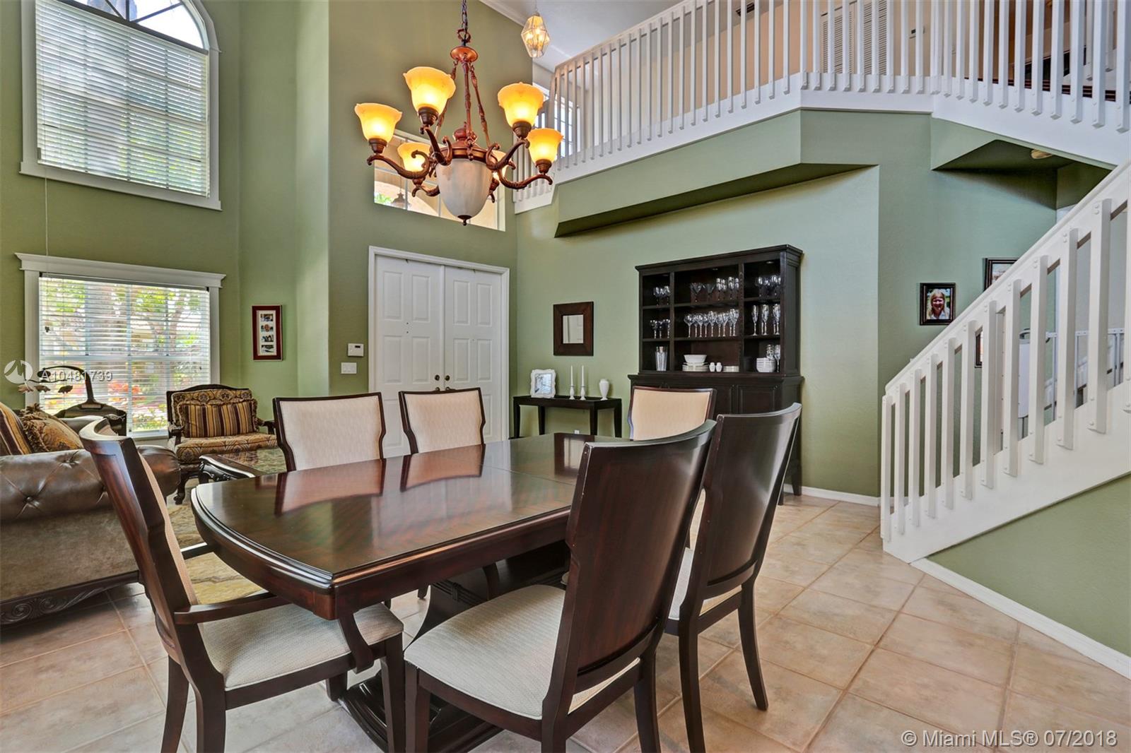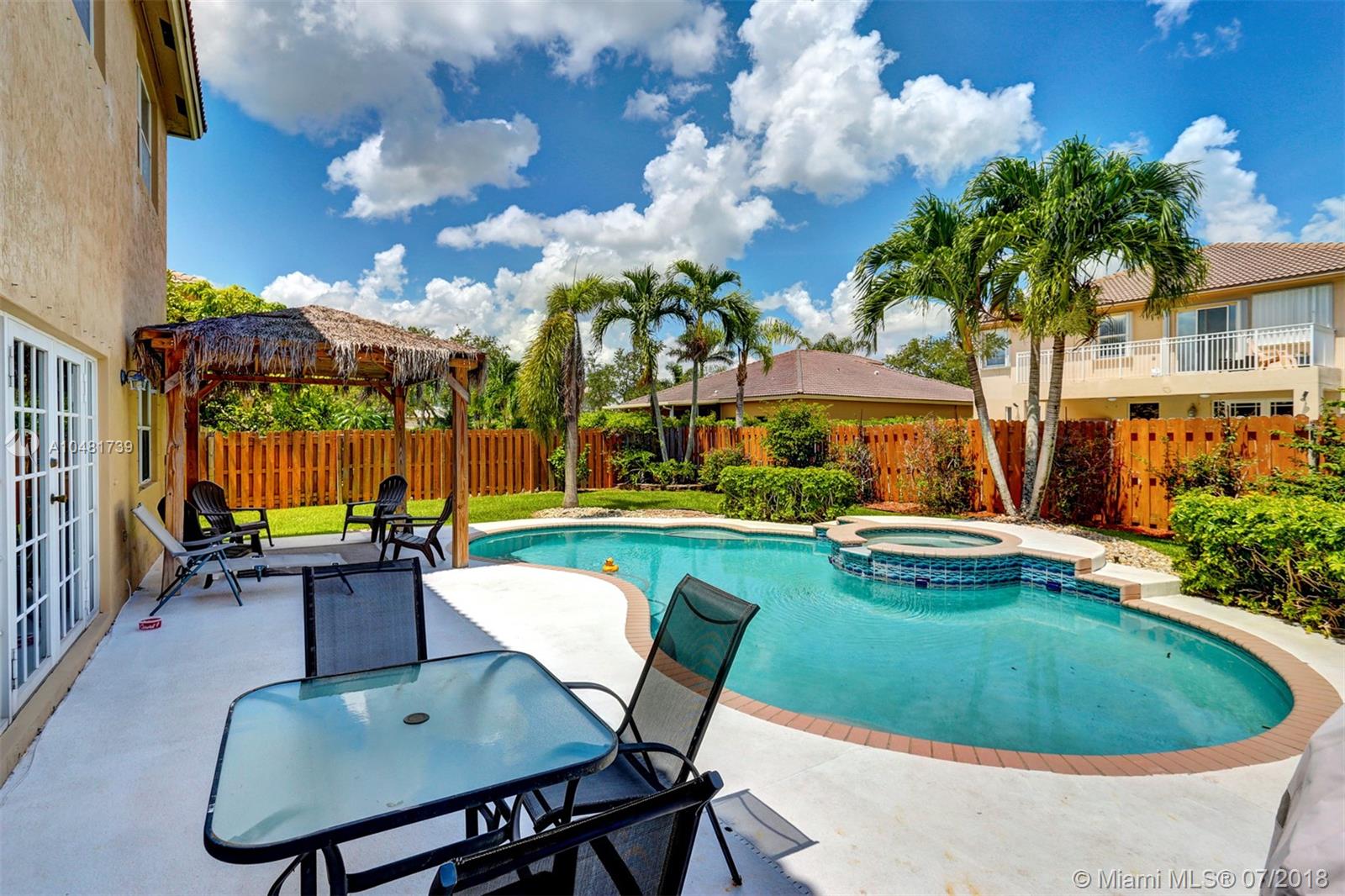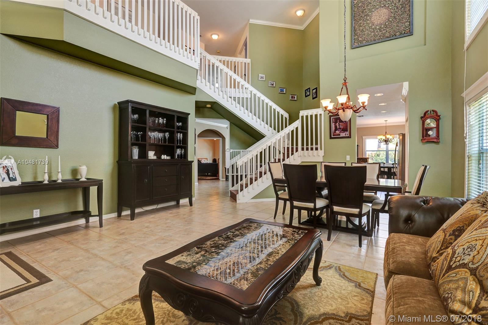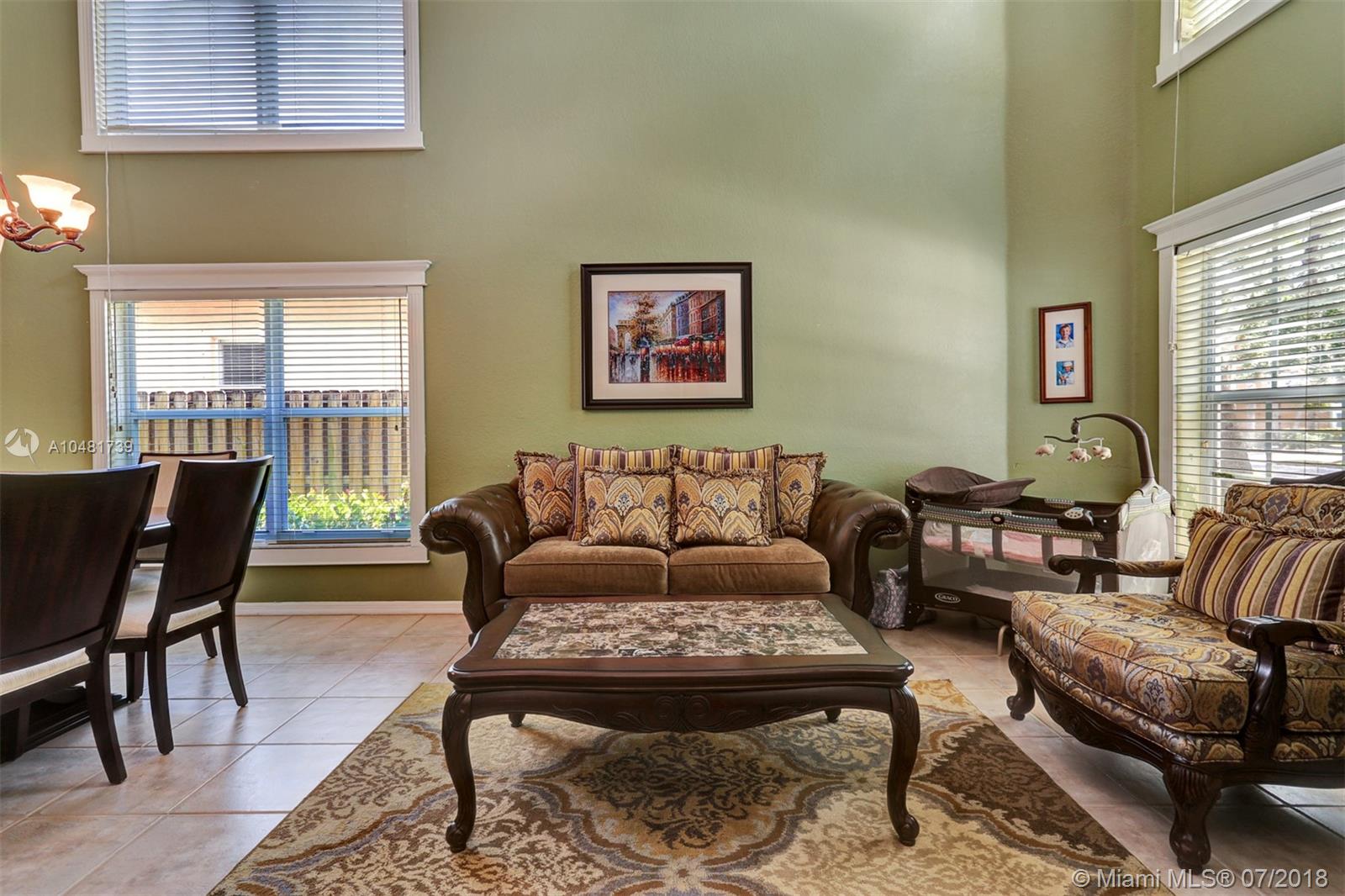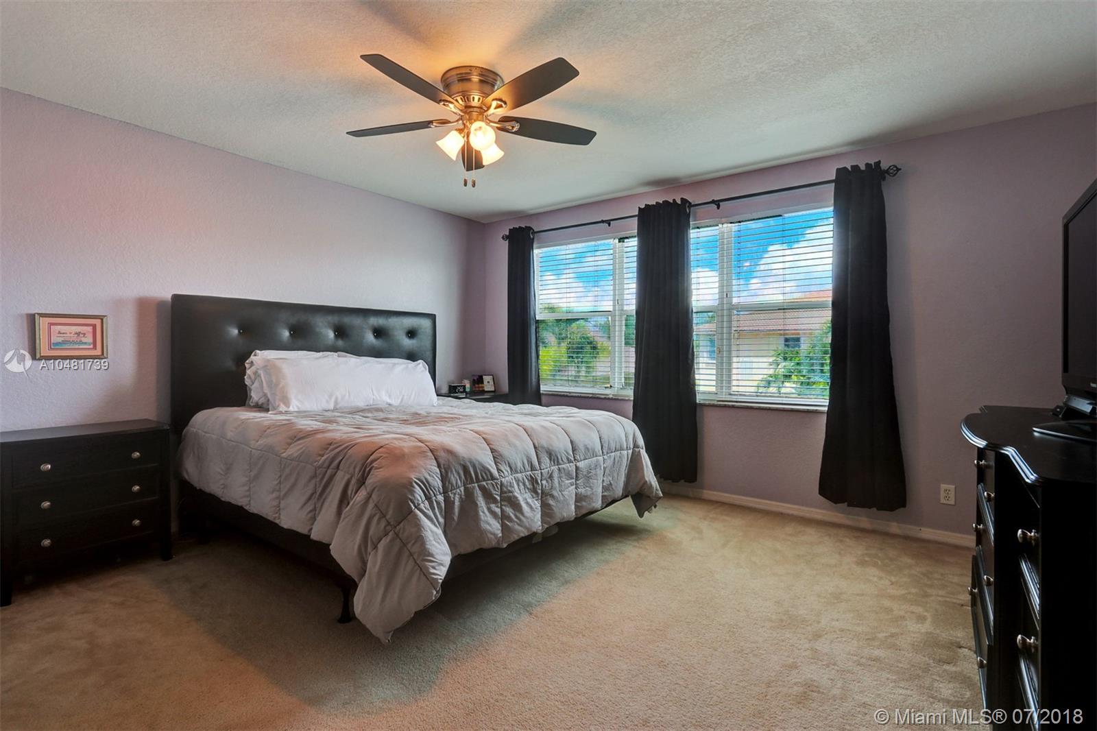 Two story 3100' sq. with 5BR/3BA plus loft. Fully fenced yard and patio plus pool and spa. Master bedroom upstairs, one bedroom downstairs. Ceramic flooring on the social areas, carpeted bedrooms. Granite kitchen counters, white wooden cabinets and stainless steel appliances. Maintenance includes basic cable, security, landscaping and irrigation, guarded gate entry, community pool and gym, common areas,