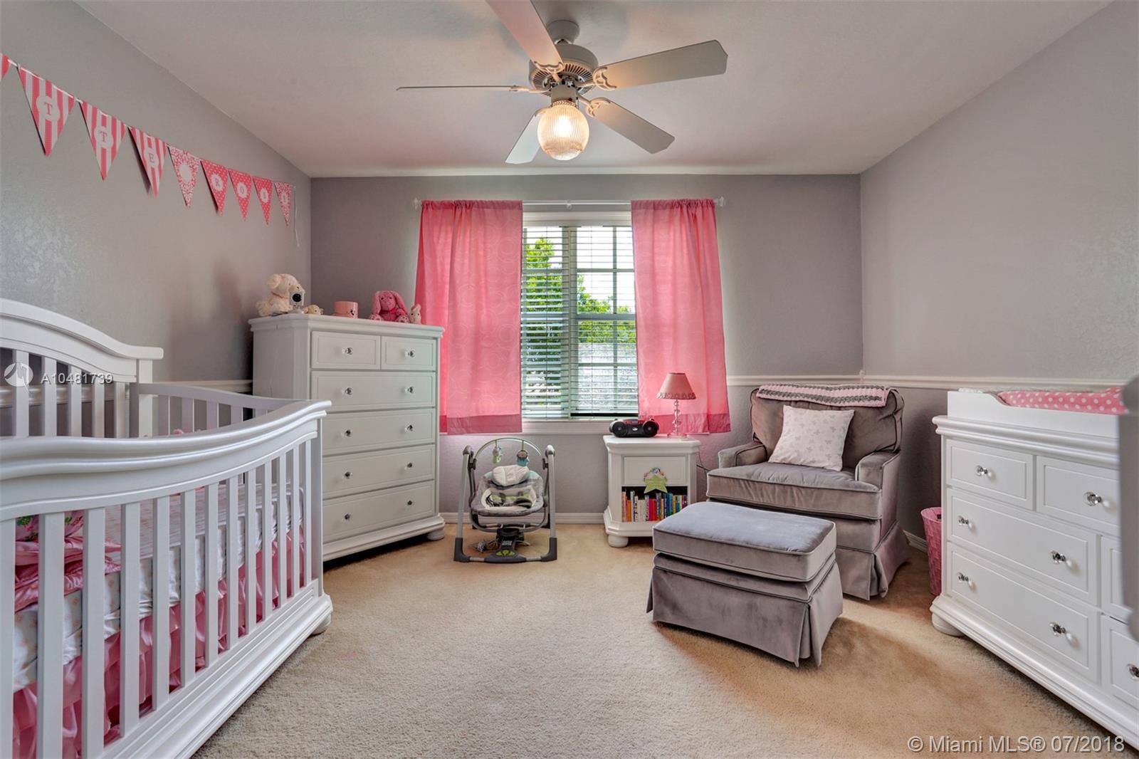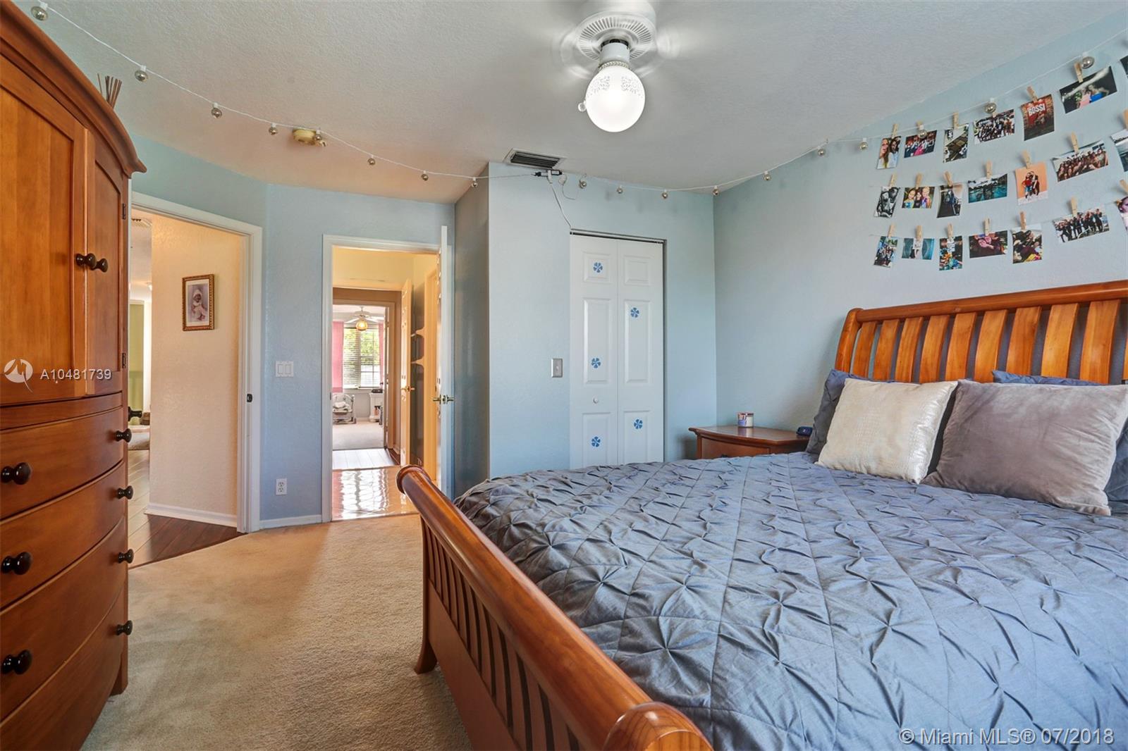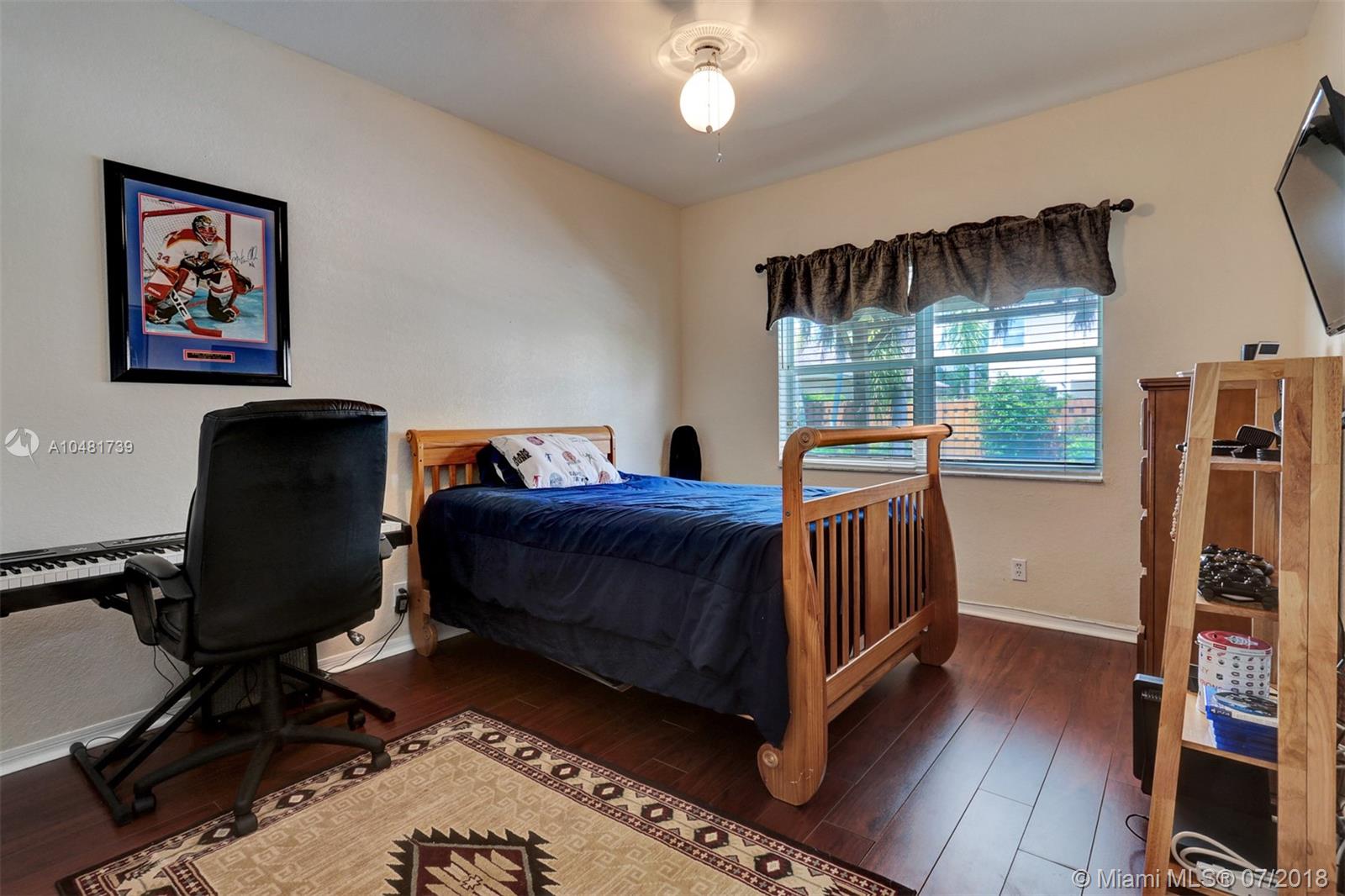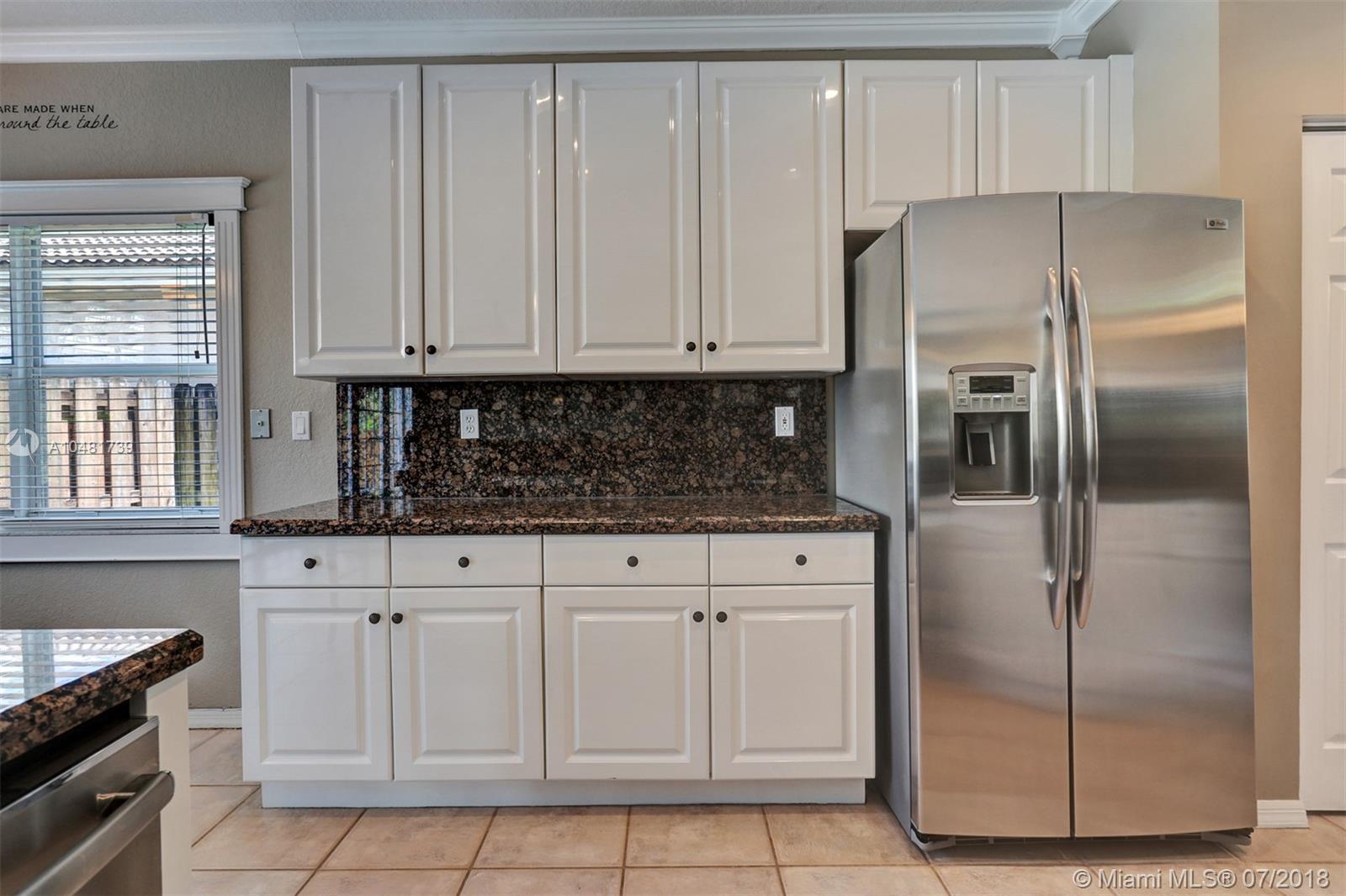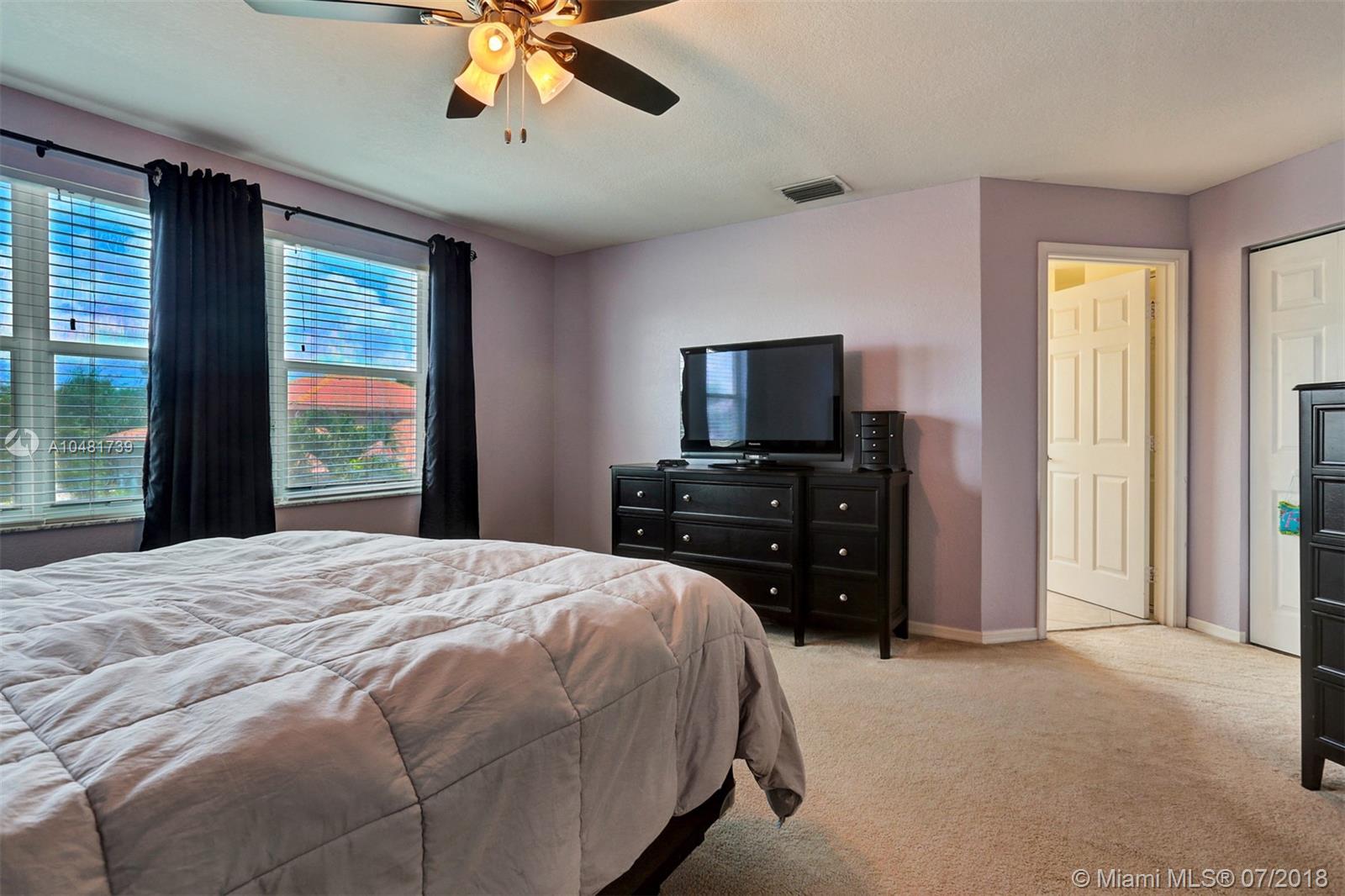Two story 3100' sq. with 5BR/3BA plus loft. Fully fenced yard and patio plus pool and spa. Master bedroom upstairs, one bedroom downstairs. Ceramic flooring on the social areas, carpeted bedrooms. Granite kitchen counters, white wooden cabinets and stainless steel appliances. Maintenance includes basic cable, security, landscaping and irrigation, guarded gate entry, community pool and gym, common areas,