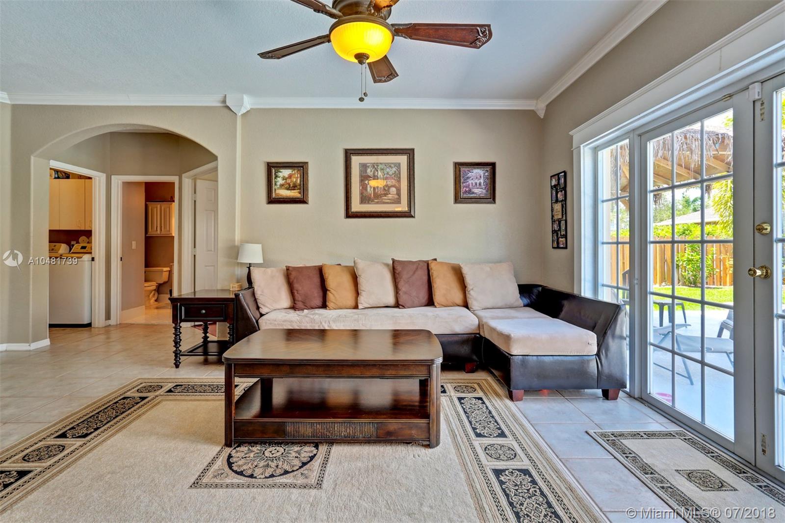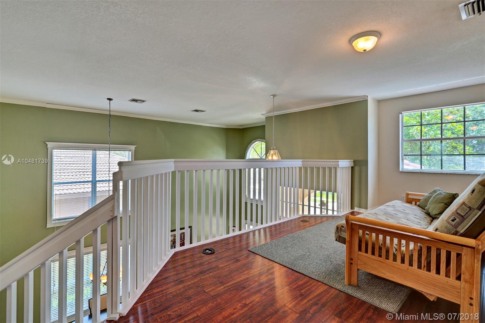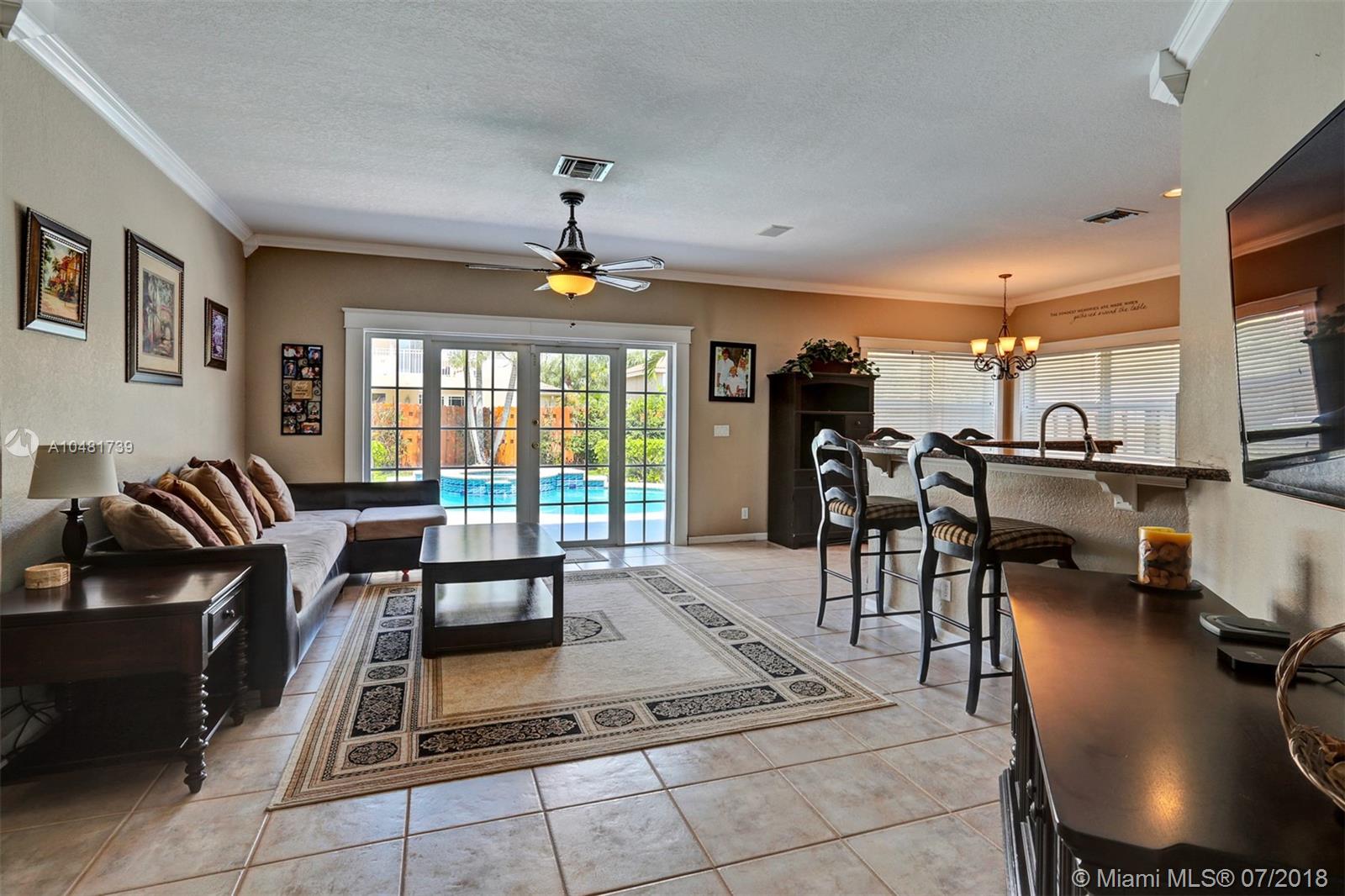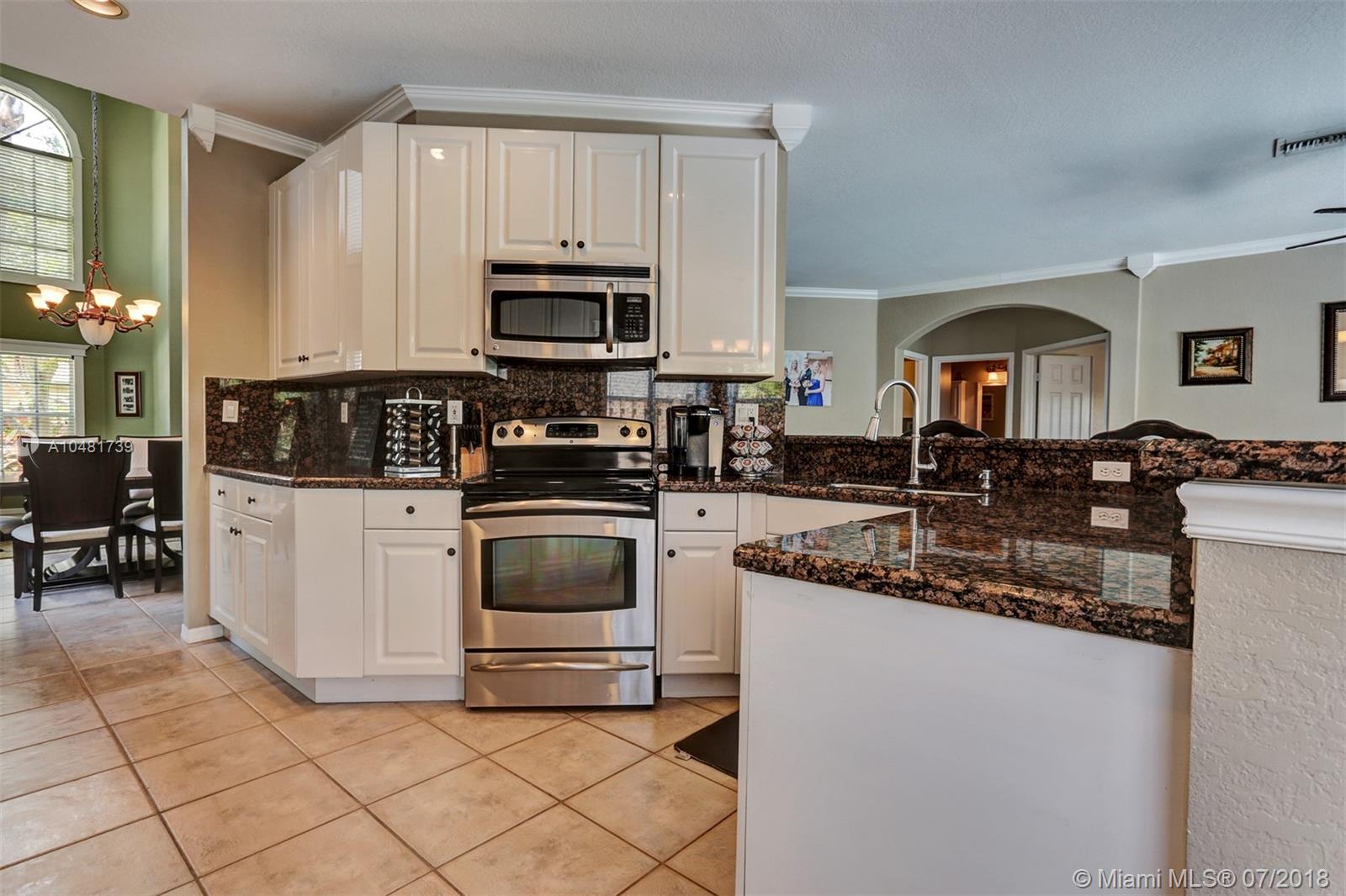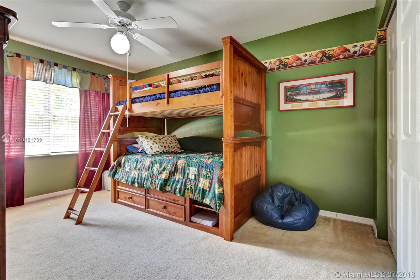 Two story 3100' sq. with 5BR/3BA plus loft. Fully fenced yard and patio plus pool and spa. Master bedroom upstairs, one bedroom downstairs. Ceramic flooring on the social areas, carpeted bedrooms. Granite kitchen counters, white wooden cabinets and stainless steel appliances. Maintenance includes basic cable, security, landscaping and irrigation, guarded gate entry, community pool and gym, common areas,
