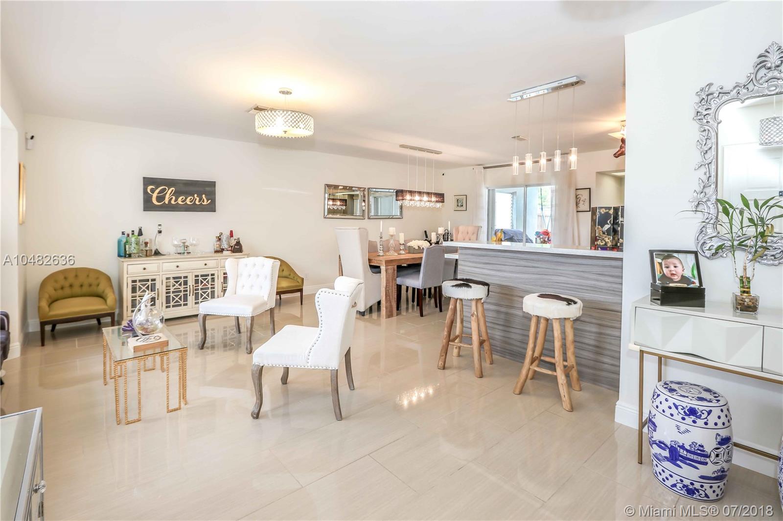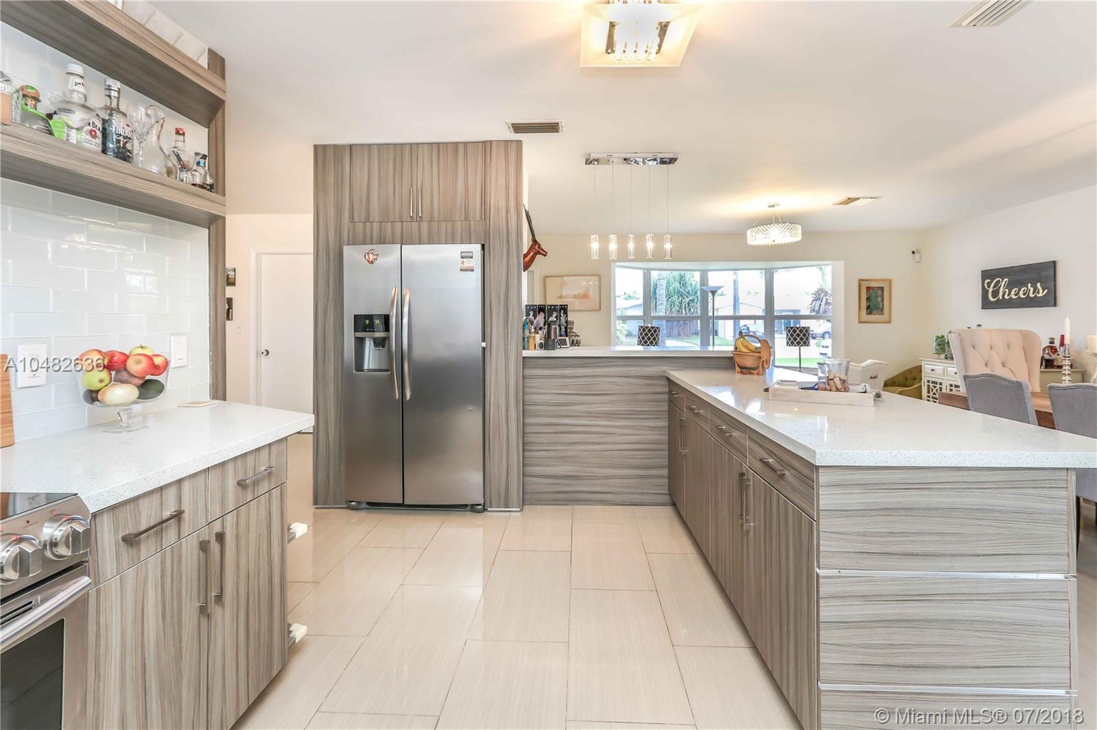 Great fully updated house with a fabulous open floor plan. Recently renovated Center Kitchen with pass through to pool, Quartz Counter Tops, SS appliances, Glass Subway Tile Backsplash and New sink/faucets in 2018. Porcelain Tile floors throughout house. Living Room & Formal Dining Room Plus a Family Room. Bathrooms have been updated. Master bath has jet shower, dual sinks, and glass shower doors. A/C new in 2015. Impact Windows added in 2016. Spacious Bedrooms all with walk in closets & new closet systems installed in 2016. PVC pipes. Tankless water heater. Interior and exterior of house painted in 2018. Two car garage. Fenced backyard and covered patio pool home. This house is a must see!