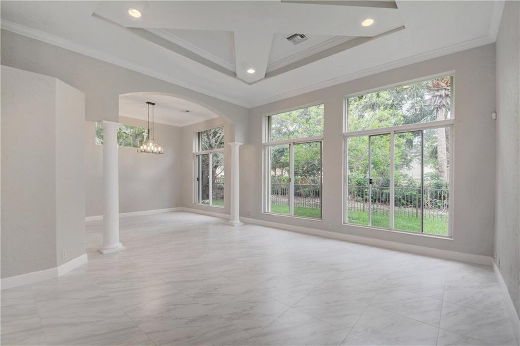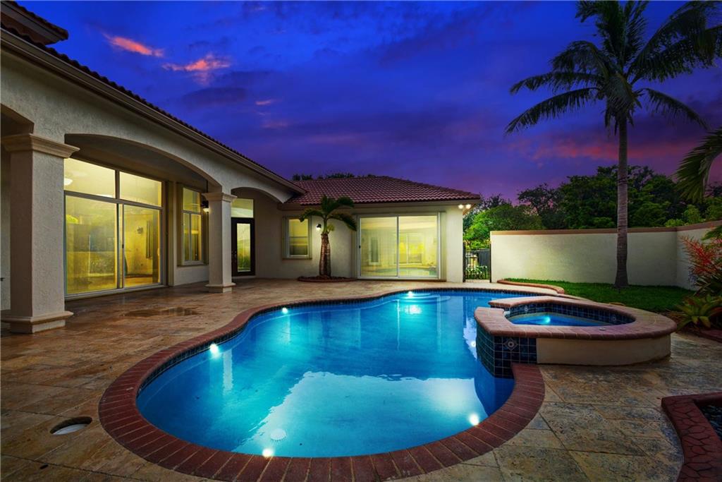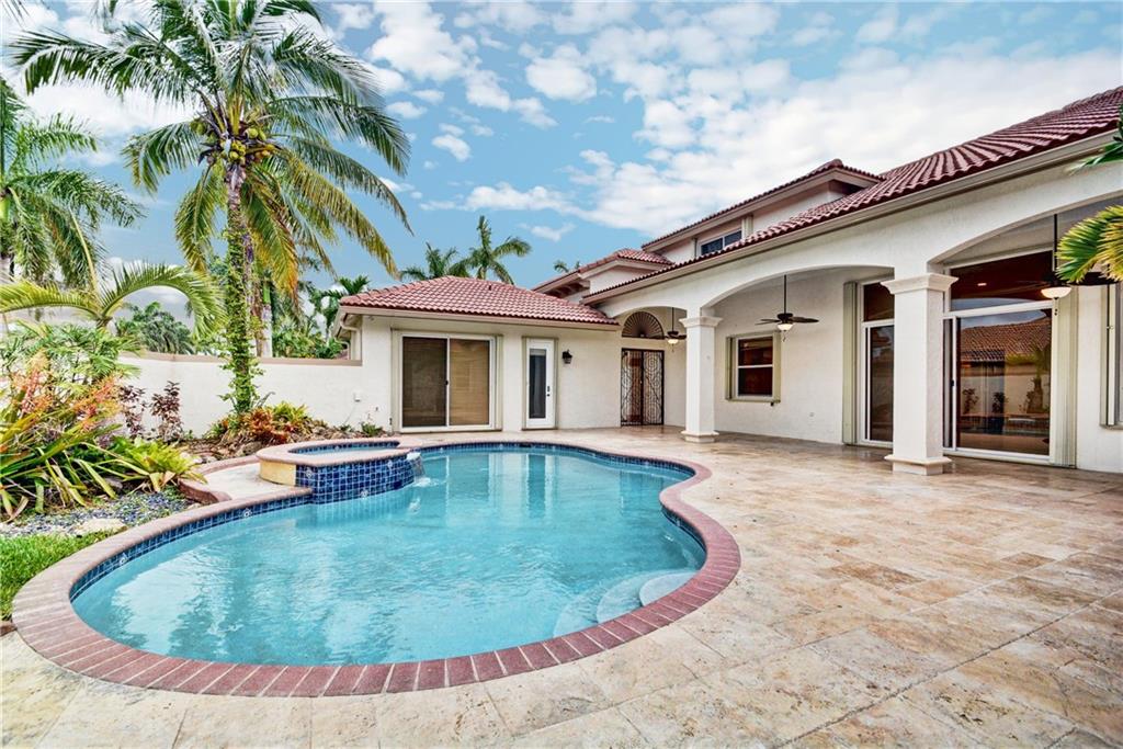 Beautifully upgraded Casa Venice ! This courtyard estate is one of the most sought-after models for its unique design! As you walk through the main doors you are welcomed by an open courtyard, which features a pool & covered patio, ideal setting for outdoor entertaining. 6 bedrooms, including separate guest quarters, & 4 bathrooms provide ample space for a big family lifestyle. New flooring ! New A/C systems! Designer kitchen ! Upgraded baths ! Accordion shutters ! Enjoy the South Florida lifestyle !