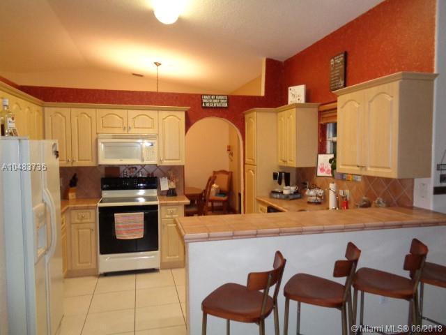 Spacious one owner home located on a cul-de-sac near Miami Lakes on an oversized lot. Great for entertaining family and friends with plenty of parking. Circular stamped driveway with access to the back yard for a boat or trailer. 3 large bedrooms, 2.5 bathrooms, 1 car garage, vaulted ceilings and ceramic tile floors throughout. Upgraded kitchen with tile countertops and backsplash. Appliances in great condition including a glass top range. Spacious family room opening to a covered patio with travertine stone pavers. New central AC, new washer. Great area with great schools, friendly neighbors. Royal Oaks Park is a short bike ride away. 24-hour notice for a private showing! By appointment only!. All offers are contigented to sellers find their new home.
