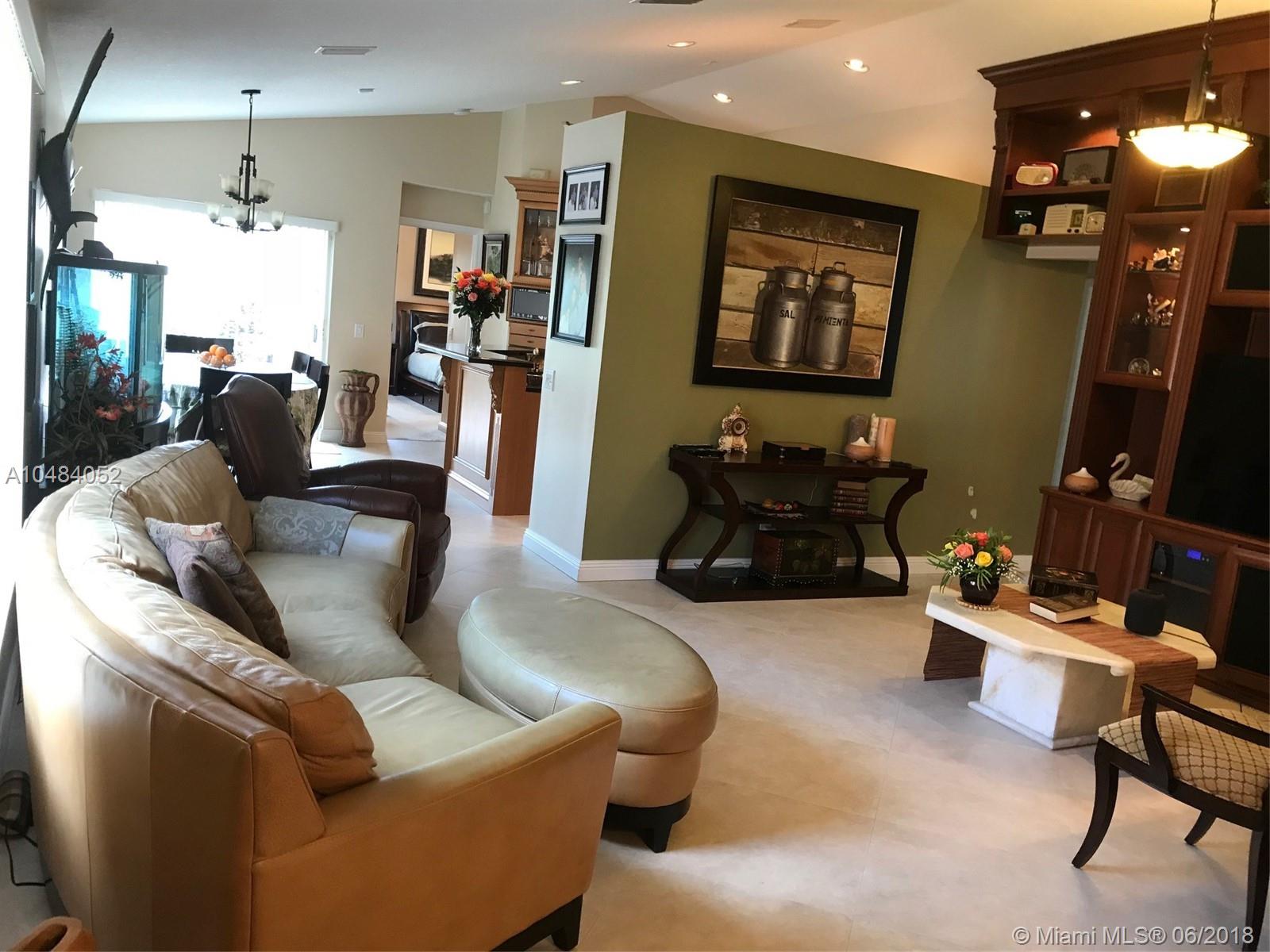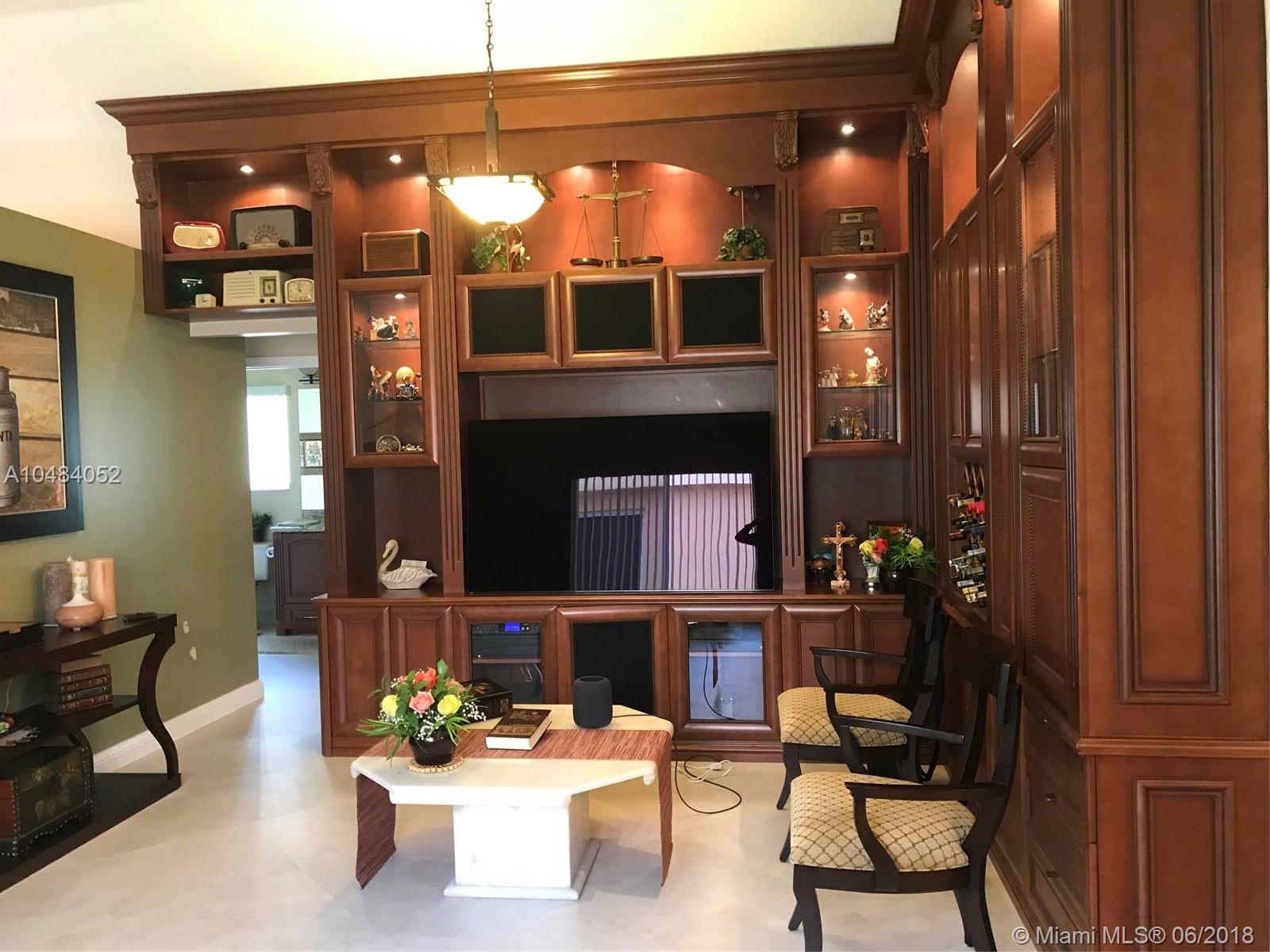 Beautiful 3-Bedroom Lakefront Home in Desirable Gated Community, The Ridges at Weston. Home has been updated throughout!! Over $70k in improvements. Beautifully landscaped front and backyard. It features custom cabinetry in living room, bedrooms and bathrooms. It has an open floor plan with volume ceilings. Kitchen updated with custom lights, wood cabinets, granite countertops, high-end appliances, microwave/convection oven and TV. Custom-built lighted wall unit in living room. Custom-built office with Murphy Bed. Upgraded Light Fixtures. 24' x 24' tile floors in living areas and carpet in bedrooms. Prewired for ceiling fans in bedrooms & living room. Living room prewired for surround sound. Attic Ladder & built-in floor over garage. Hurricane Shutters. Wind Mitigation Inspected & Approved