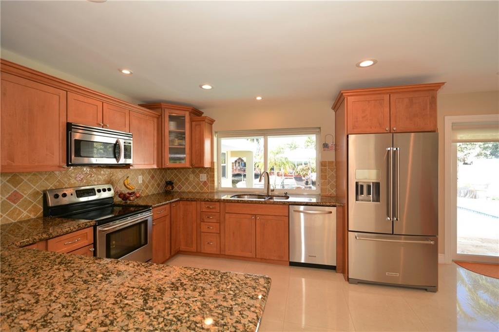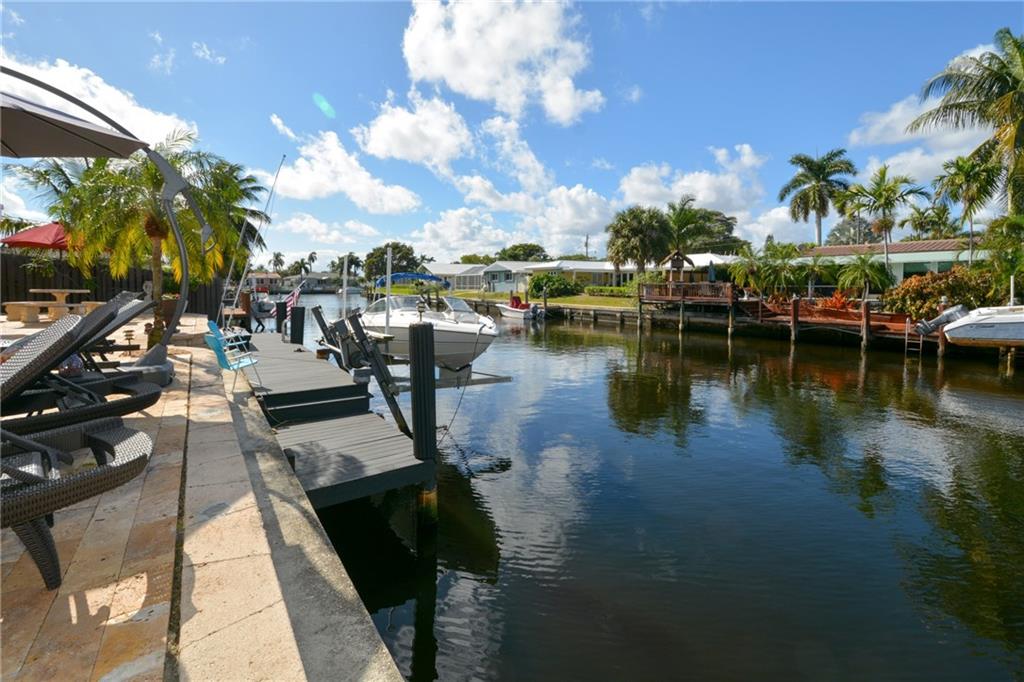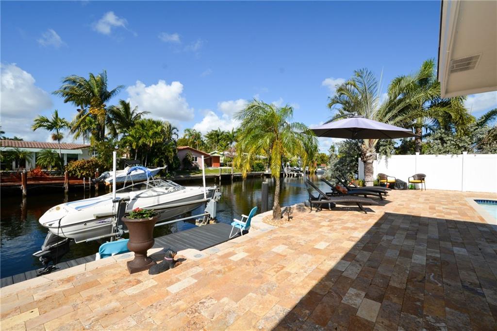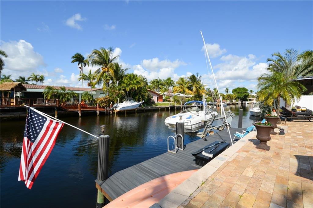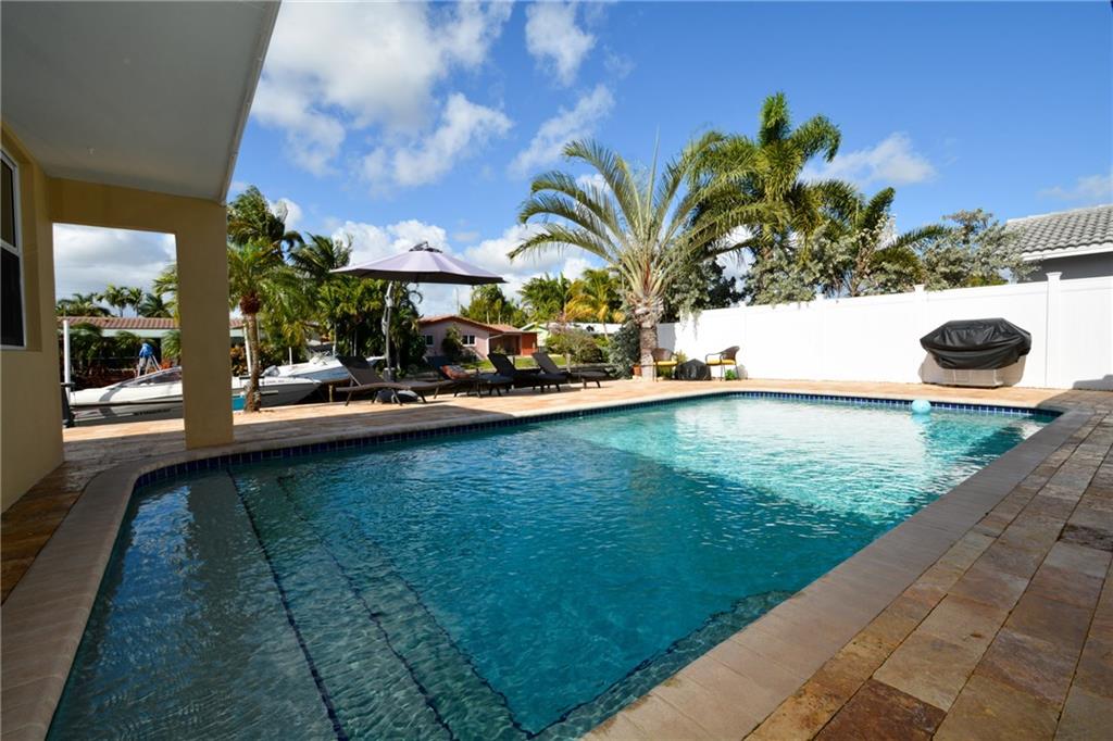 For the buyer that wants everything! Gorgeous house! Newer kitchen, SS appliances, interior laundry rm, wood floors & porcelain tile, new baths, family room, recessed lighting, security system & cameras, fenced, private gated patio area, landscaped, accordion shutters & some impact glass, salt water pool, dock & 75 ft ocean access waterfront, new waste lines under the house, stone pavers for ex large driveway & patios, tiled 2 car garage flr, new duct work, AC 2yrs, tree lined street, sidewalks & culdesac