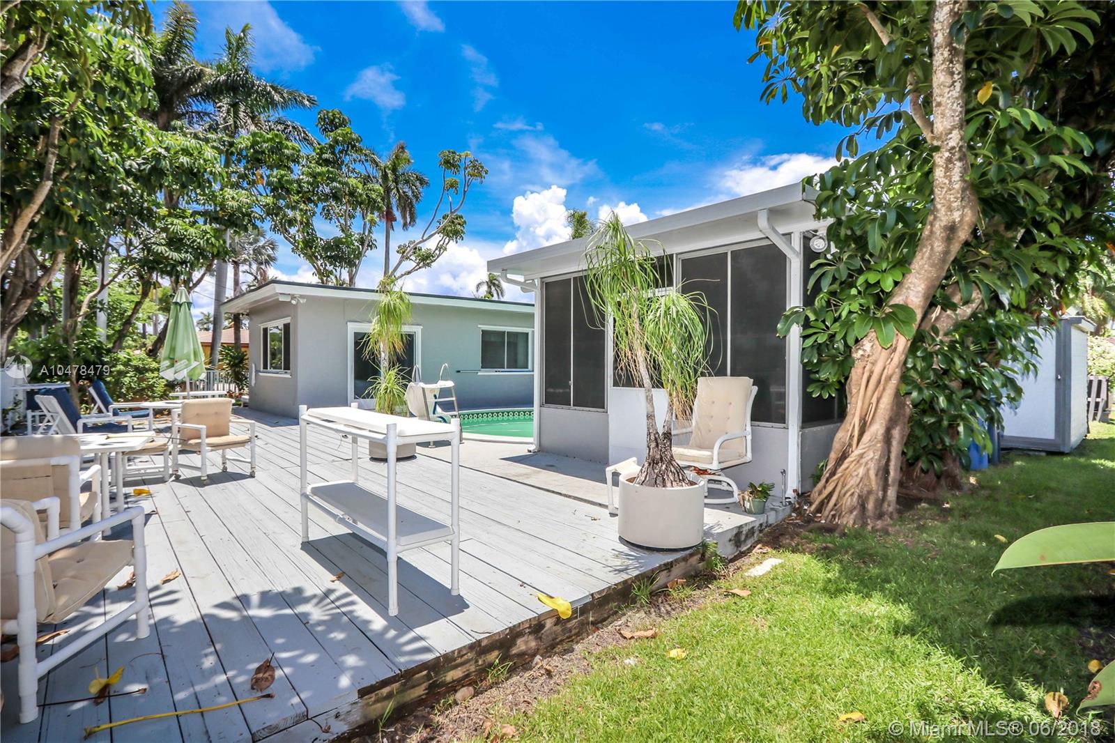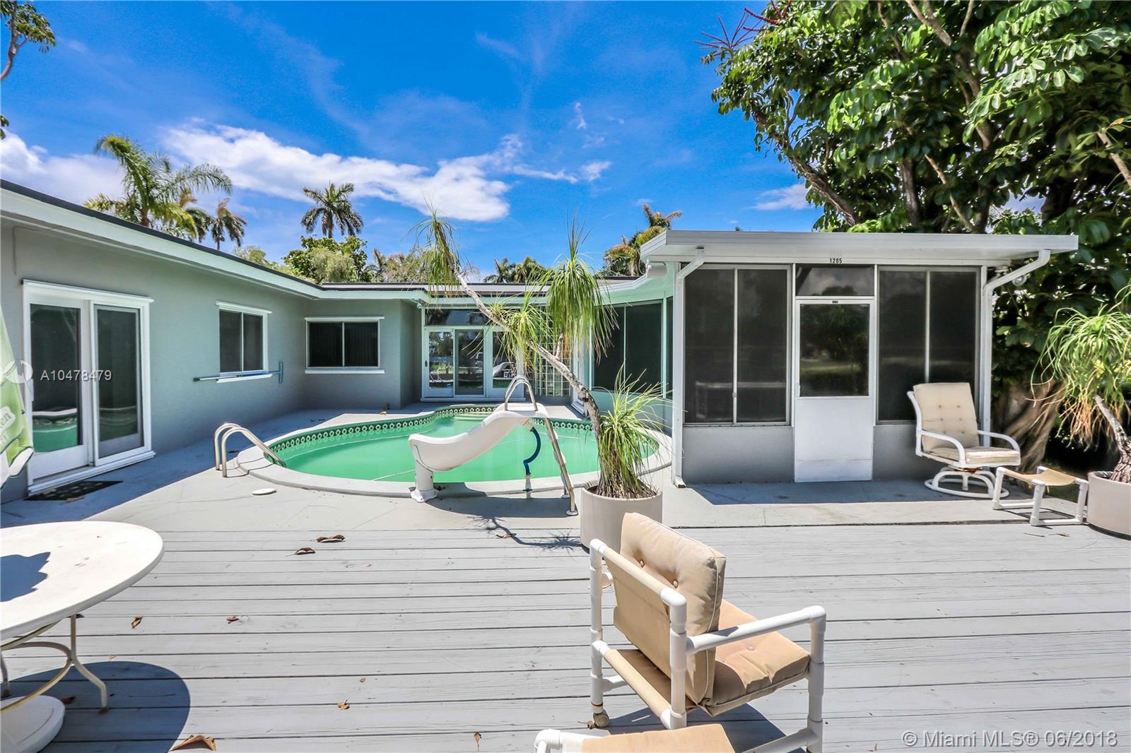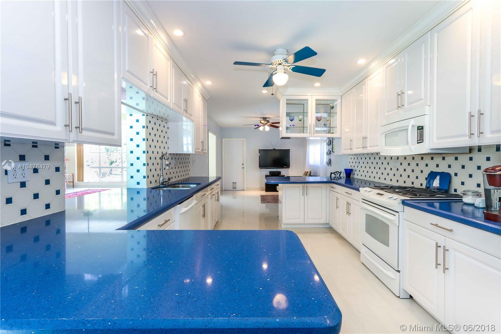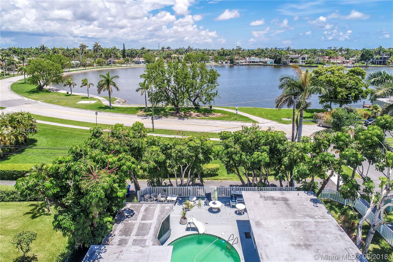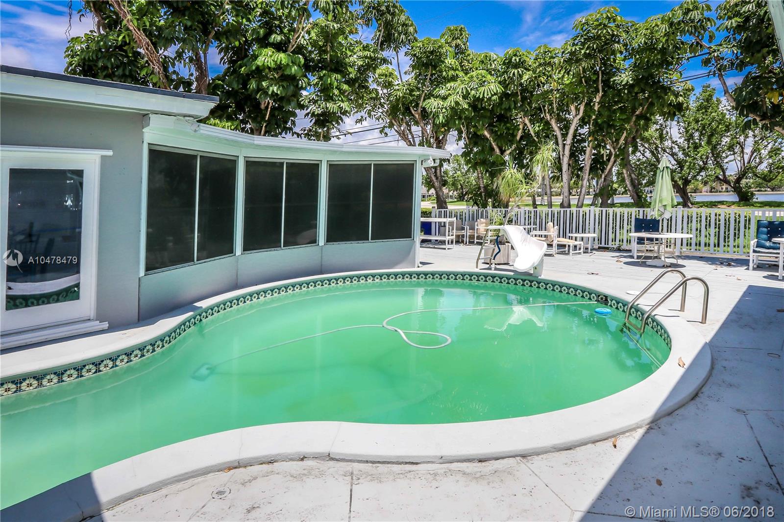 GREAT VIEWS OF NORTHLAKE FROM BACKYARD~Bright spacious 3BR, 2.5 Bath. All this and it's on a huge corner lot~Pool w/cabana bath & extra storage room. Property features beautiful lake view from the kitchen, formal dining, bedrooms and over-sized master bedroom. Great house for entertaining. Large living room with crown molding, high ceilings, bright white porcelain floors. Kitchen, quartz counter tops, durable thermofoil-cabinets~natural gas stove. Have breakfast in the eat-in breakfast nook which faces the lake. Built in kitchen desk. Screened outdoor patio. Outdoor utility shed. Natural gas hot-water heater and dryer and BBQ hookup~Garage converted to office can easily convert back Property is close to the beach & Downtown Hollywood.