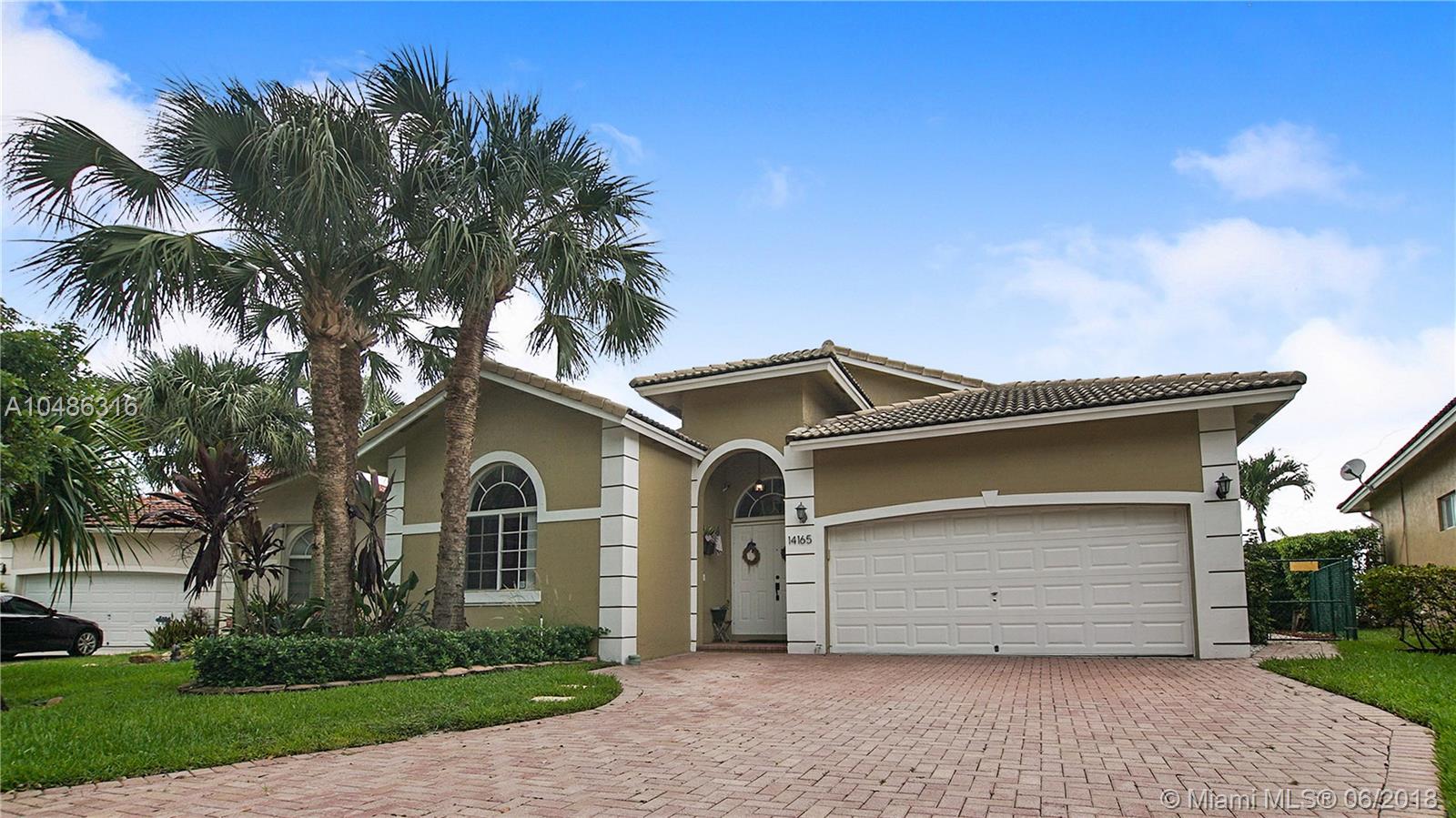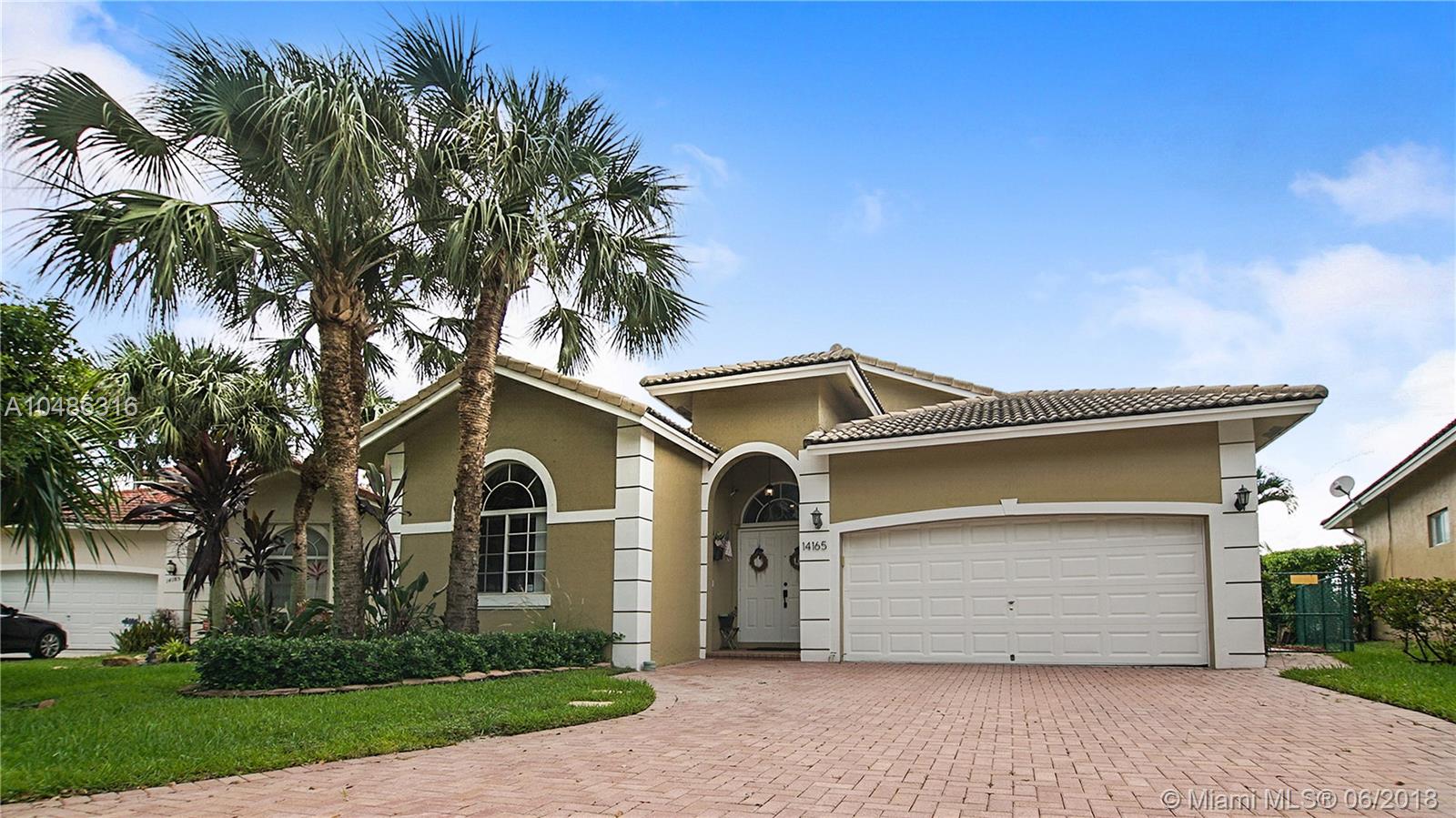 Beautiful one story home on one of the largest lots in Monarch Lakes, waterfront & no rear neighbor, mango tree out back! Salt water capable Pool; large paved patio with pavers extending out towards lake, pavers extend on the east side to the front of the home; solar water heater; A.C. 2 years new; 3 bedroom split floor plan. Master has bamboo floors, walk in closet with built ins, dual vanity, tub and separate shower. Guest rooms w/engineered wood; tile through out main areas. Master bedroom and kitchen area open up to the pool with French doors. High ceilings. Separate laundry room! Located in a cul-de-sac. Lots of light! Gated community. Walking distance to elementary school, shopping and restaurants, yet tucked away in a quiet gated subdivision! (water frontage unk)