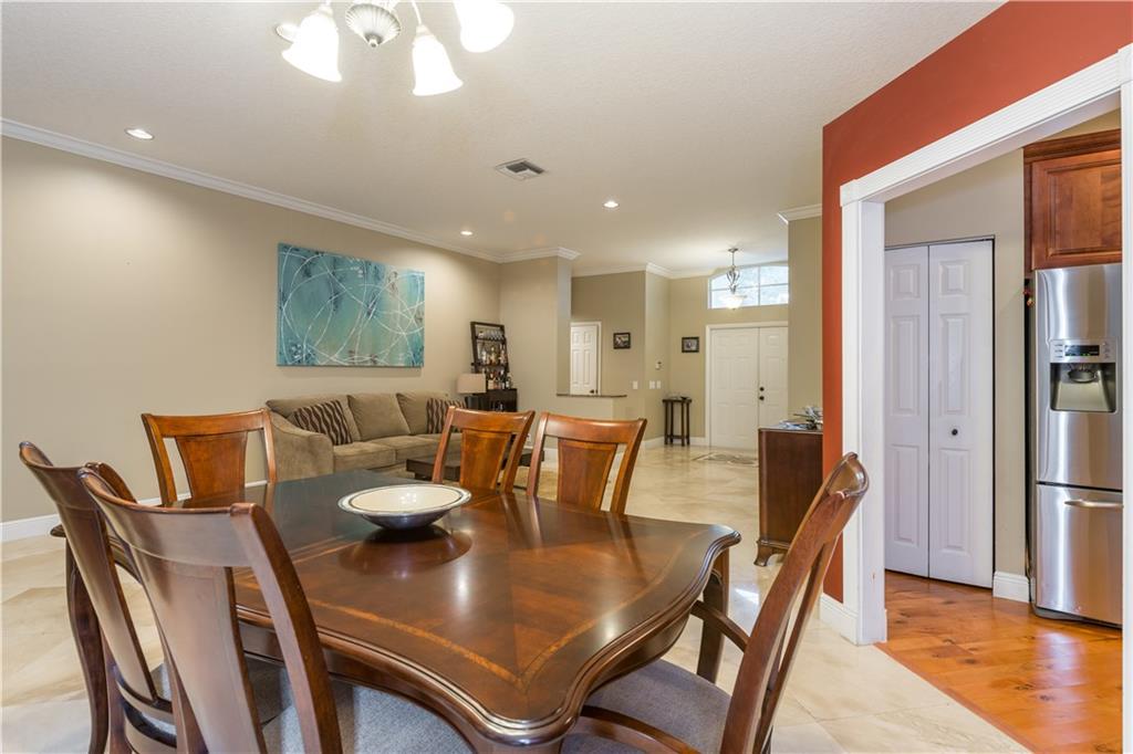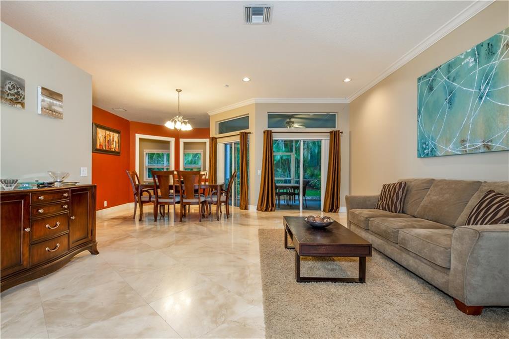 Former model of model row situated on huge double cul-de-sac to hang with family and friends. Private backyard - situated on heavily landscaped berm - no neighbors behind. Upgrades galore! Marble and hardwood thru-out living areas, laminate floors in bedrooms. Updated Kitchen with high end wood cabinets and soft close. Granite counter tops and stainless steel appliances with double oven. Hurricane shutters and more.