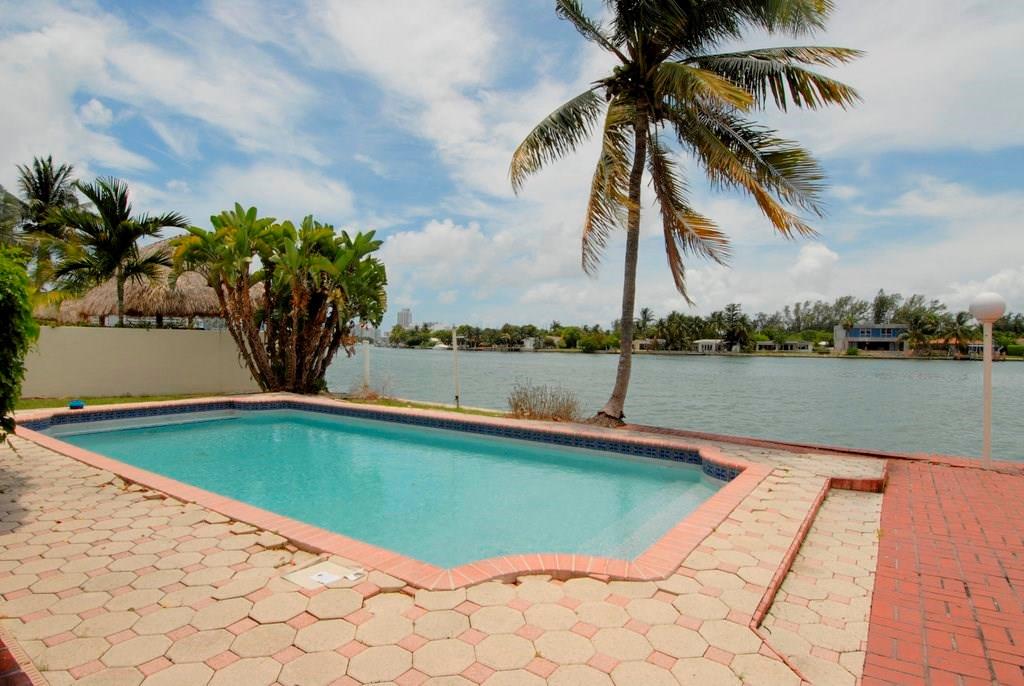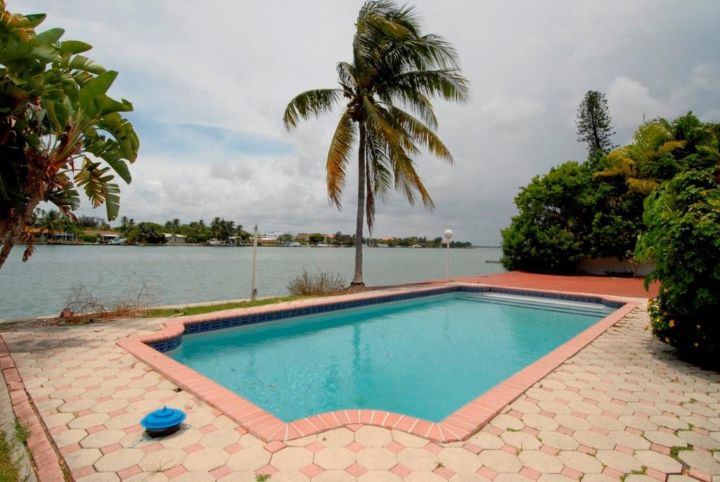 Panoramic wide waterfront view of the city and the bay! Beautiful sunsets!Spacious open, entertaining plan in this partially renovated home or build your own dream mansion on this 14,850SF lot in this prestigious, private gate Miami Beach community. 94' waterfront. Pool and decking are situated near the waterfront for maximum potential development. Some impact doors and windows. Sold "as is." Desirable south exposure. Walking distance to the beach. Easy to show.