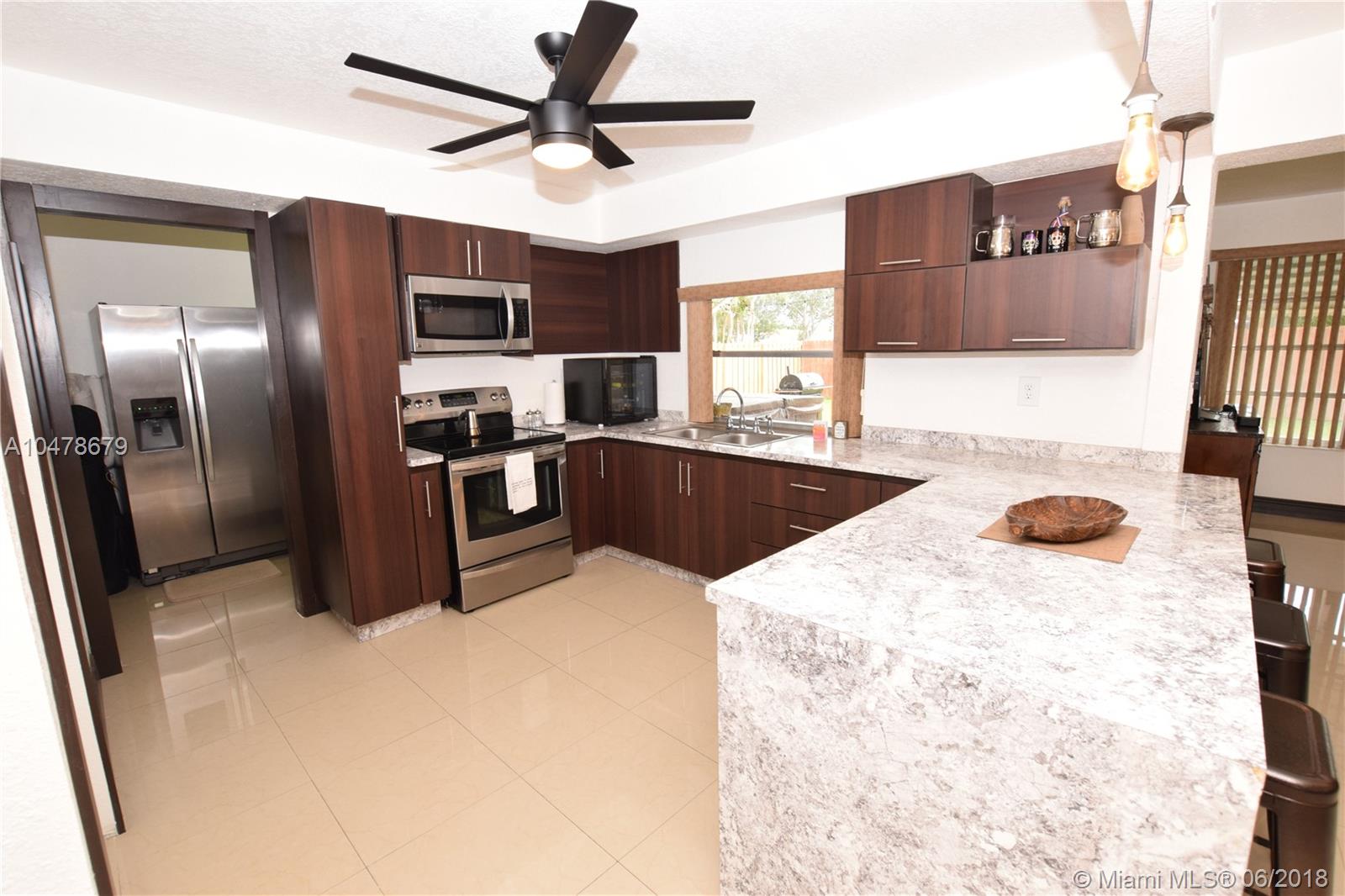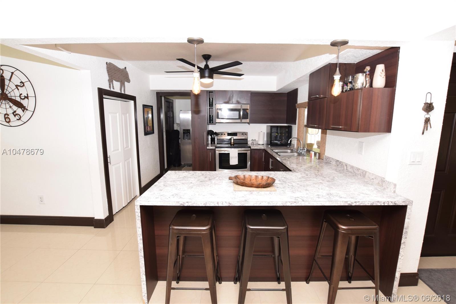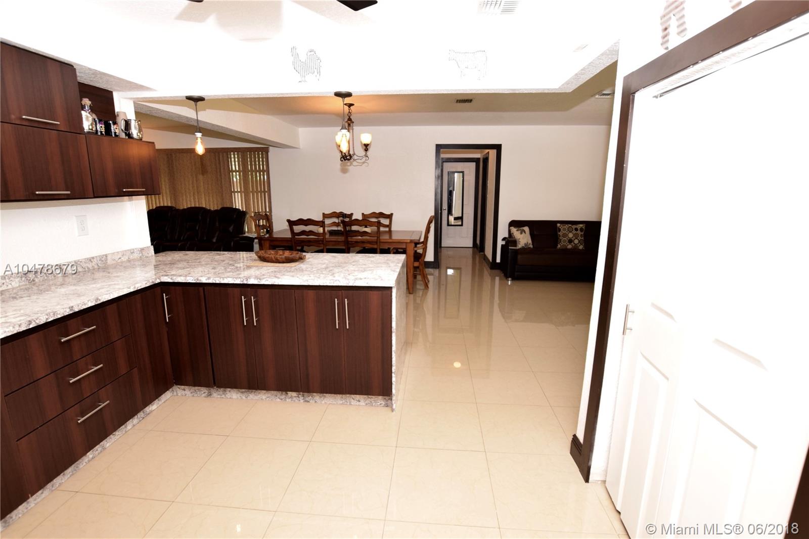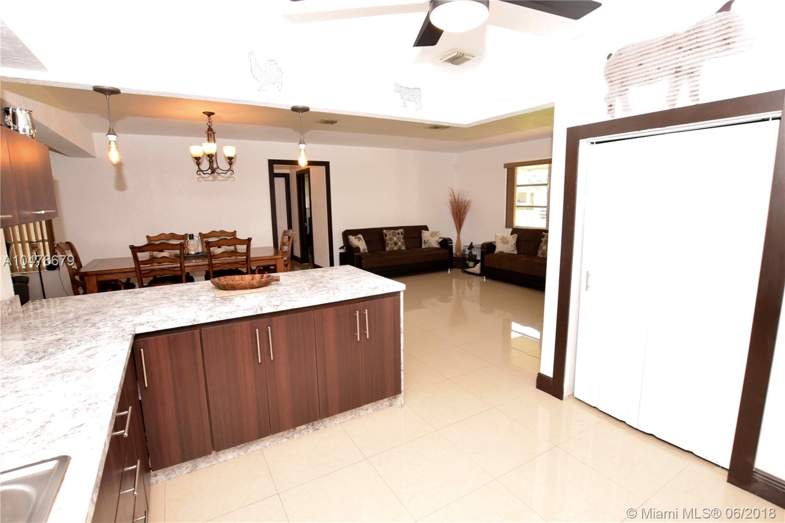 This beautifully remodeled home sits on a corner lot. Open and spacious floor plan features porcelain tiled flooring throughout. Gorgeous upgraded kitchen tastefully done with new stainless steel appliances. Remodeled bathroom is done in all neutral colors. AC airhandler was put in last year. Roof was re-certified last month and is about 9 years old. Newer water heater. The spacious backyard features a covered patio area with a new decking, great for BBQ and entertaining. Also plenty of room for a boat on the side of the house with a gate.