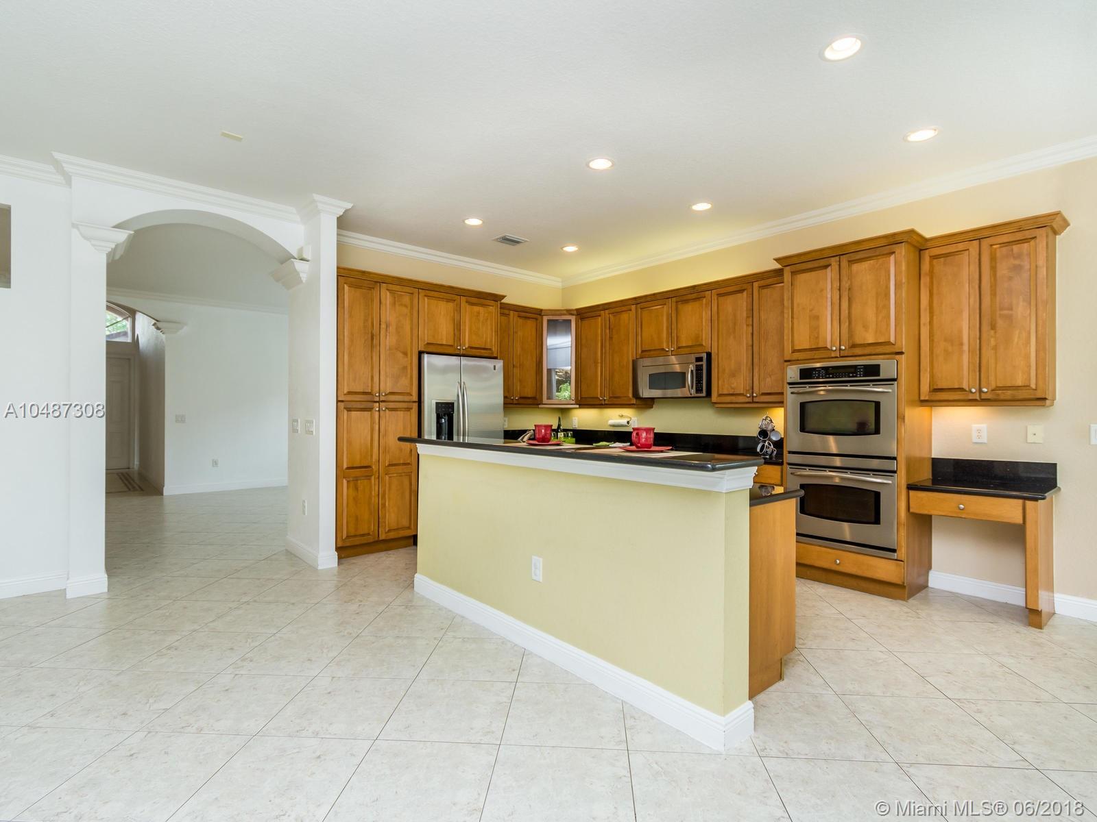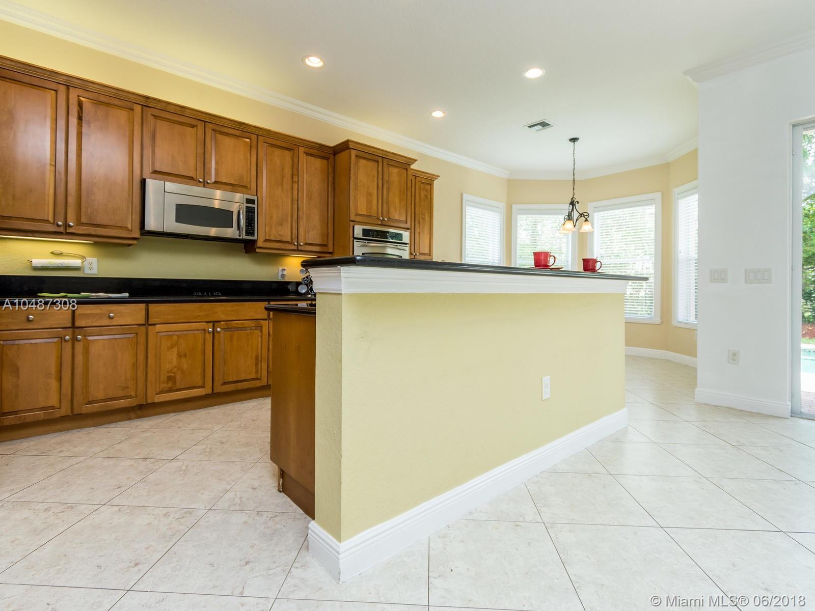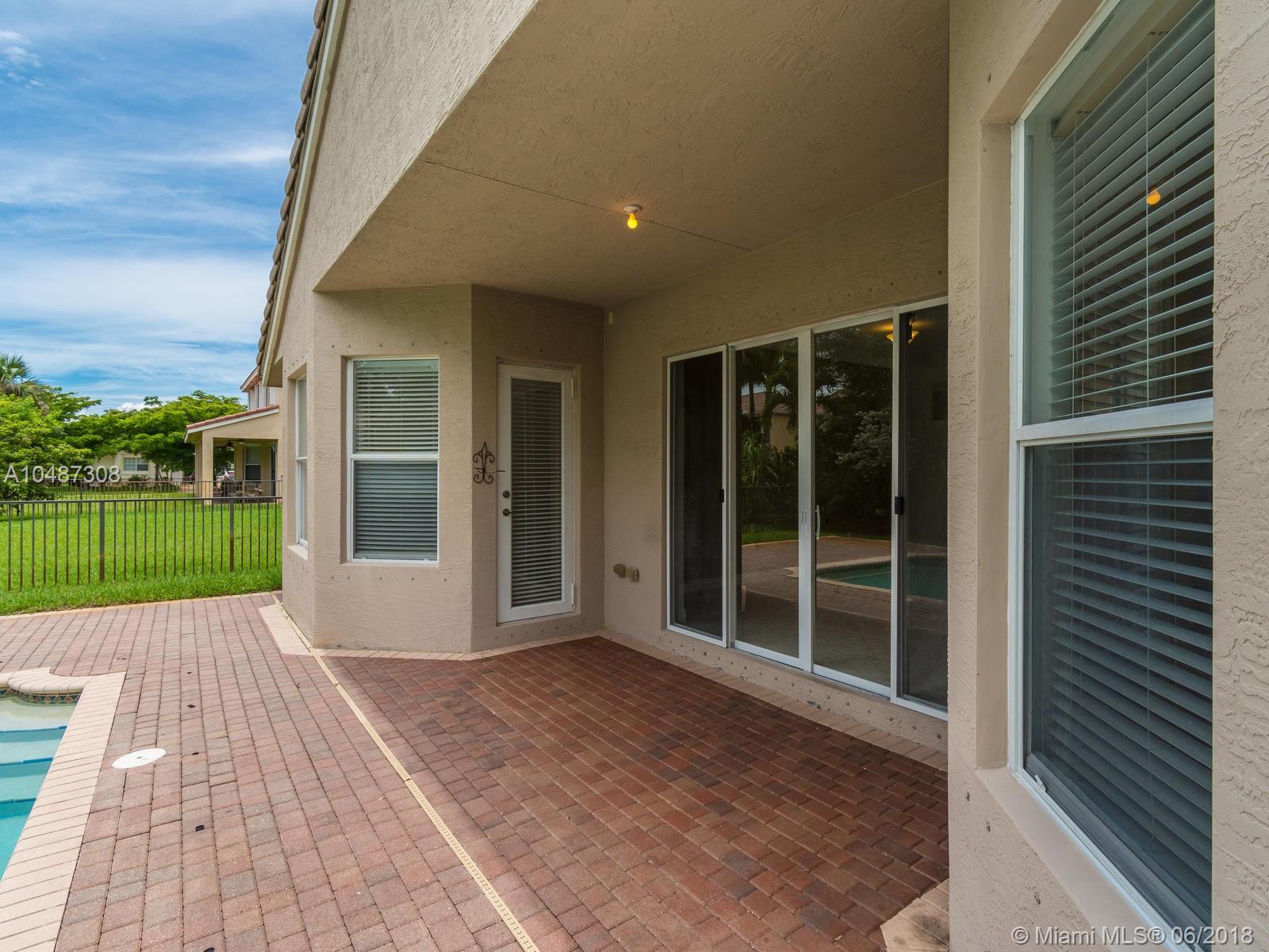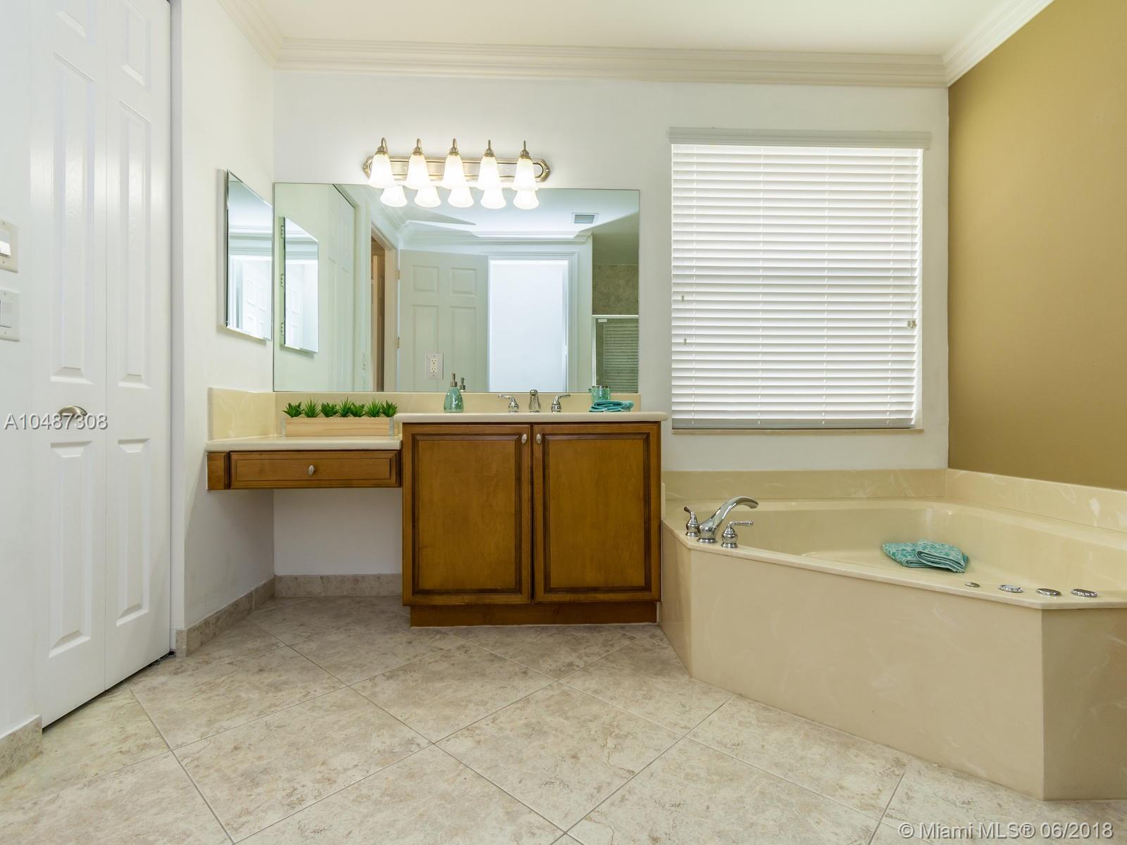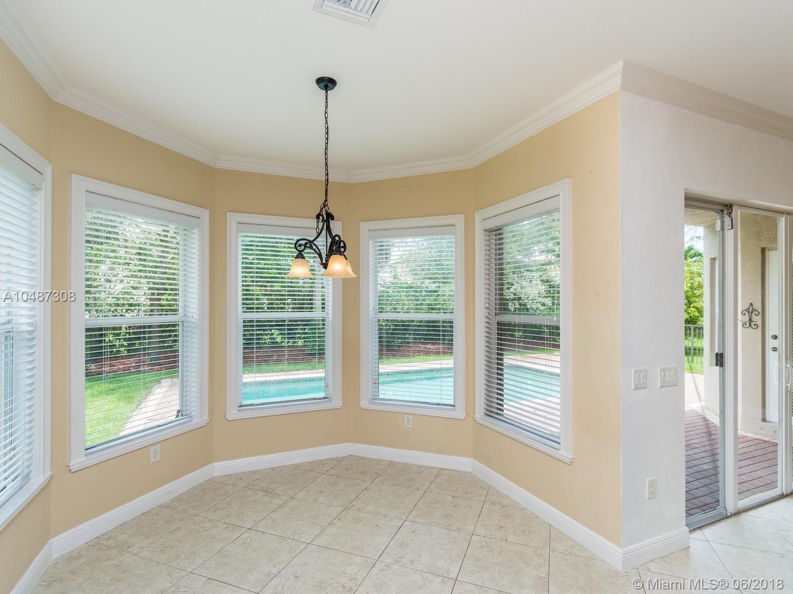 **DESIRED SUZANNA MODEL WITH POOL**4 BEDROOMS, 3 FULL BATHROOMS, 2 CAR GARAGE. PAVER DRIVEWAY HEAD TO DOUBLE DOOR MAIN ENTTRANCE. TRIPLE SPLIT FLOOR PLAN. 10' HIGH CELLINGS. ELEGANT CROWN MOLDING ALL AROUND. DIAGONAL TILE IN SOCIAL AREAS AND BATHROOMS;LAMINATED WOOD FLOORING IN BEDROOMS. UPGRADED WOOD CABINETS IN KITCHEN WITH BLACK GRANITE AND SS APPLIANCES. BREAKFAST NOOK WITH POOL VIEW. FORMAL LIVING AND DINING. OPEN FAMILY ROOM HEAD TO PAVERED POOL AREA. FENCED PATIO, PERFECT FOR FAMILY ENTERTAINTMENT.KIDS FENCE FOR POOL AT THE GARAGE. SPACIOUS MASTER ROOM WITH TWO WALKING CALIFORNIA CLOSETS.ROMAN TUB AT MASTER BATHROOM.SEPARATE SHOWER WITH TEMP GLASS DOOR.HER AND HIS SINK. AND MUCH MORE..CLUB HOUSE WITH TENNIS COURTS, GYM,PLAY GROUND, BASKETBALL.GUARD GATE 24/7.COME!, YOU WILL LOVE IT!