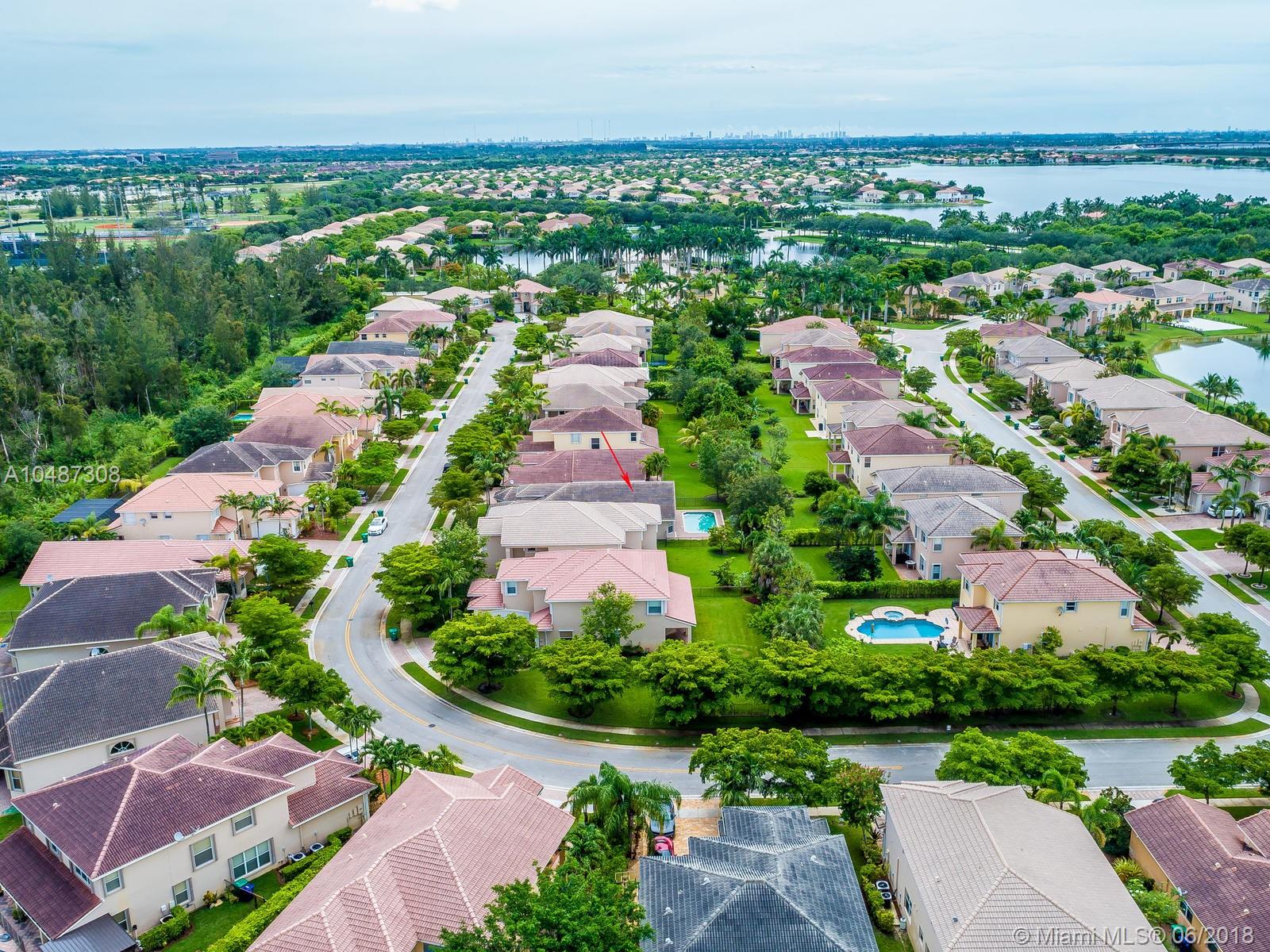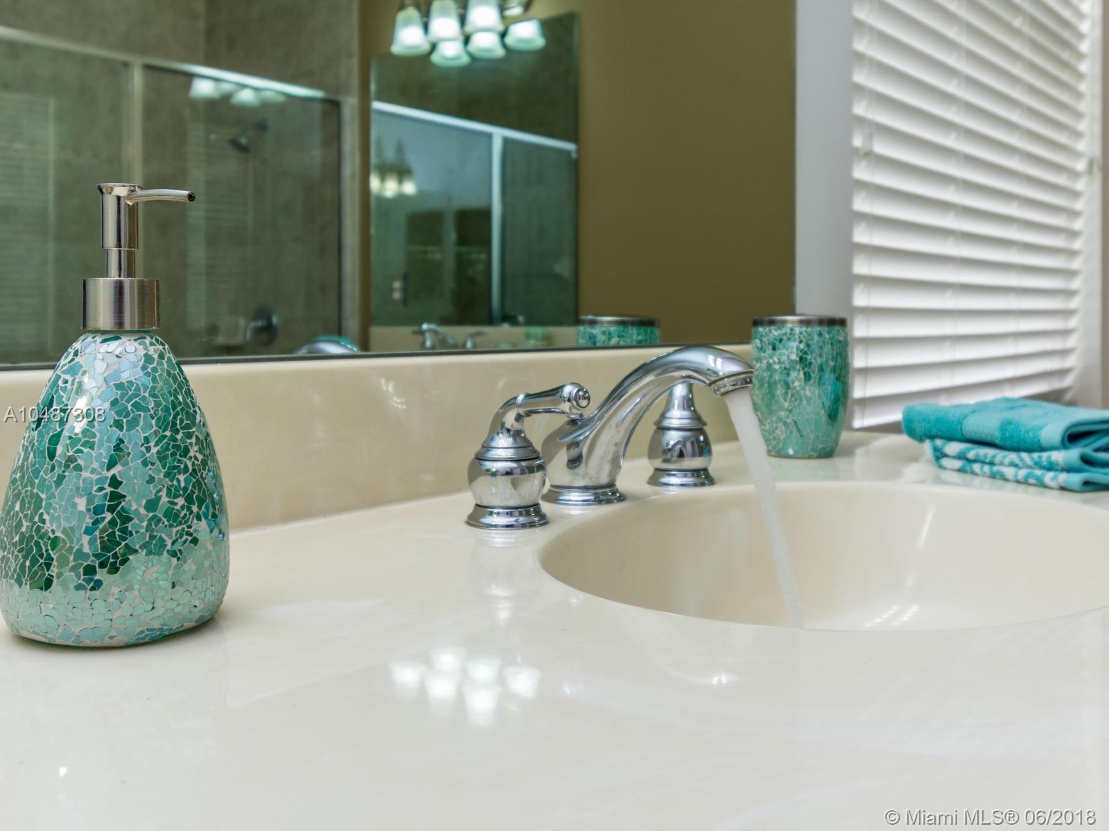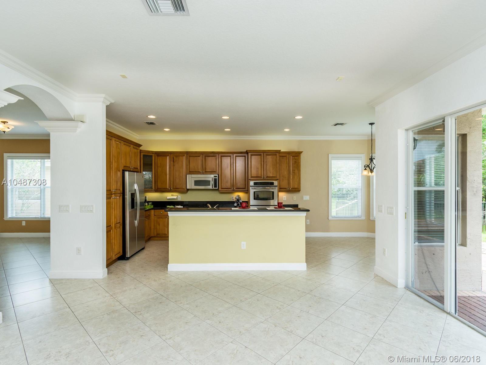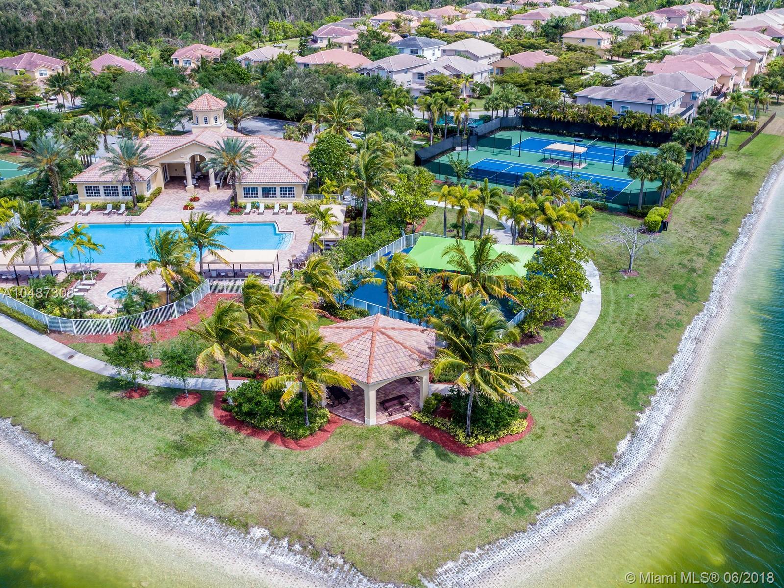 **DESIRED SUZANNA MODEL WITH POOL**4 BEDROOMS, 3 FULL BATHROOMS, 2 CAR GARAGE. PAVER DRIVEWAY HEAD TO DOUBLE DOOR MAIN ENTTRANCE. TRIPLE SPLIT FLOOR PLAN. 10' HIGH CELLINGS. ELEGANT CROWN MOLDING ALL AROUND. DIAGONAL TILE IN SOCIAL AREAS AND BATHROOMS;LAMINATED WOOD FLOORING IN BEDROOMS. UPGRADED WOOD CABINETS IN KITCHEN WITH BLACK GRANITE AND SS APPLIANCES. BREAKFAST NOOK WITH POOL VIEW. FORMAL LIVING AND DINING. OPEN FAMILY ROOM HEAD TO PAVERED POOL AREA. FENCED PATIO, PERFECT FOR FAMILY ENTERTAINTMENT.KIDS FENCE FOR POOL AT THE GARAGE. SPACIOUS MASTER ROOM WITH TWO WALKING CALIFORNIA CLOSETS.ROMAN TUB AT MASTER BATHROOM.SEPARATE SHOWER WITH TEMP GLASS DOOR.HER AND HIS SINK. AND MUCH MORE..CLUB HOUSE WITH TENNIS COURTS, GYM,PLAY GROUND, BASKETBALL.GUARD GATE 24/7.COME!, YOU WILL LOVE IT!