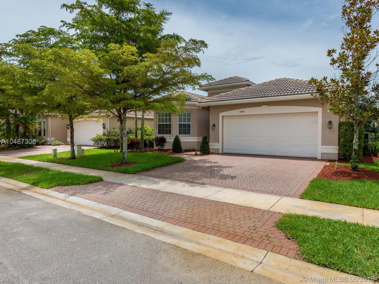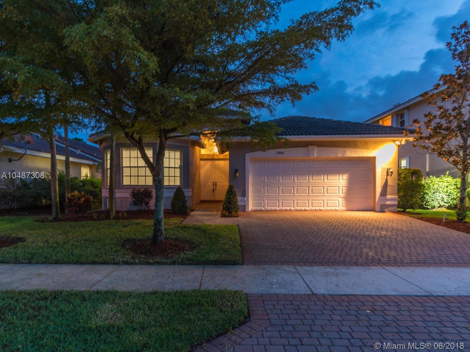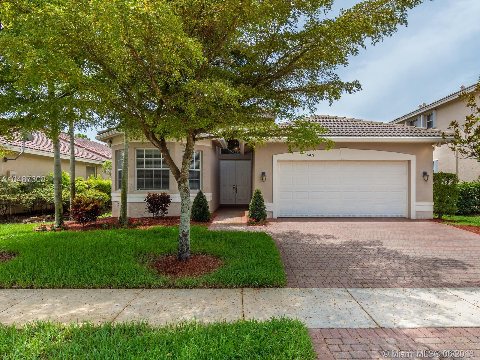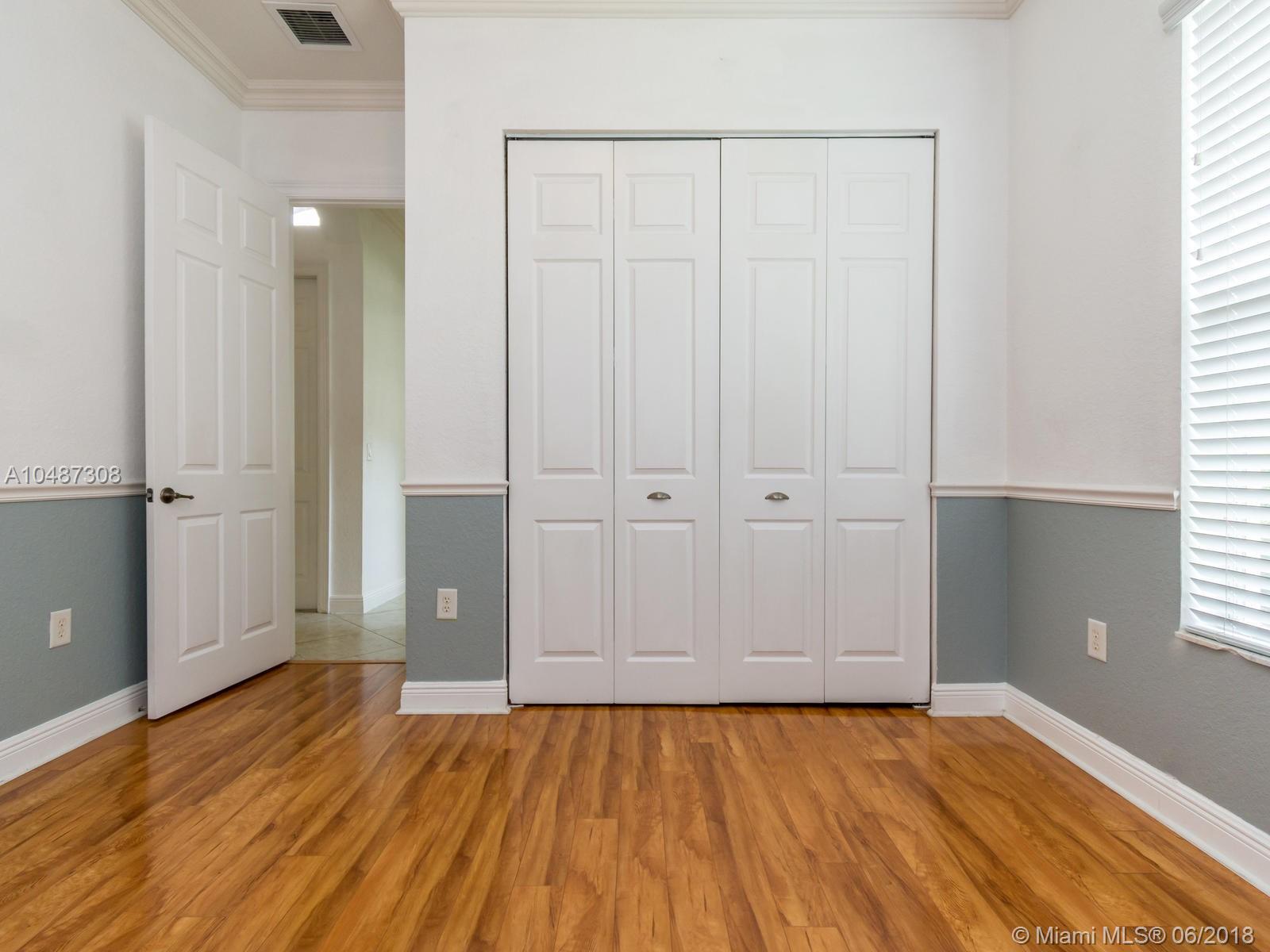 **DESIRED SUZANNA MODEL WITH POOL**4 BEDROOMS, 3 FULL BATHROOMS, 2 CAR GARAGE. PAVER DRIVEWAY HEAD TO DOUBLE DOOR MAIN ENTTRANCE. TRIPLE SPLIT FLOOR PLAN. 10' HIGH CELLINGS. ELEGANT CROWN MOLDING ALL AROUND. DIAGONAL TILE IN SOCIAL AREAS AND BATHROOMS;LAMINATED WOOD FLOORING IN BEDROOMS. UPGRADED WOOD CABINETS IN KITCHEN WITH BLACK GRANITE AND SS APPLIANCES. BREAKFAST NOOK WITH POOL VIEW. FORMAL LIVING AND DINING. OPEN FAMILY ROOM HEAD TO PAVERED POOL AREA. FENCED PATIO, PERFECT FOR FAMILY ENTERTAINTMENT.KIDS FENCE FOR POOL AT THE GARAGE. SPACIOUS MASTER ROOM WITH TWO WALKING CALIFORNIA CLOSETS.ROMAN TUB AT MASTER BATHROOM.SEPARATE SHOWER WITH TEMP GLASS DOOR.HER AND HIS SINK. AND MUCH MORE..CLUB HOUSE WITH TENNIS COURTS, GYM,PLAY GROUND, BASKETBALL.GUARD GATE 24/7.COME!, YOU WILL LOVE IT!